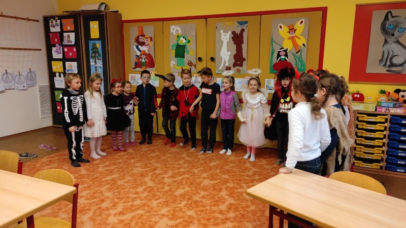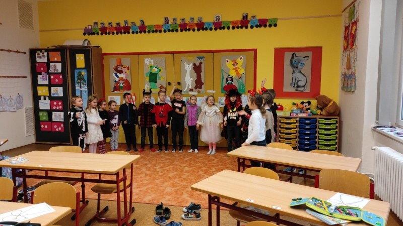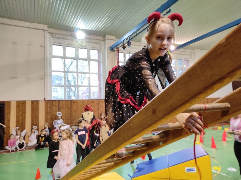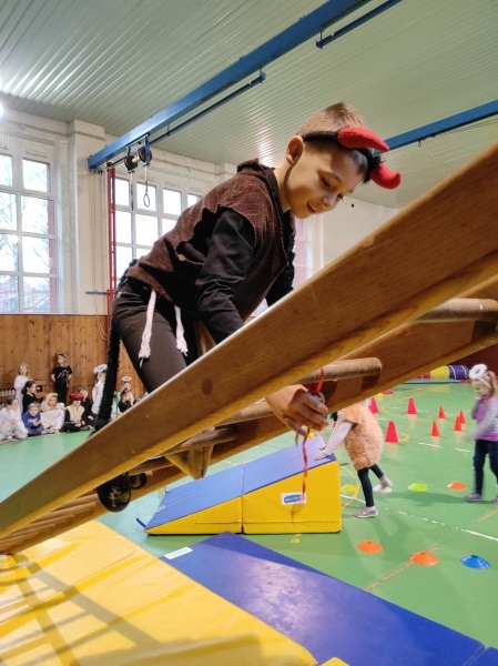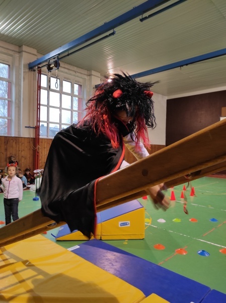 Další program tohoto dne se odehrával ve školní tělocvičně. Čertovská dráha se skládala z různých překážek, kterou musel zdolat každý prvňáček a na závěr dostal na památku papírovou medaili.