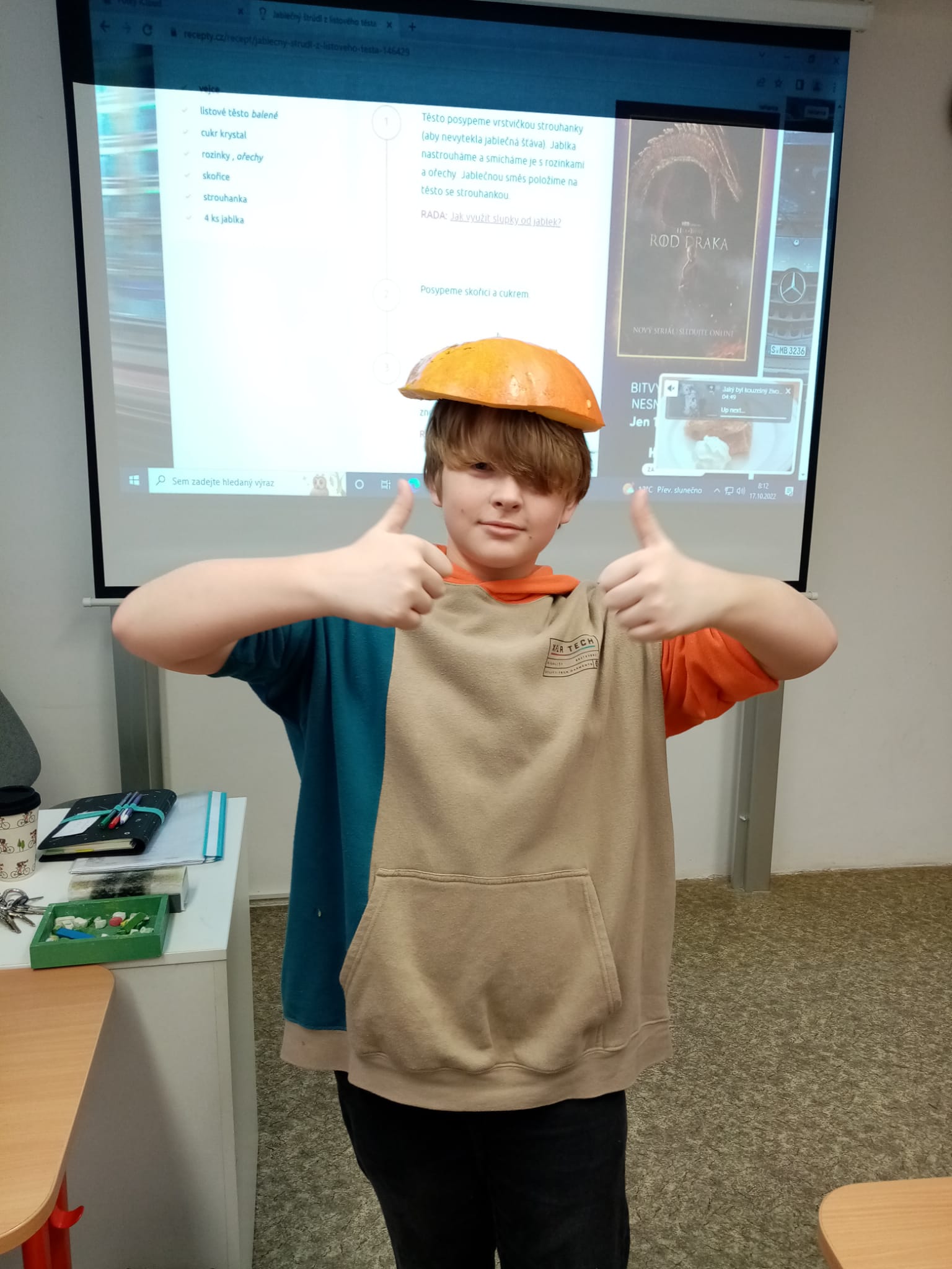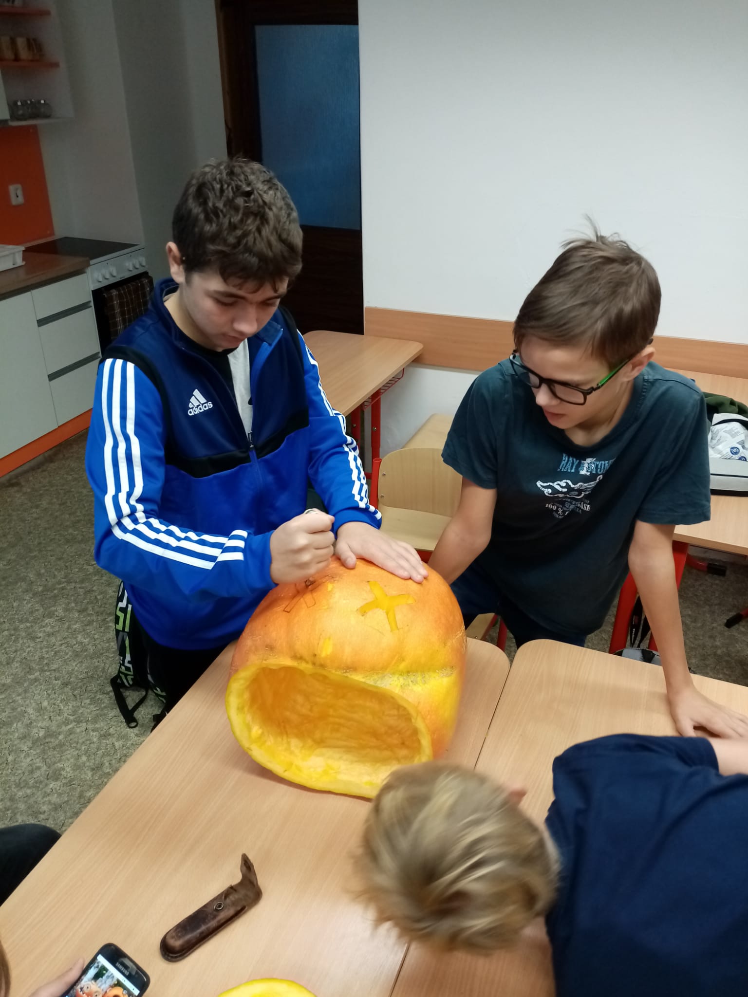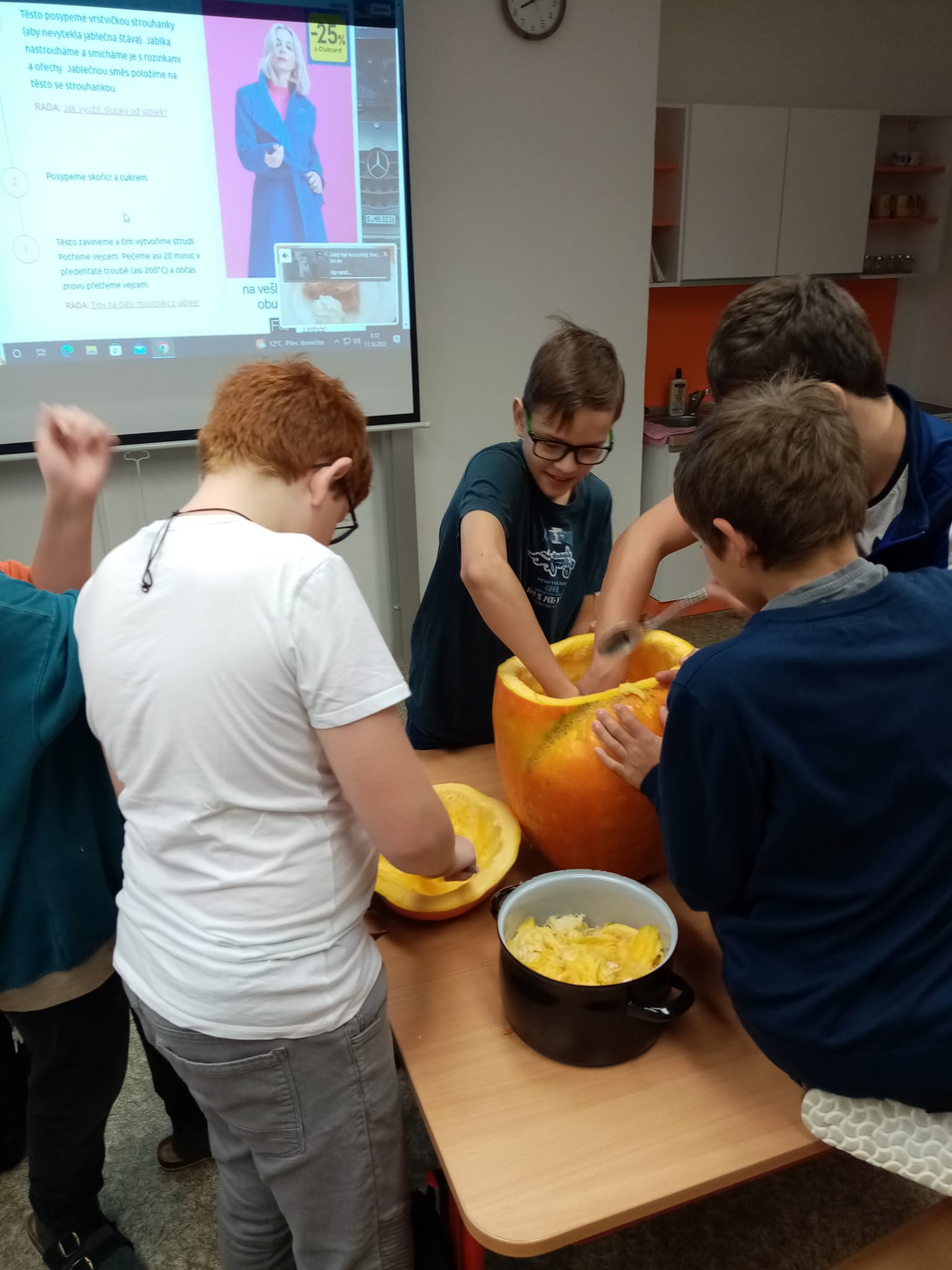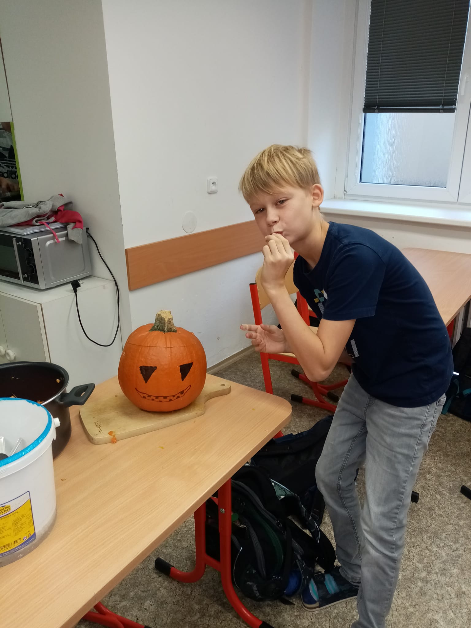 V rámci hodin pracovních činností jsme si mohli vyzkoušet výrobu „halloweenské“ dýně, navíc jsme si stihli upéct sladkou svačinu:)