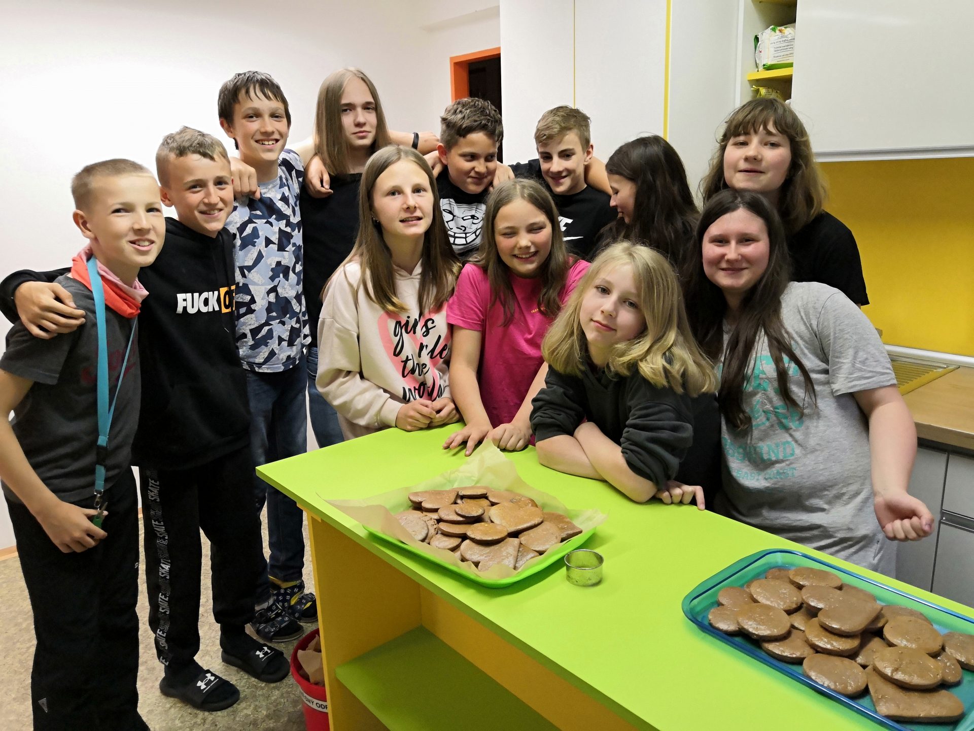 Hlavním odpoledním programem bylo tvoření výrobků na Den dětí. Nejprve jsme se všichni rozdělili do 2 skupin – jedna se přemístila do kuchyňky péct perníčky a druhá přesazovala květiny do vyrobených květináčů. Později se obě skupiny vystřídaly.