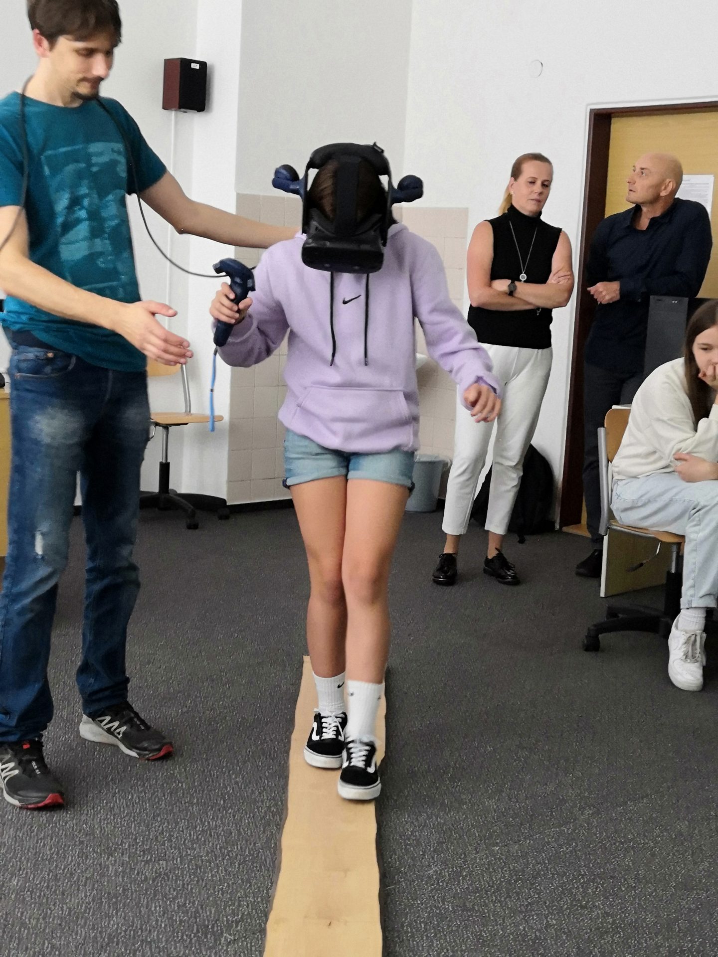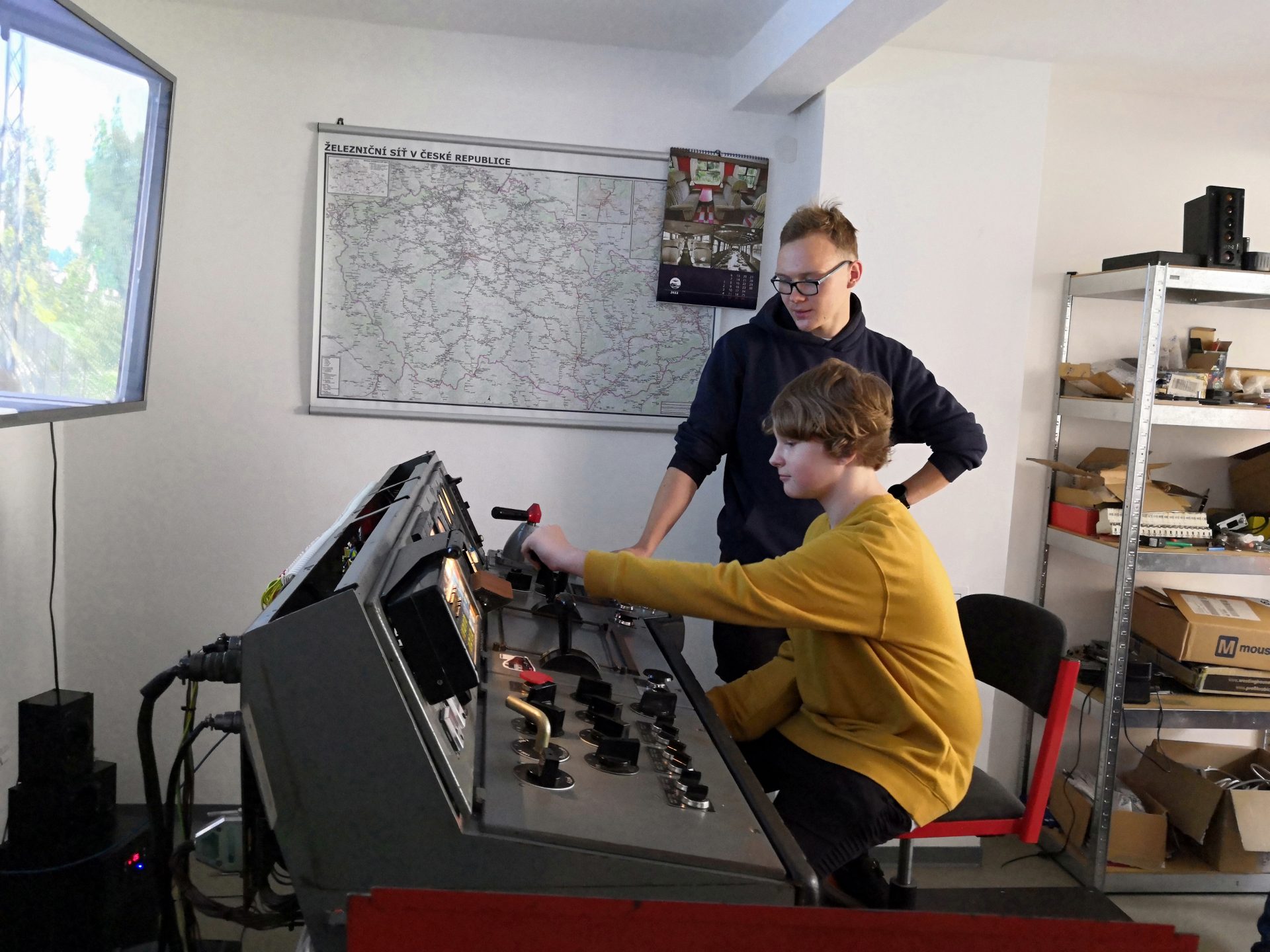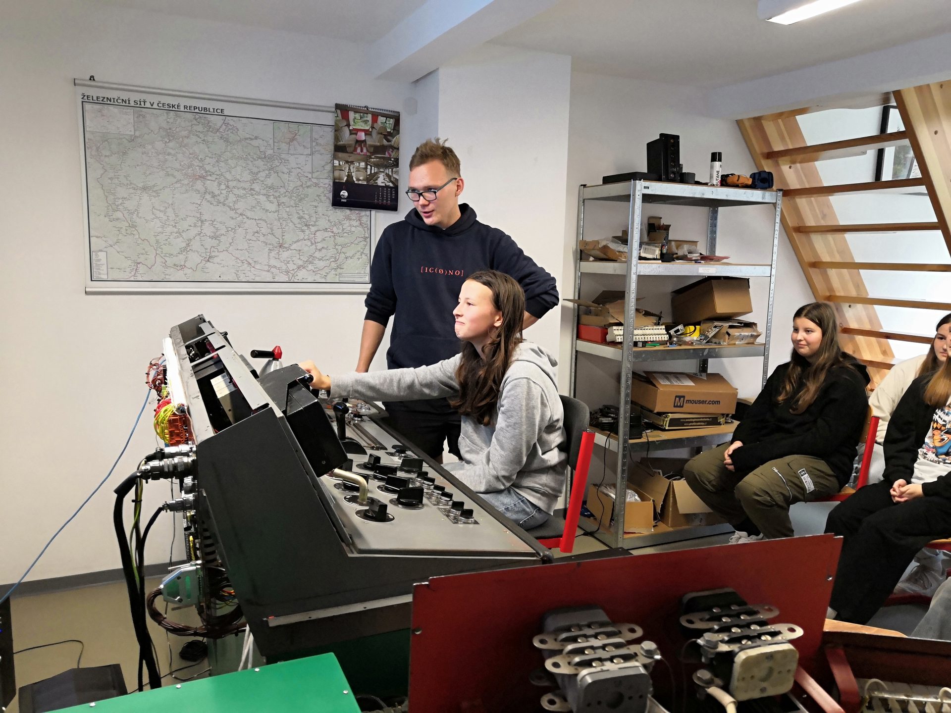 Ve 3 skupinách jsme si postupně vyzkoušeli virtuální realitu, trenažér řízení lokomotivy a programování vlastního robota.
