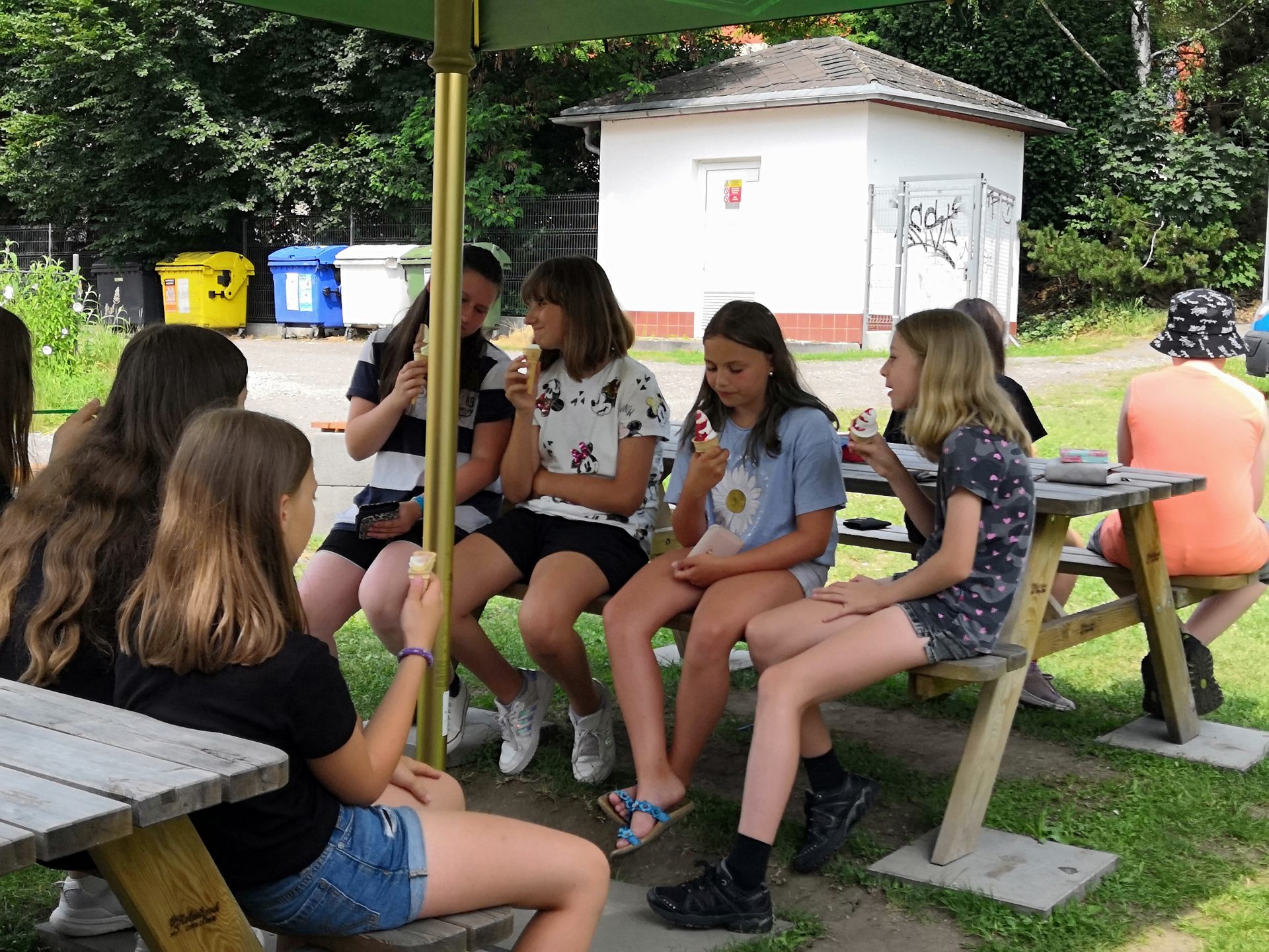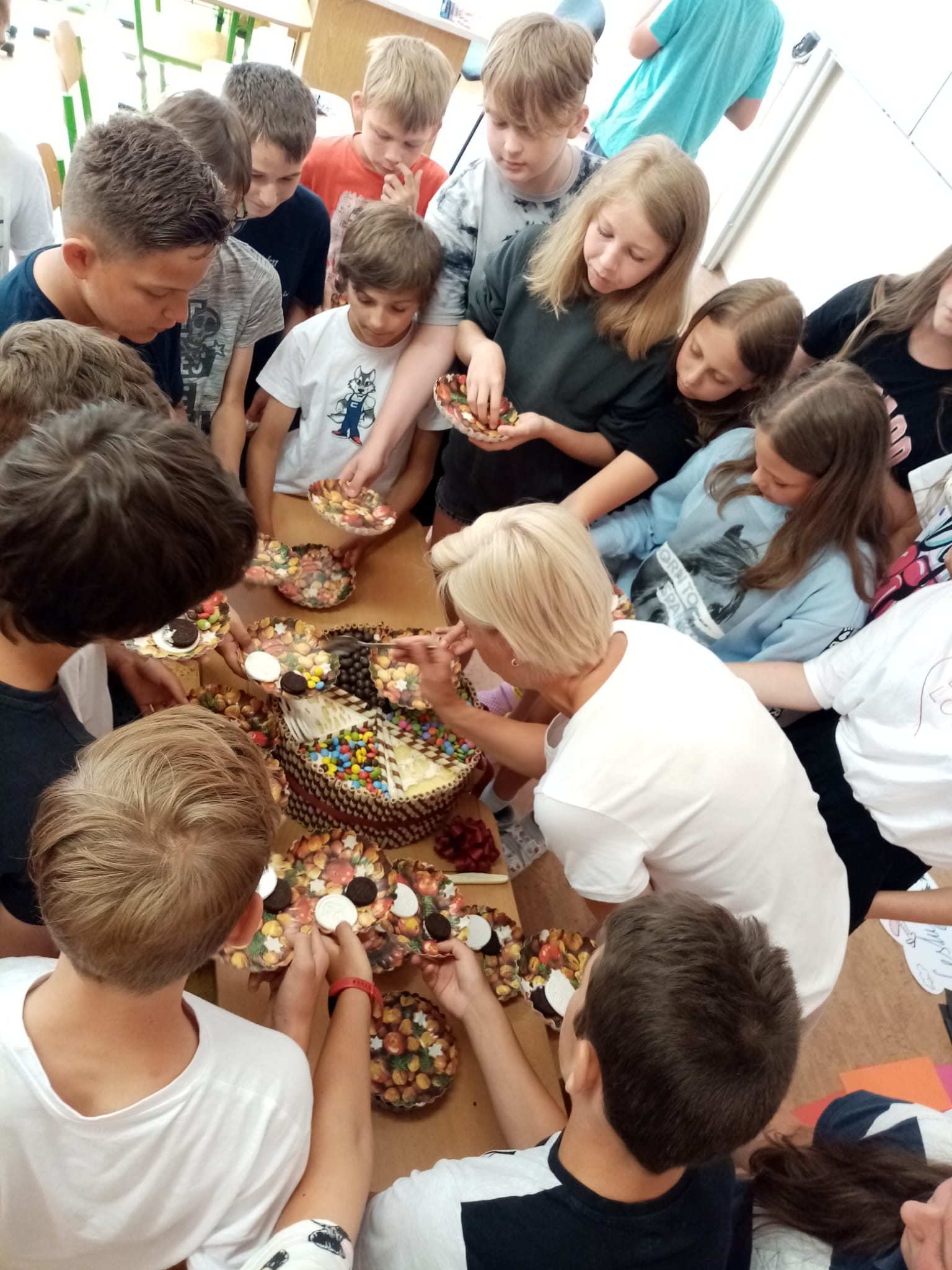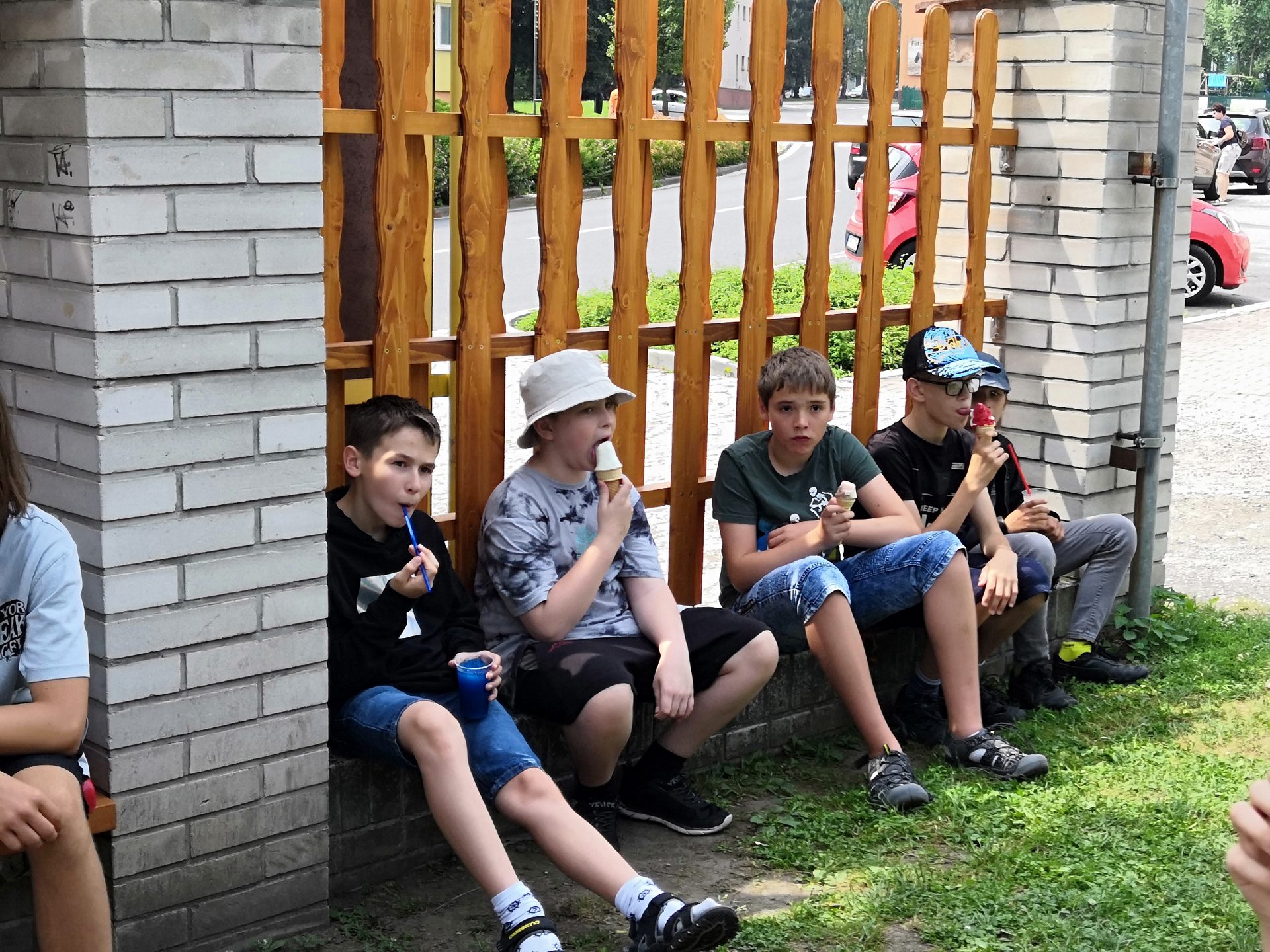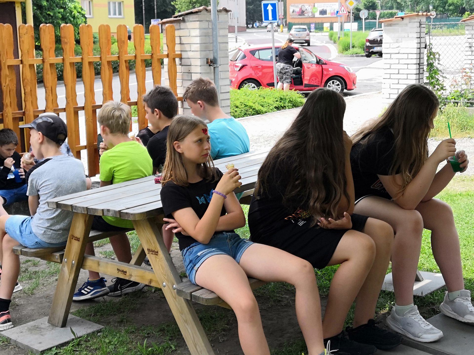 Konec školního roku jsme si zpříjemnili nejdříve zmrzlinou a nakonec krásným dortem od paní Kodytkové.