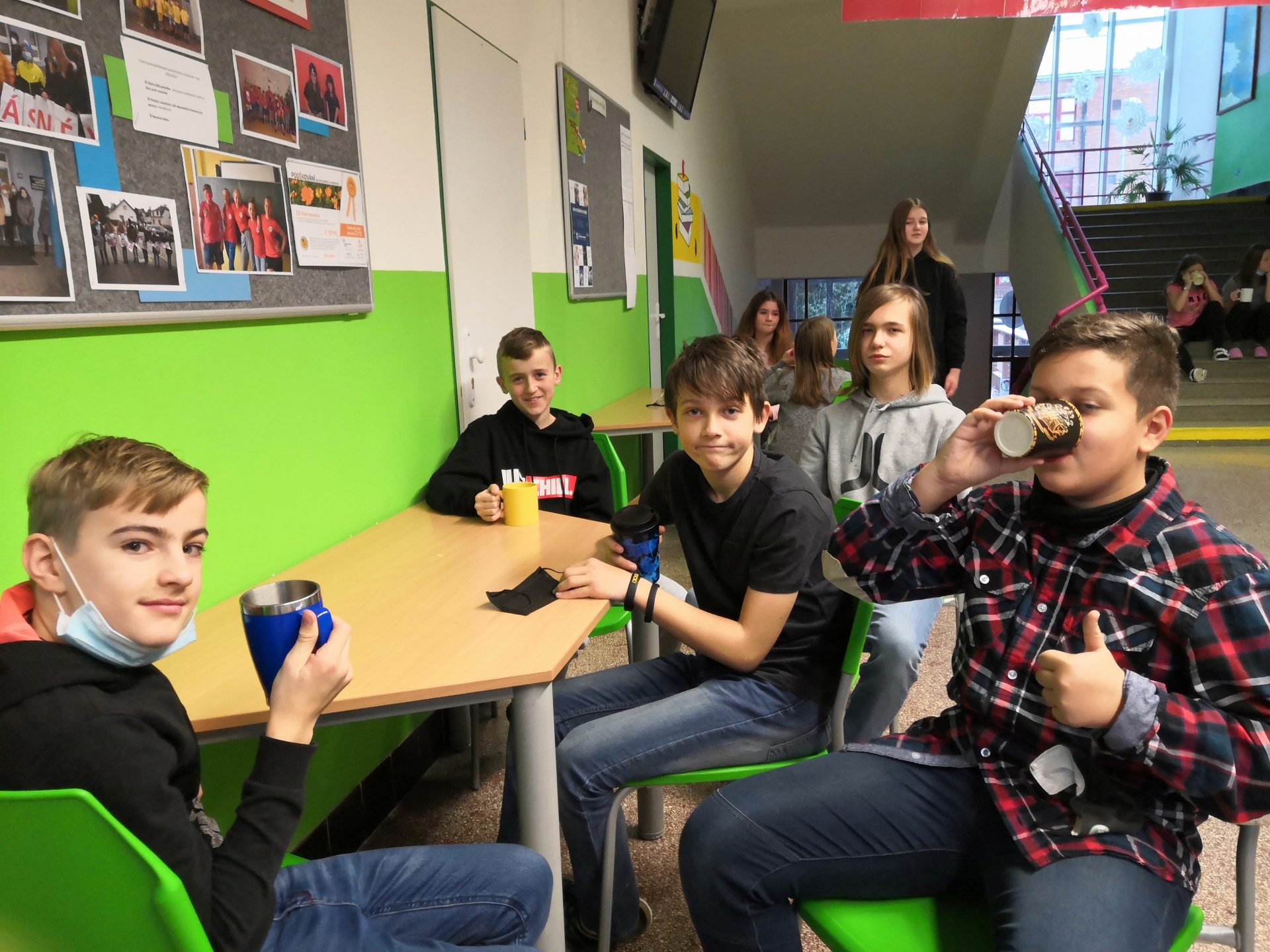 Naši první vánoční besídku na 2. stupni jsme zahájili ochutnávkou punče v hale u třídy. Jak moc jsme si „pošmákli“, poznáte z výrazů našich tváří:)