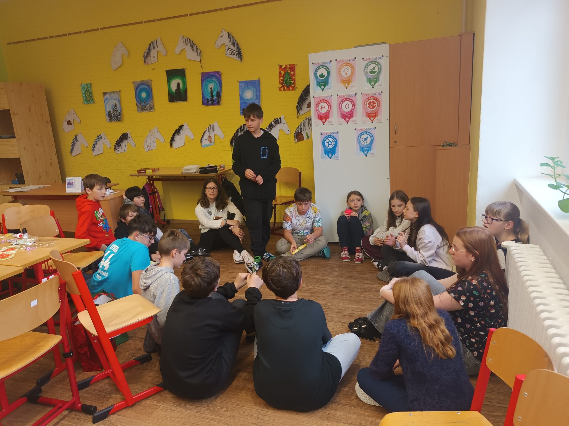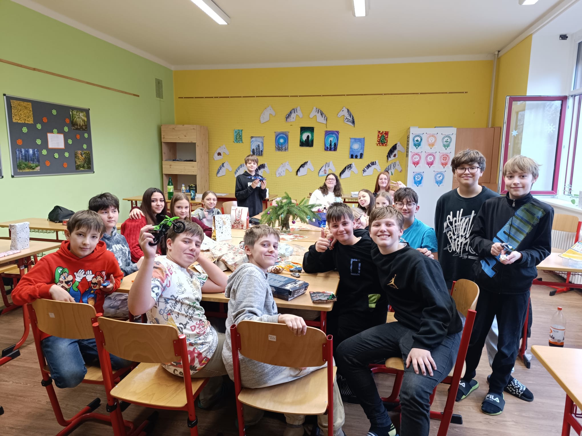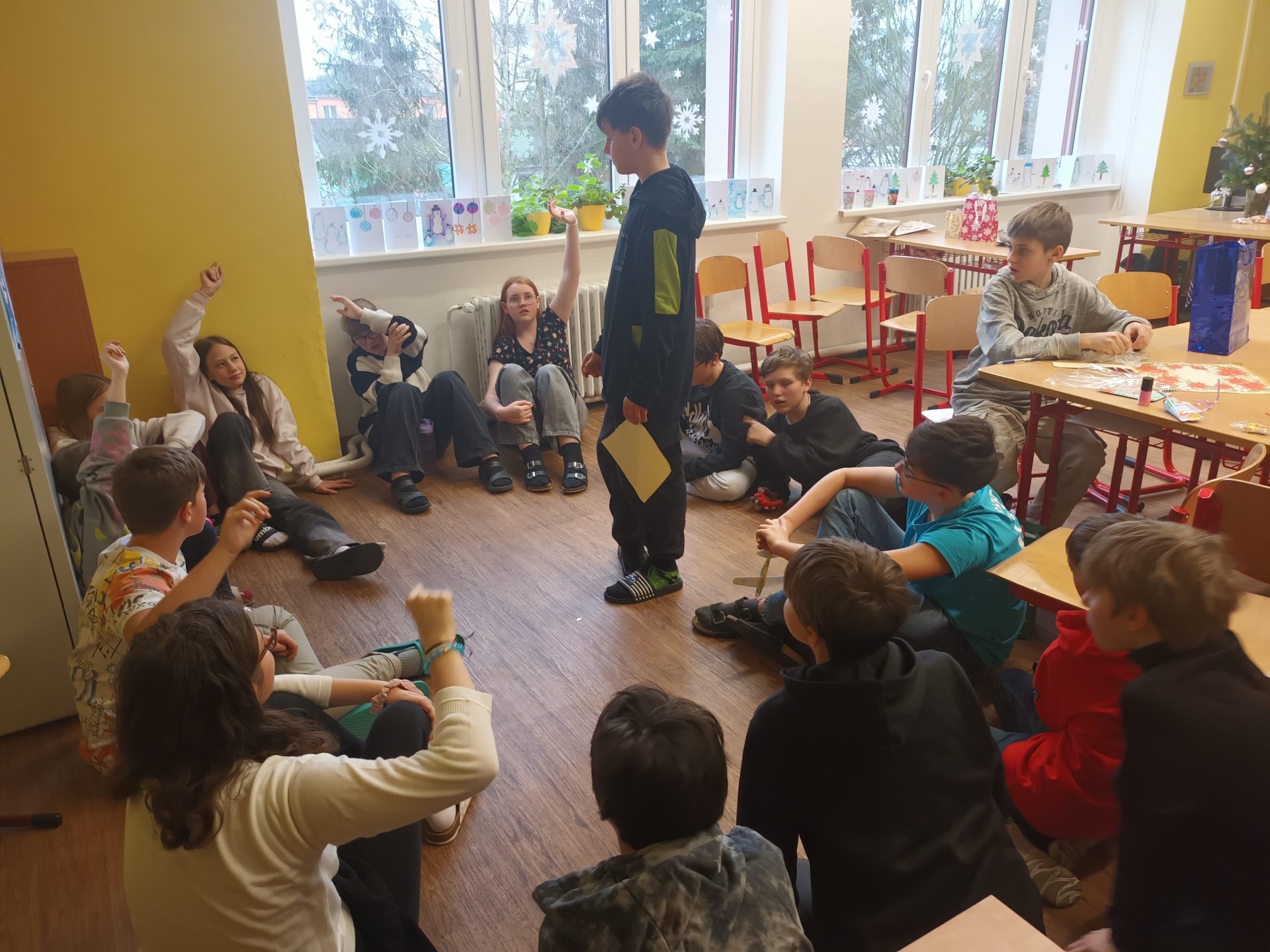 Na poslední den před vánočními prázdninami si 6.B domluvila následující program: deskové hry, předání dárků, procházku a sledování filmu. Vzhledem k hravé atmosféře jsme procházku nakonec vypustili, ale jinak jsme všechny aktivity zvládli a svou vánoční besídku jsme si v pohodové atmosféře užili 🌲🌟😊.
