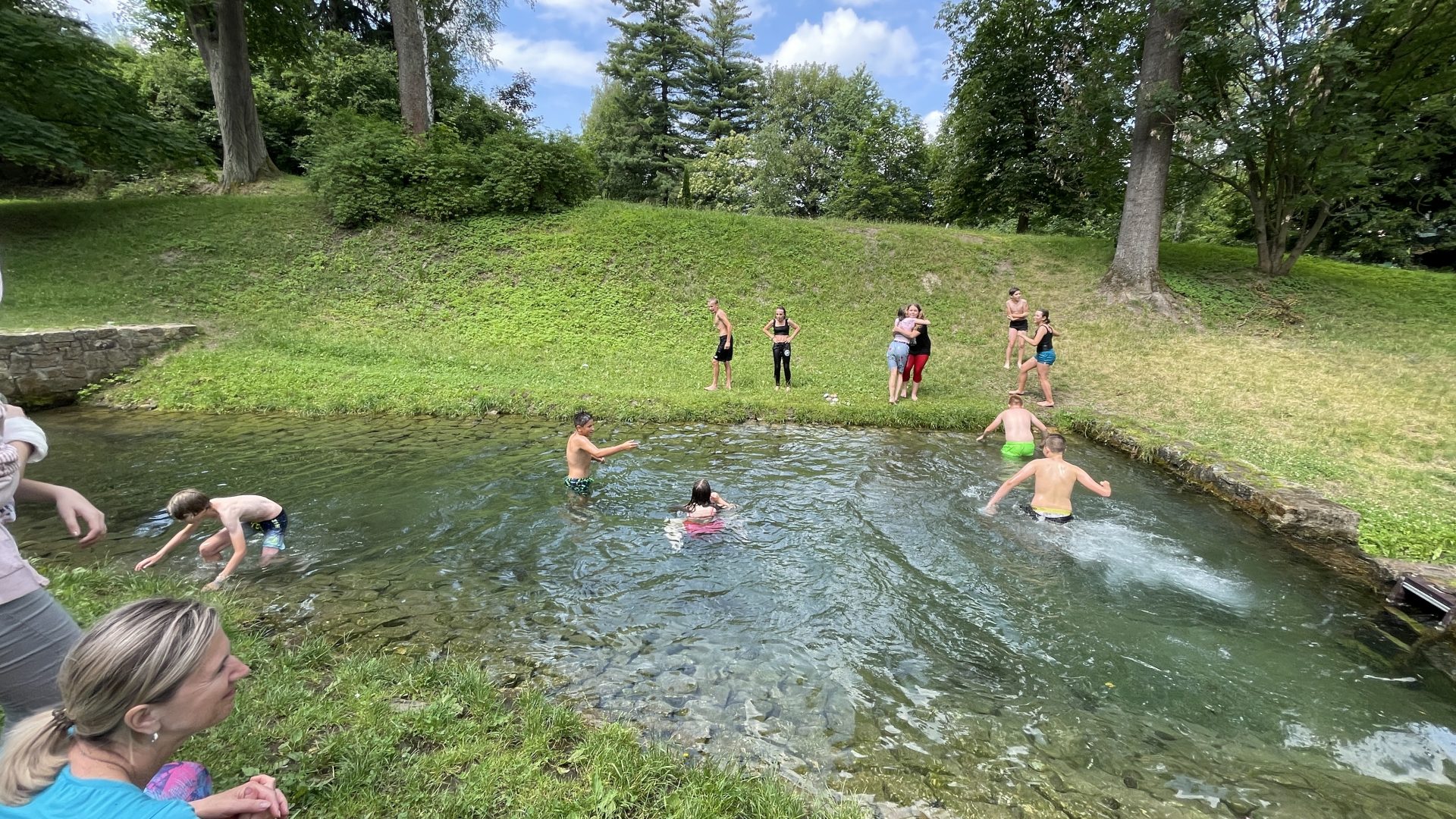 V úterý jsem se vydali na dějepisnou exkurzi do Křivolíku, kde se děti vrátily do doby kamenné, bronzové a železné a vyzkoušely si, jak vypadal život v pravěkých osadách. Při cestě nazpátek jsme se zchladili v Javorce, kam naskákali snad úplně všichni a stal se z toho nejlepší zážitek dne.