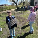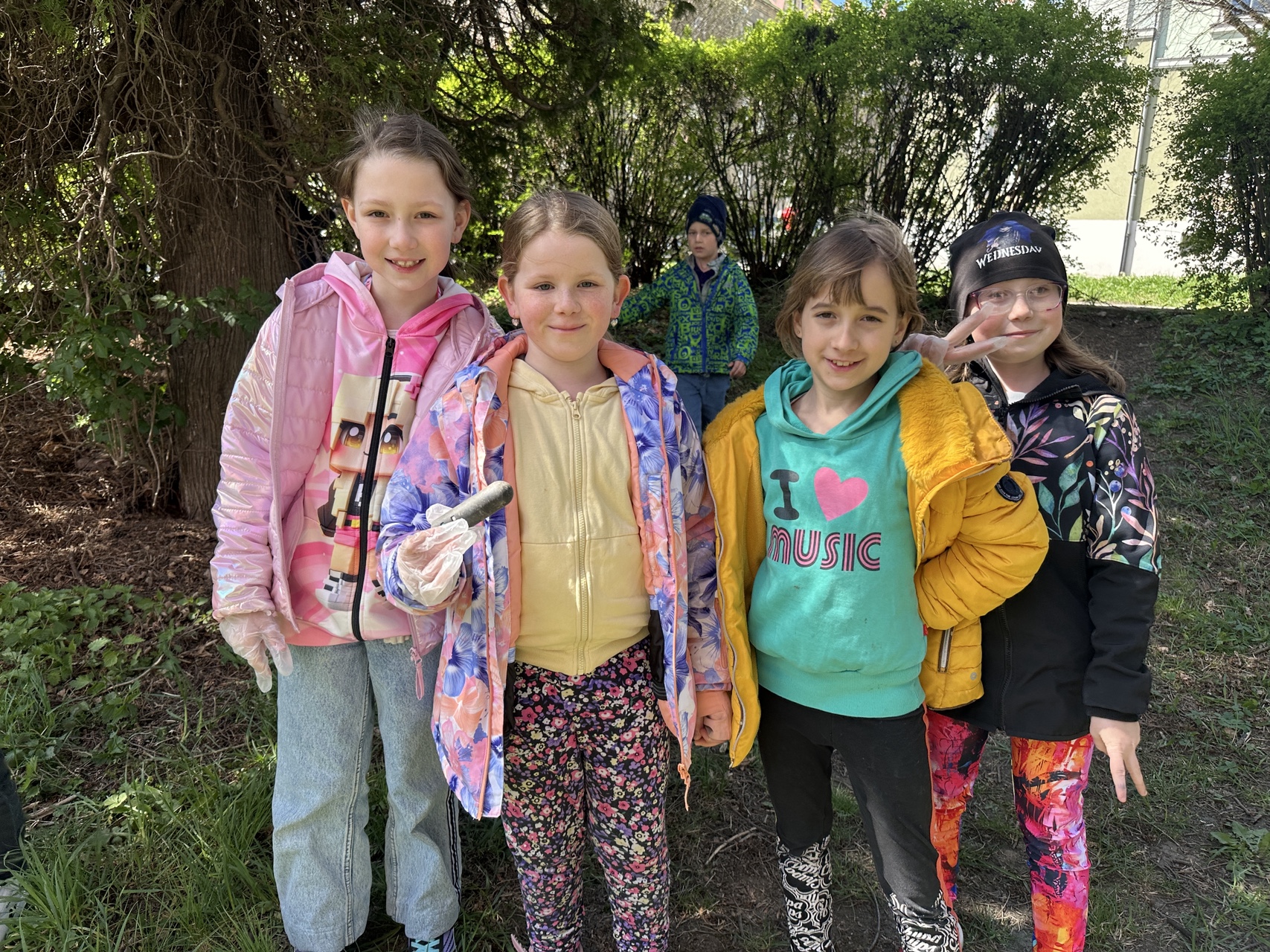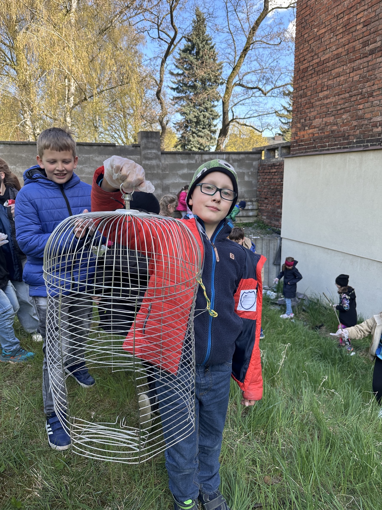 Všichni se této činnosti zhostili s vysokým nasazením a s úsměvem. Hlavně, když jsme v areálu školy našli sušák na prádlo nebo klec pro ptáčka 🙂 .