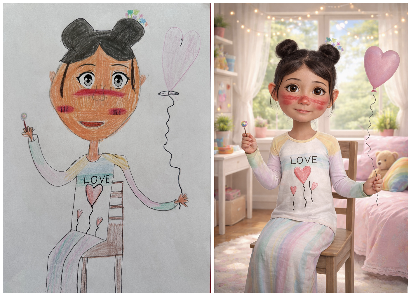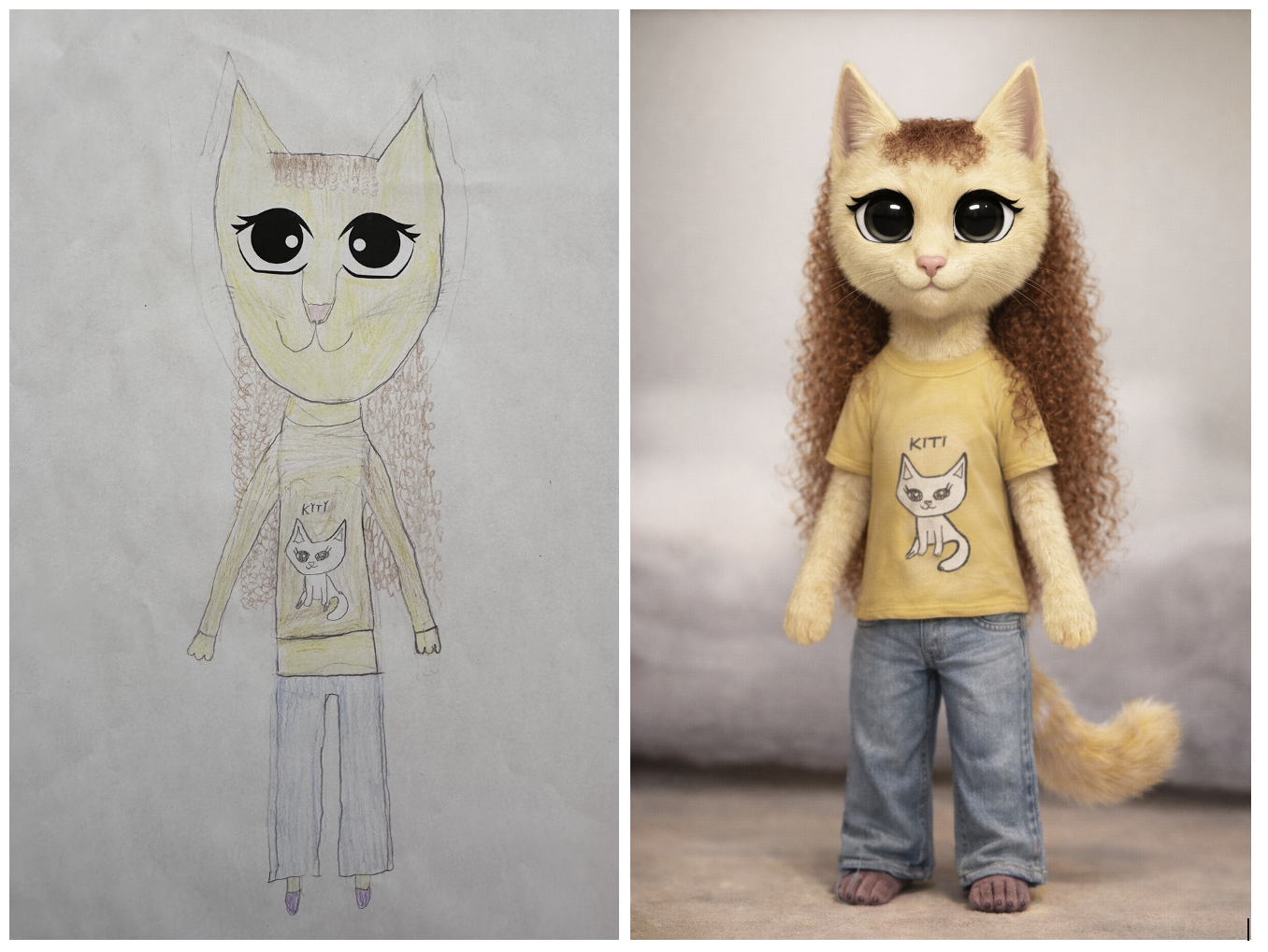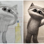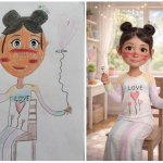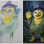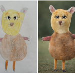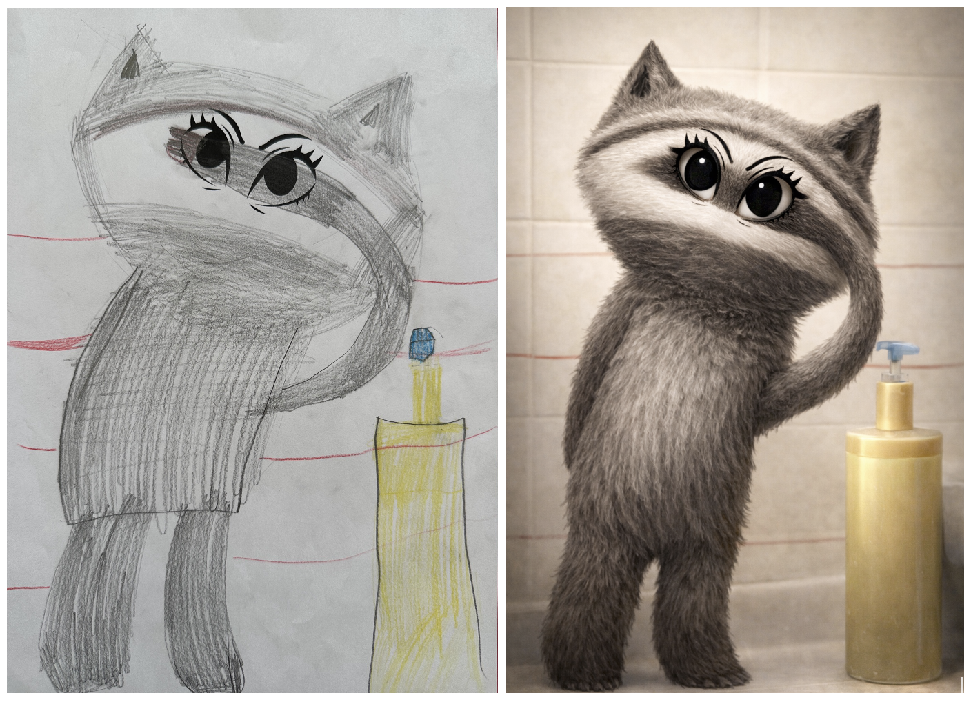 Původně byla na papíře pouze různá očička. Každý domaloval postavičku, příšerku nebo cokoli, co ho napadlo k očím, které si vybral. Poté jsme se nechali inspirovat 2. stupněm a nechali obrázek oživit pomocí ChatuGPT. Zde je malá ukázka …