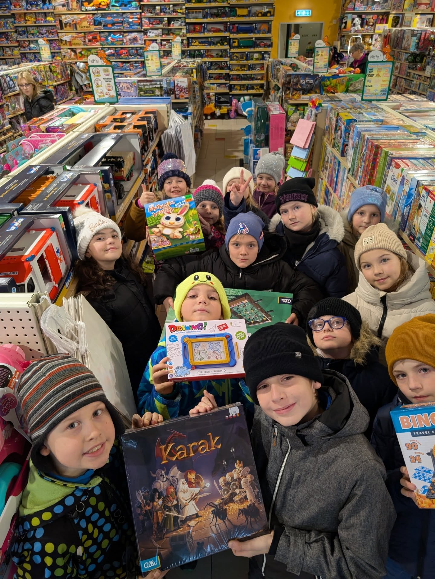 🎄 Společně jsme se vydali na dobrodružnou výpravu do obchodního centra v našem městě. Zavítali jsme do Dráčika. Děti se mohly rozhodnout, jestli budget využijeme pro mini dárky každému zvlášť nebo pro nové větší hračky do družiny. Zvítězily větší hračky. 🎮 Děti na základě budgetu intenzivně počítaly a pečlivě vybíraly, které hračky pořídíme. ✨Ve družině jsme do nových deskovek a herních aktivit maximálně zabraní. ⭐