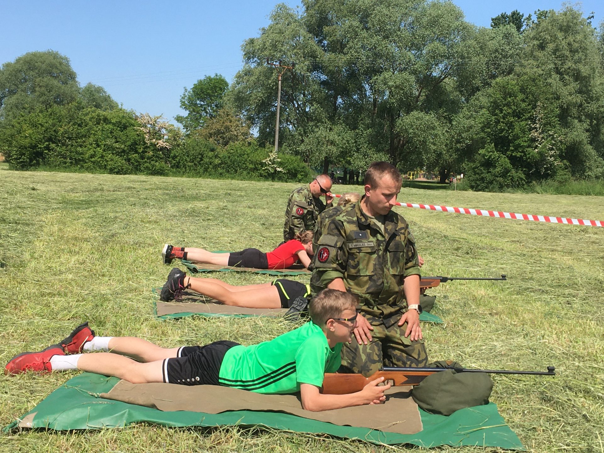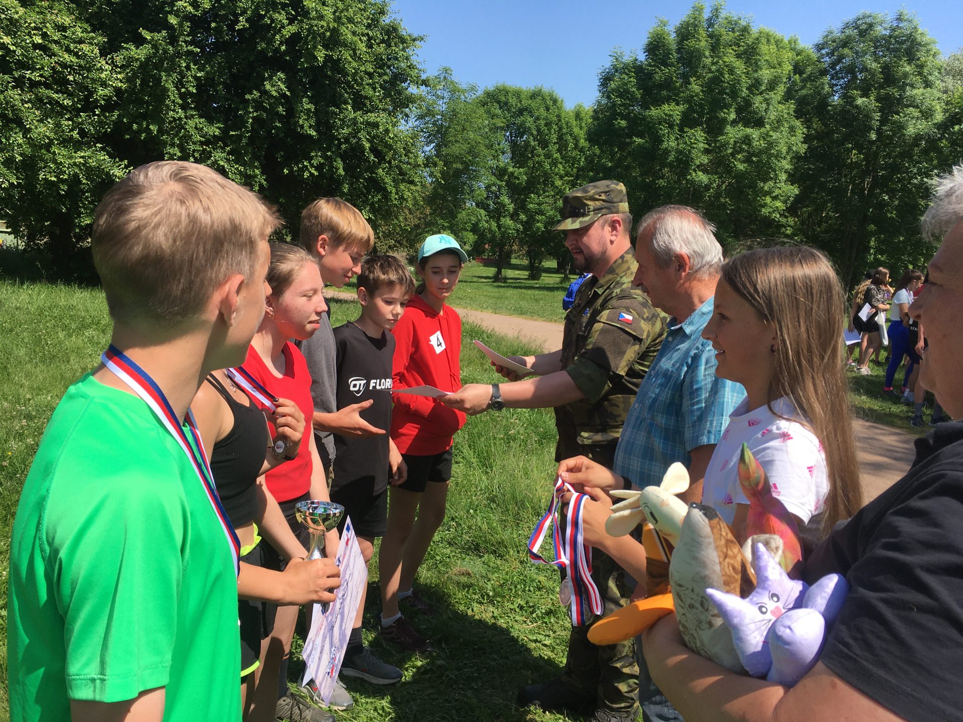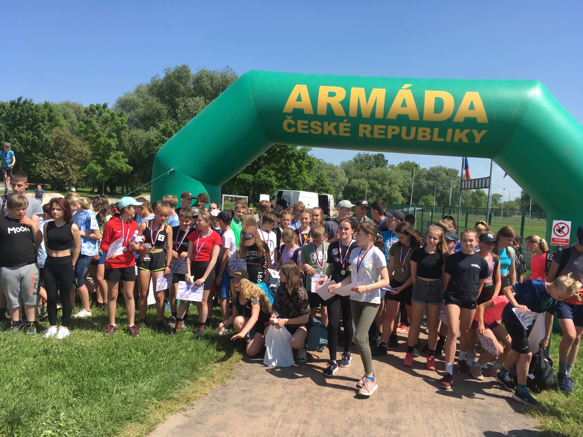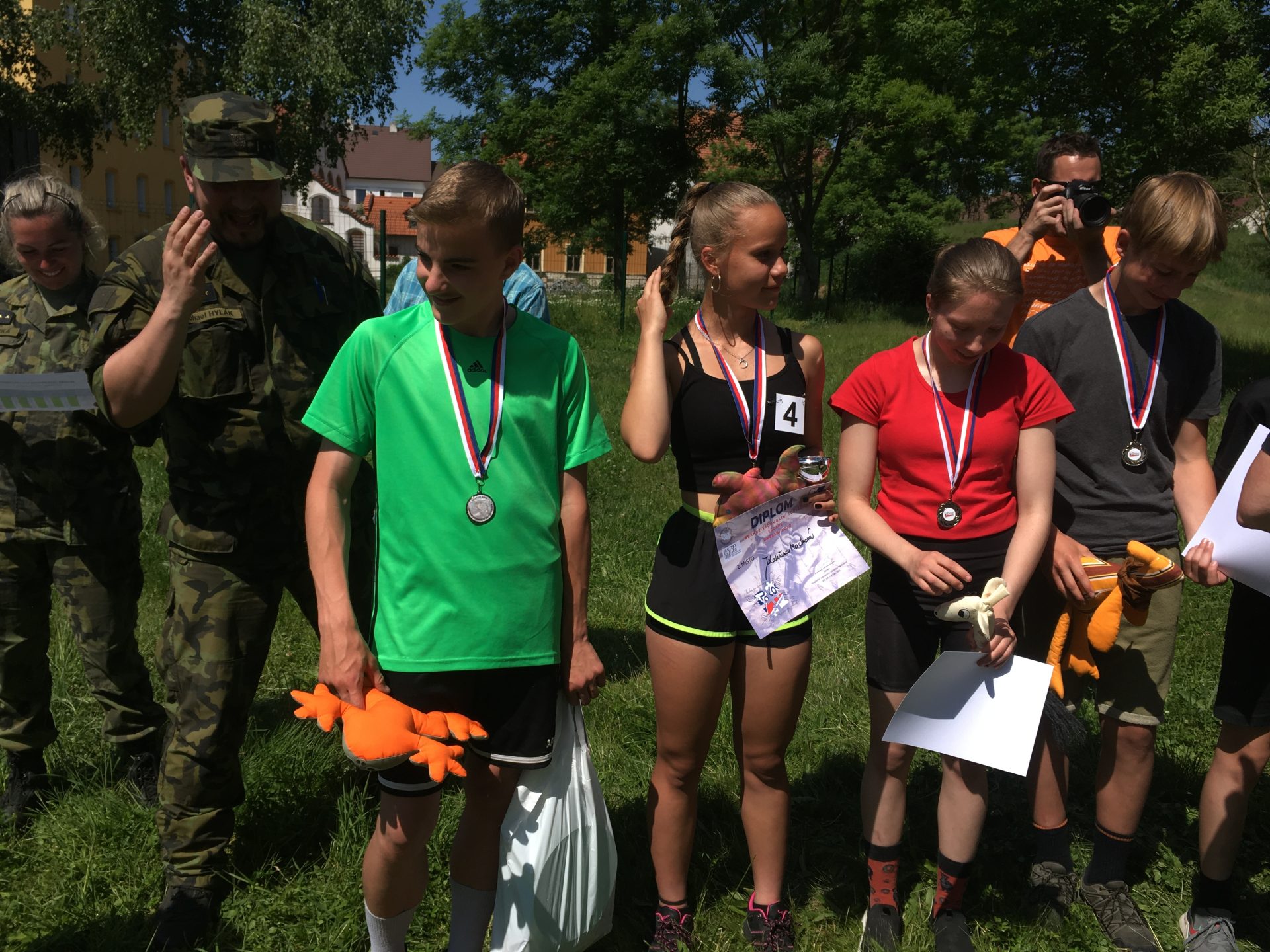Dalšími disciplínami byl člunkový běh 4 x 10 m, který vystřídal hod granátem na cíl. U střelby se naši rychle zorientovali, která vzduchovka a jak zanáší… a zařídili se podle toho. Z celodenního zápolení jsme vůbec neměli špatný pocit – přesto bylo při vyhlášení vítězů celkové skvostné druhé místo (z celkových 14 družstev) velmi hezkým překvapením. Svůj um a dovednosti budou tedy děti moci prokázat i v krajském kole soutěže, konaném v září letošního roku u výsadkářů v Chrudimi.
