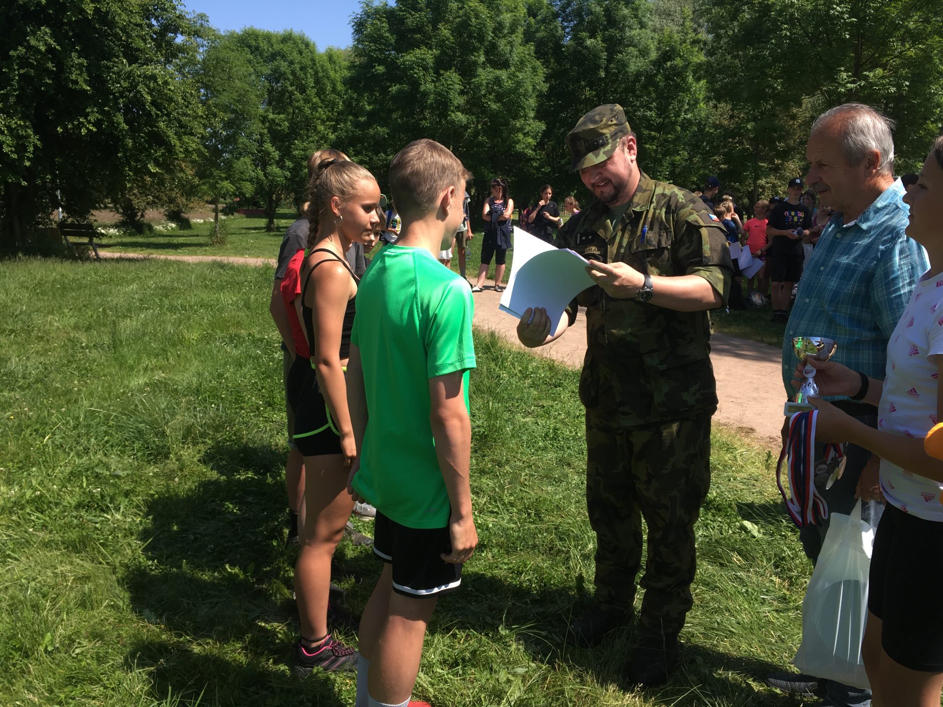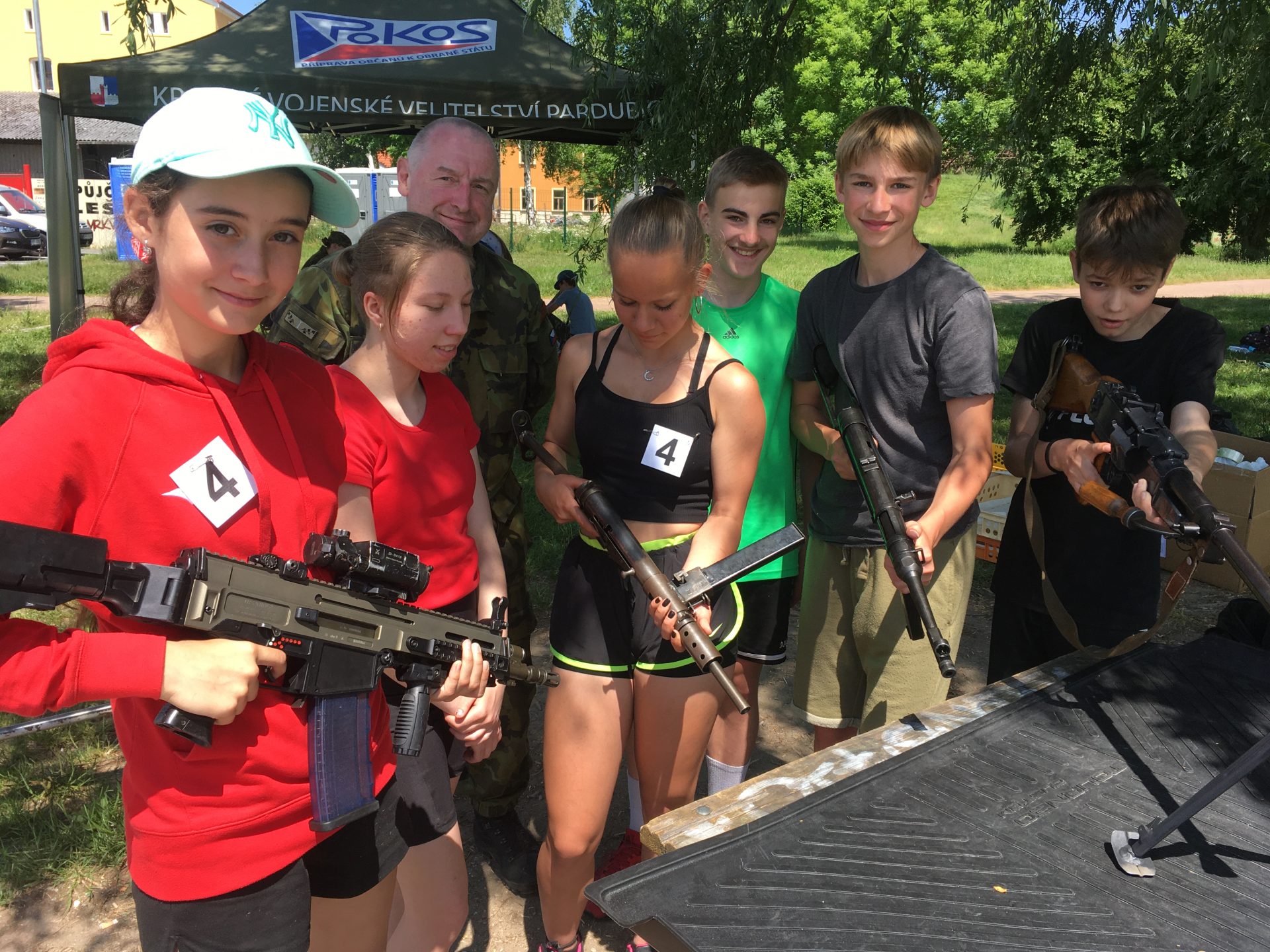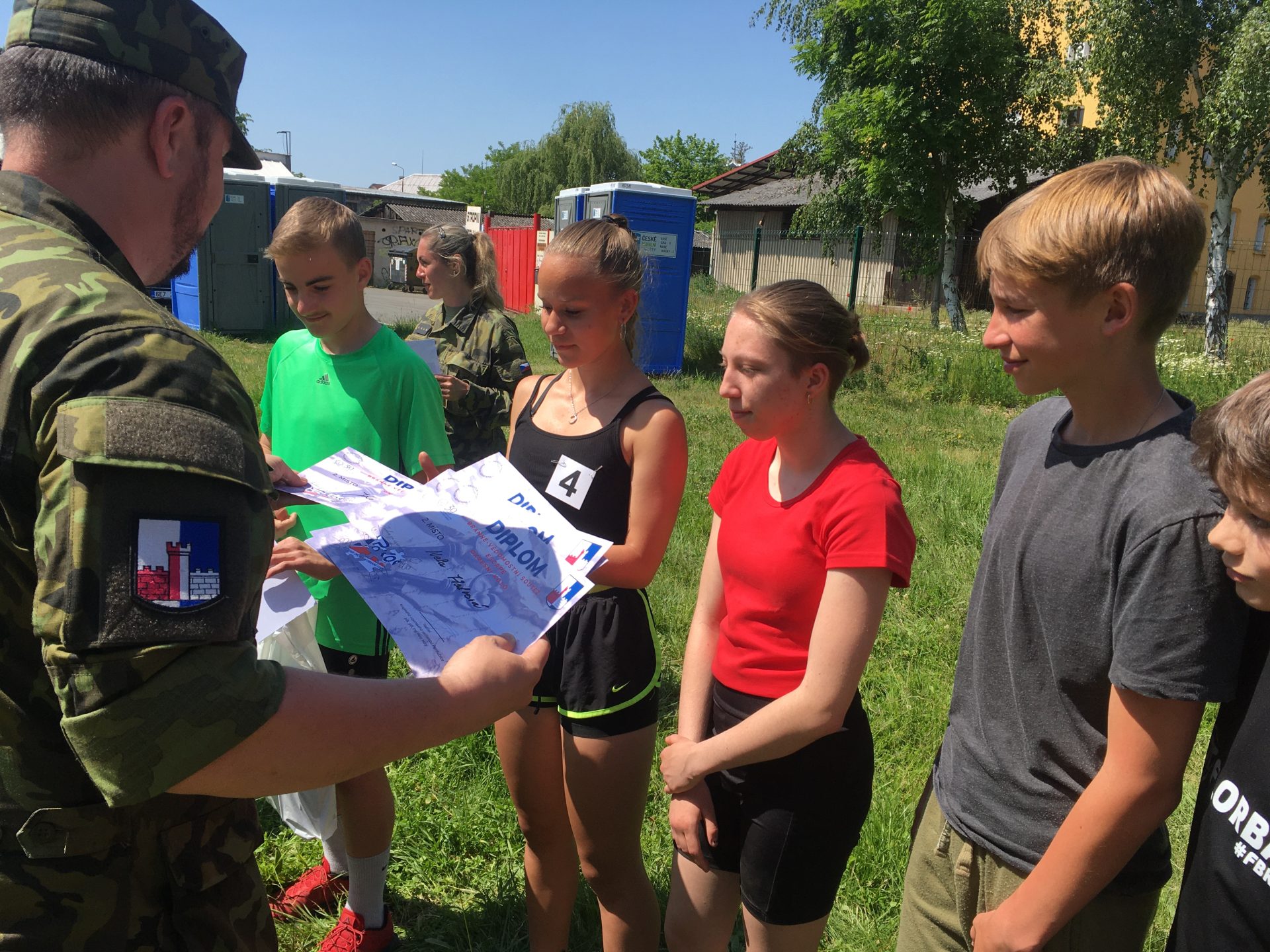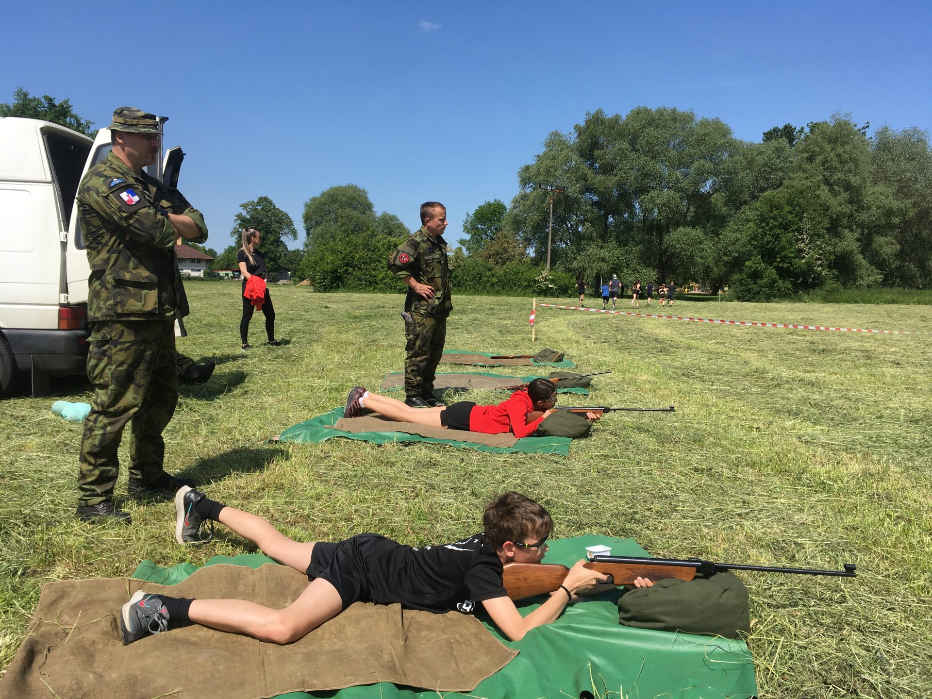 Dalšími disciplínami byl člunkový běh 4 x 10 m, který vystřídal hod granátem na cíl. U střelby se naši rychle zorientovali, která vzduchovka a jak zanáší… a zařídili se podle toho. Z celodenního zápolení jsme vůbec neměli špatný pocit – přesto bylo při vyhlášení vítězů celkové skvostné druhé místo (z celkových 14 družstev) velmi hezkým překvapením. Svůj um a dovednosti budou tedy děti moci prokázat i v krajském kole soutěže, konaném v září letošního roku u výsadkářů v Chrudimi.