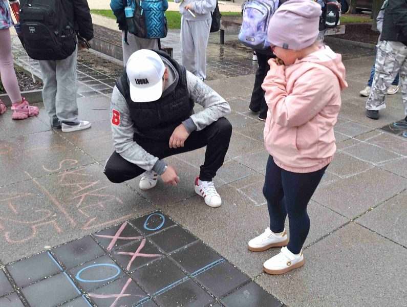 Dnes nám opět počasí příliš nepřálo, ale od naší akce PĚŠKY DO ŠKOLY nás to neodradilo. S dešníky i bez – jsme si dnešní ráno před školou pořádně užili. Zahráli jsme si i plánované PIŠKVORKY, i když trochu jinak, než jsme původně plánovali. Došlo i na skákání s 8.A. V dobré náladě jsme odjeli mašinkou vstříc dalšímu školnímu dobrodružství přímo do školy.
