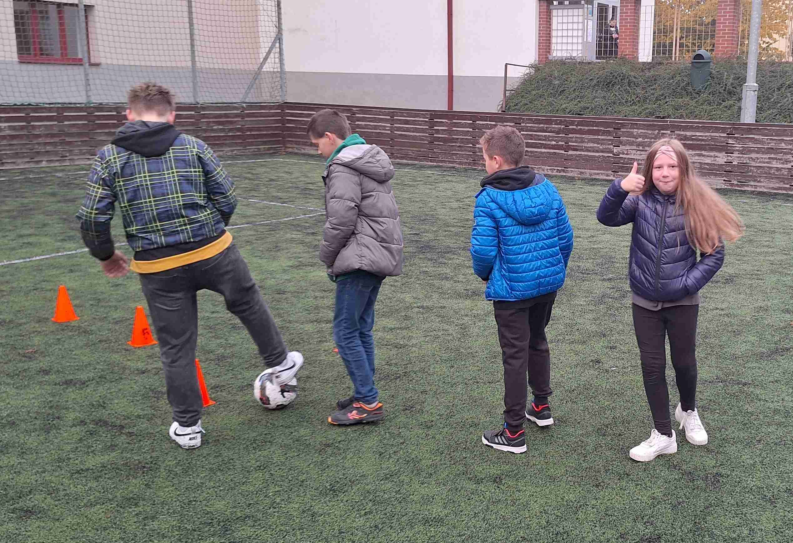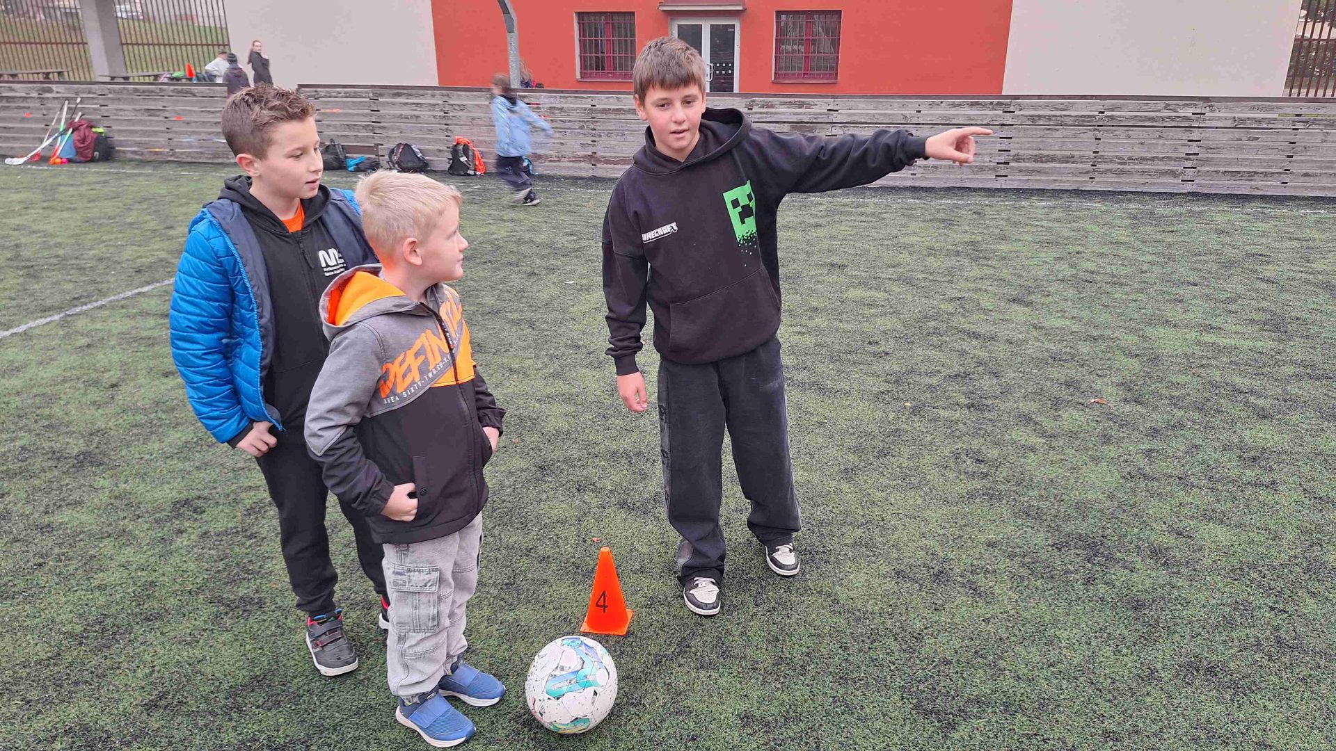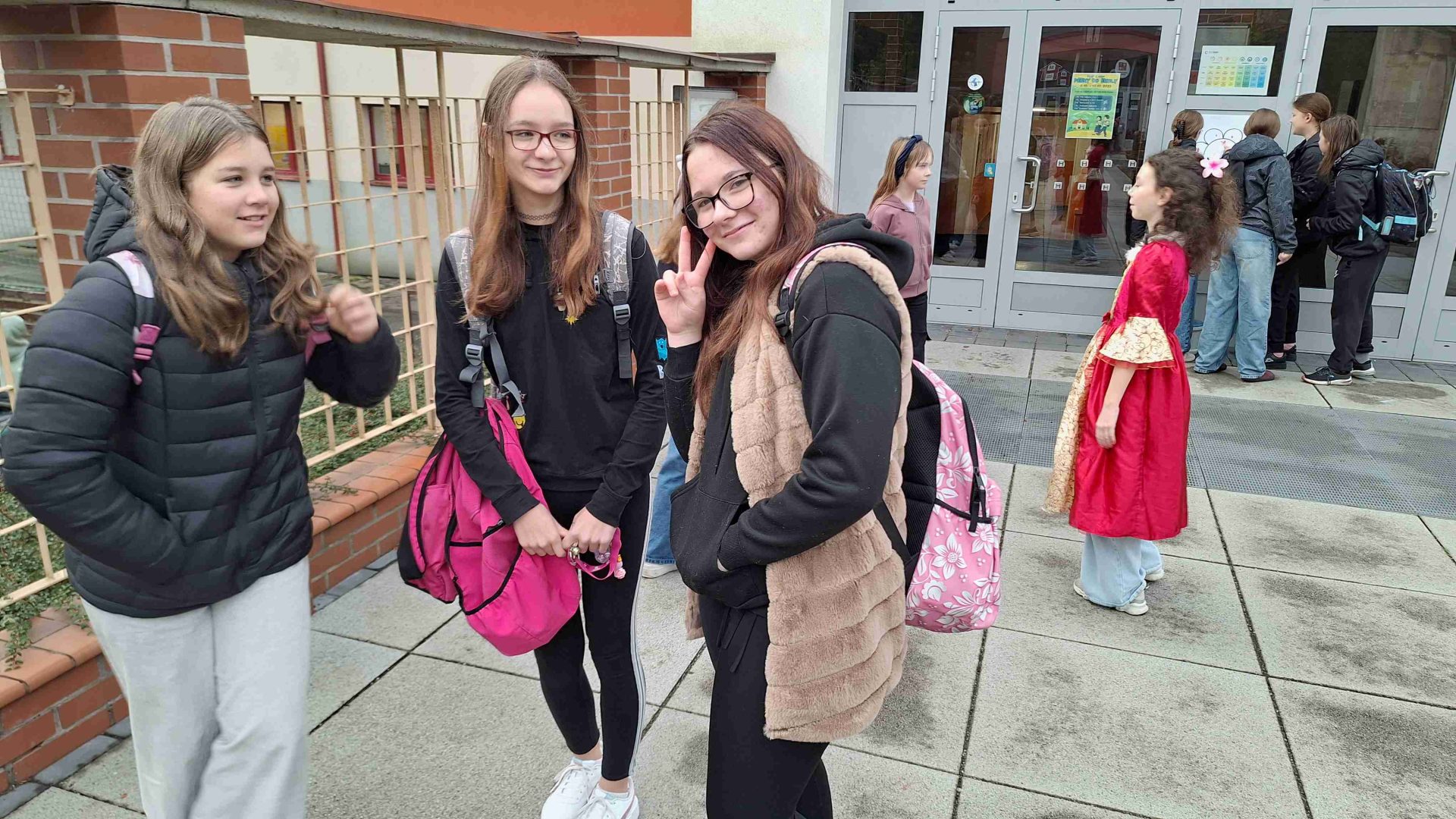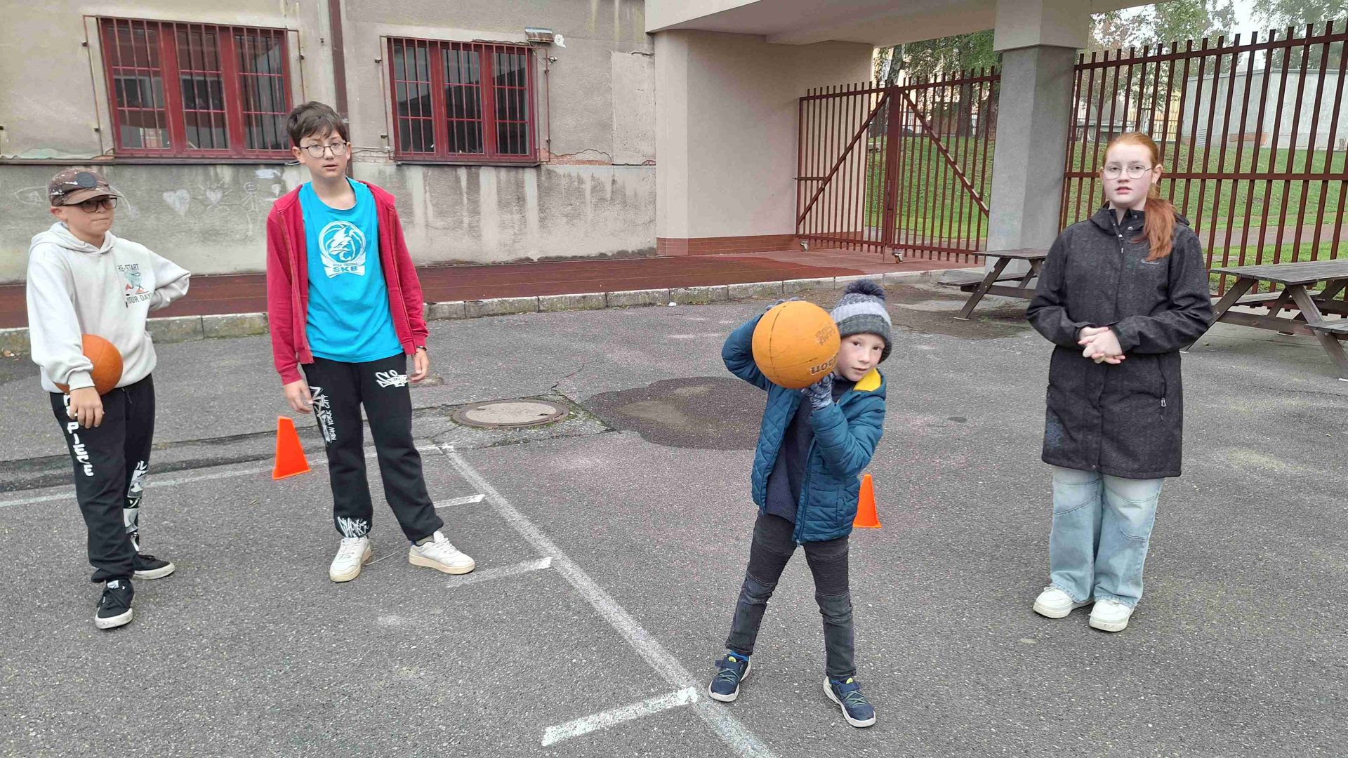 Dnešní program PĚŠKY DO ŠKOLY se odehrával hravně na školním hřišti, kde si pro všechny žáky školy připravila stanoviště třída 6.B. Opět jsme si mohli zopakovat tanečky s děvčaty ze 7. tříd.