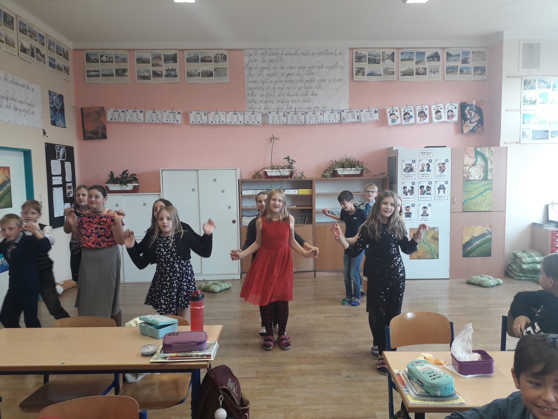 I takto mohou vypadat přestávky ve škole, kde není zakázáno používání mobilních telefonů. Jediný, kdo měl během této přestávky mobil v ruce, byl  pan učitel, který fotografoval tuto spontánní akci žáků. Pochvalné vyjádření české školní inspekce o klimatu naší školy zřejmě nebylo přehnané. Přispívá k němu zajisté i akce organizované školním parlamentem, jako byl  dnešní Gala den.
