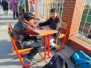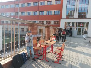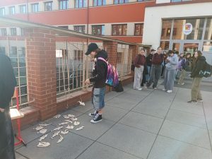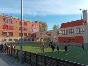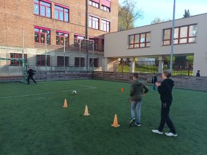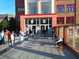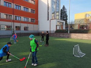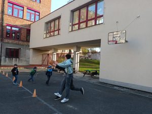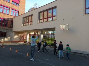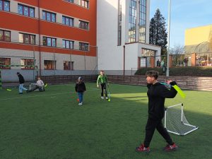 V úterý 28.4. si 6.B připravila v rámci akce Pěšky do školy ranní sportování pro ostatní žáky naší školy. Zájemci si mohli zkusit zahrát basketbal, florbal, fotbal, kuželky či zkusit lovení rybiček. Kdo si chtěl místo těla procvičit především mozek, mohl to zkusit u 3D piškvorek 😊.