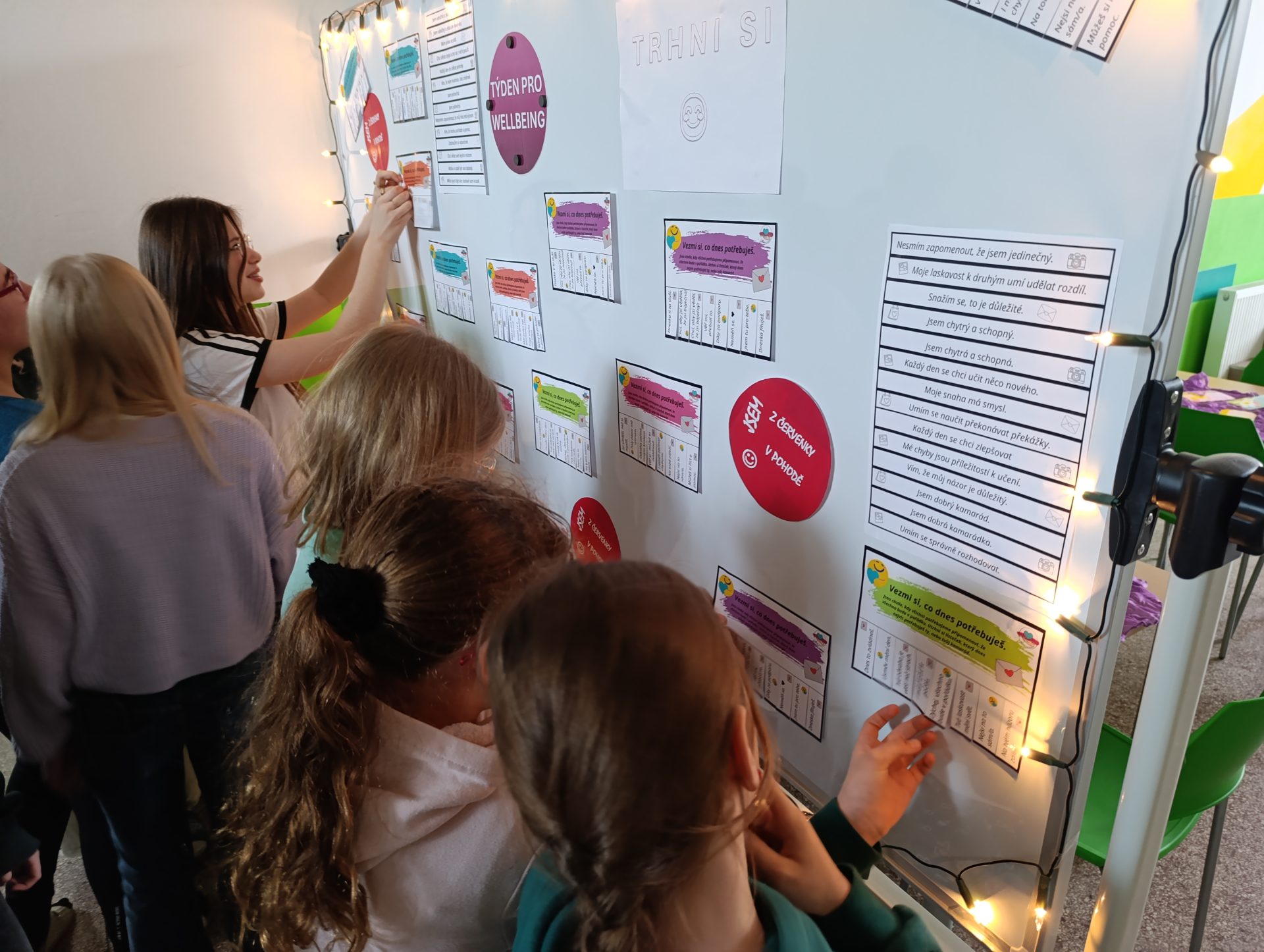 Týden pro wellbeing jsme na škole zahájili aktivitou s motivačními kartičkami. Žáci si mohli vybrat kartičku, která je oslovila, a využít ji buď jako povzbuzení pro své spolužáky, nebo jako malou dávku vlastní motivace.