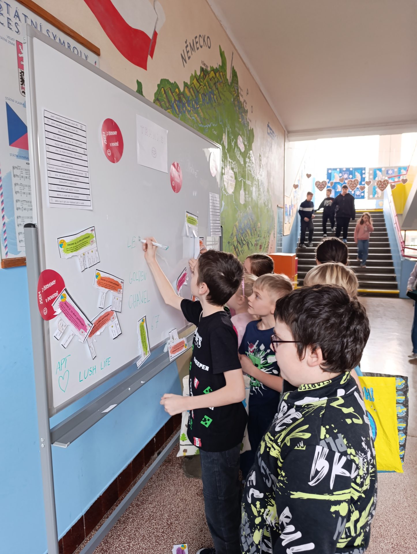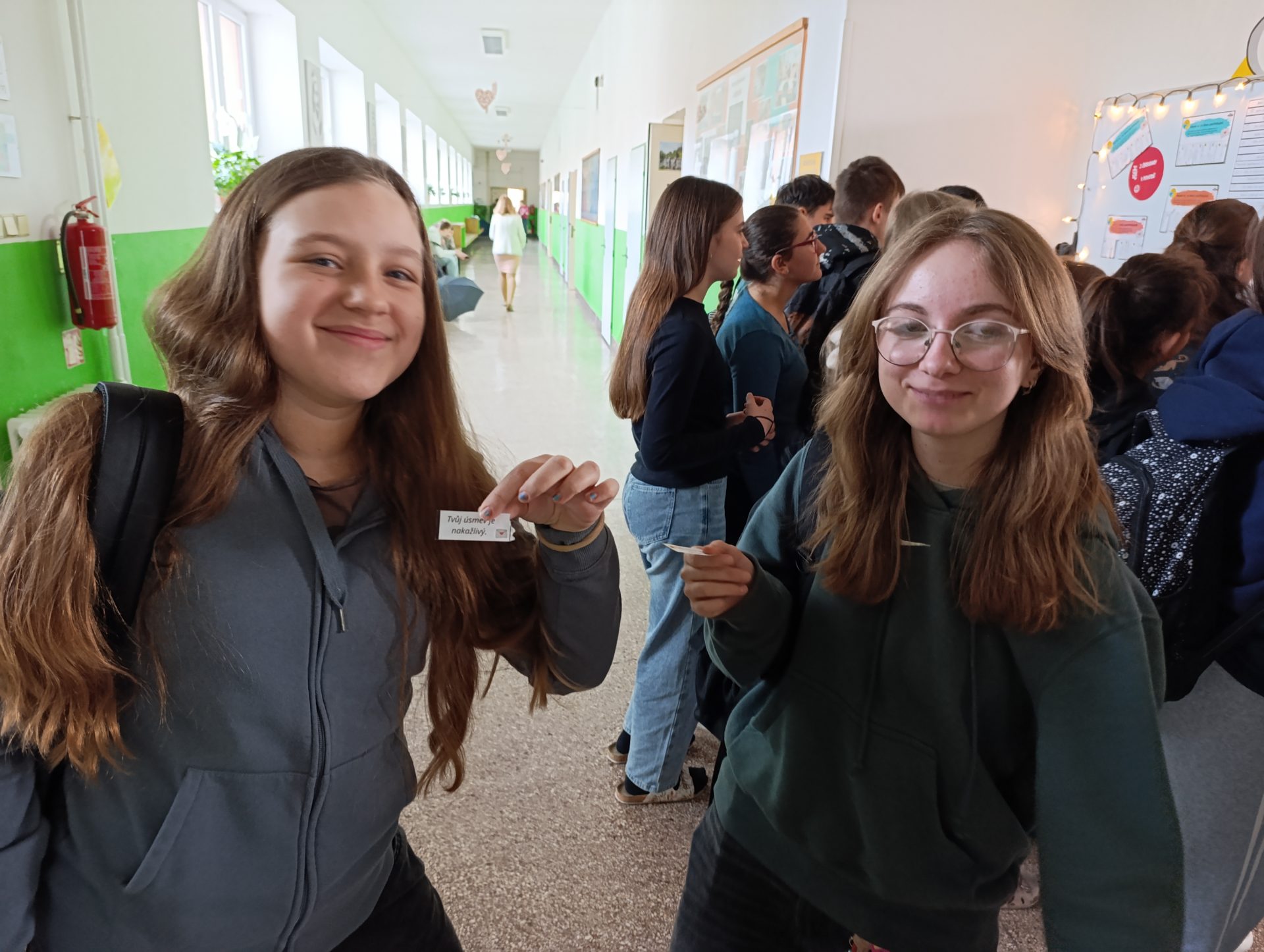 Kartičky přinesly do školních chodeb příjemnou atmosféru vzájemné podpory a připomněly nám, jak důležitá je laskavost, spolupráce a pozitivní myšlení.