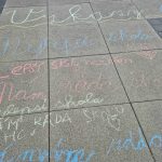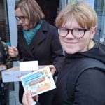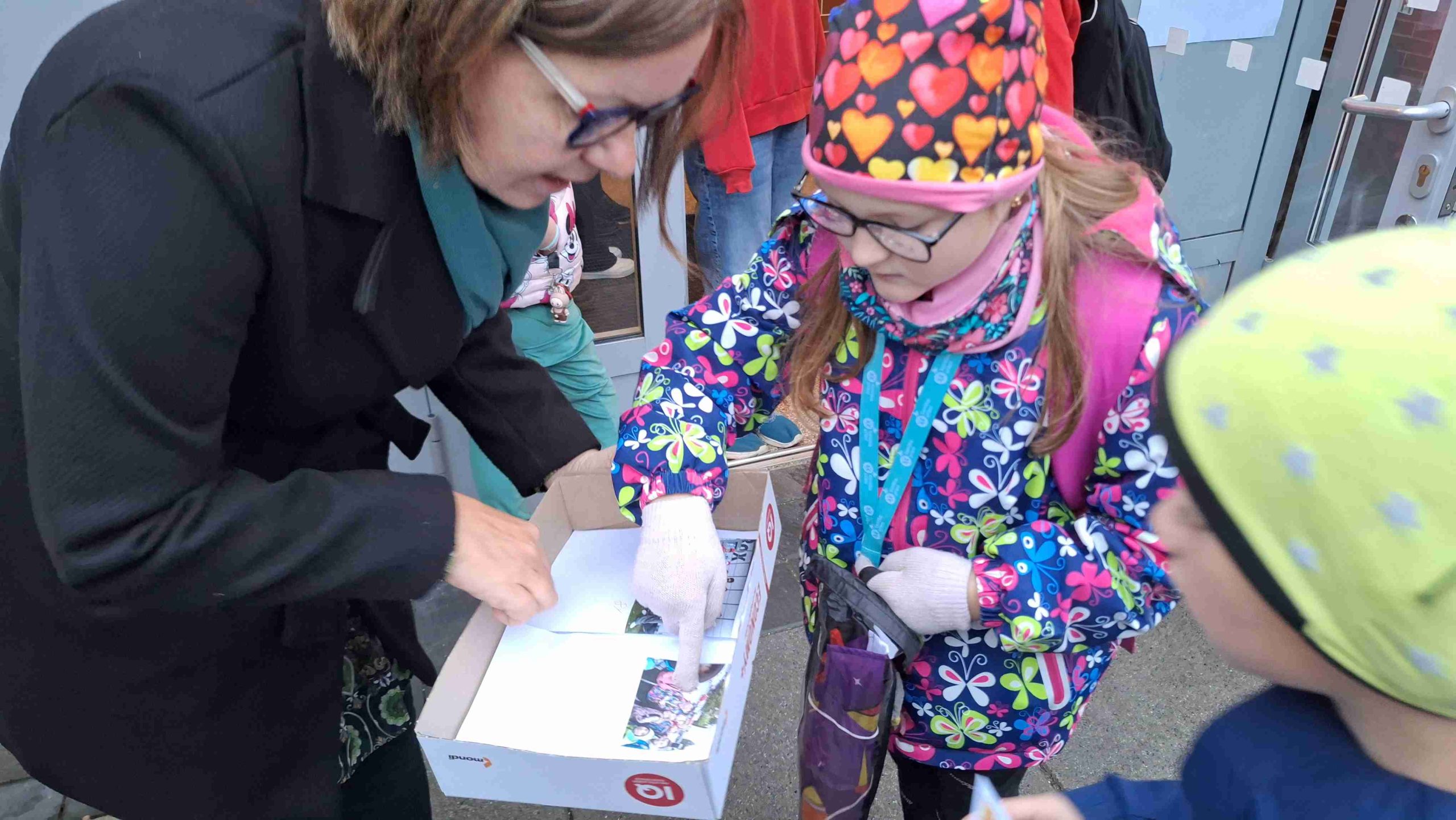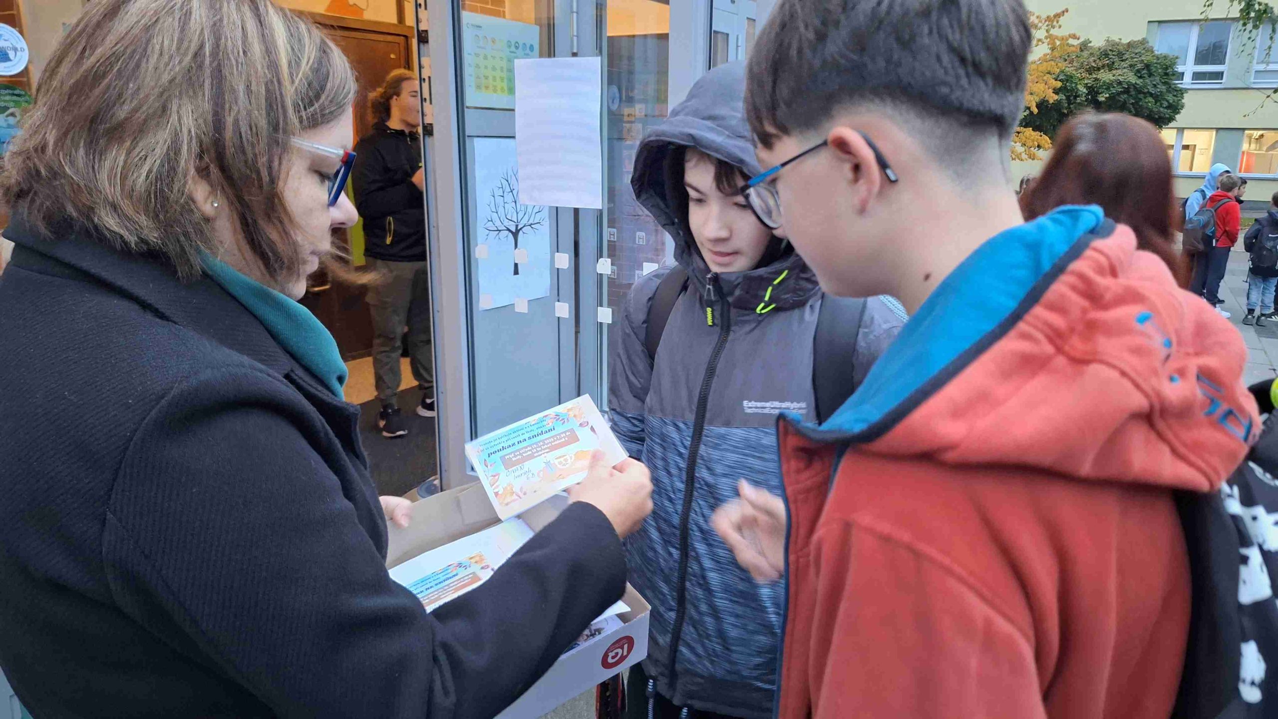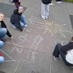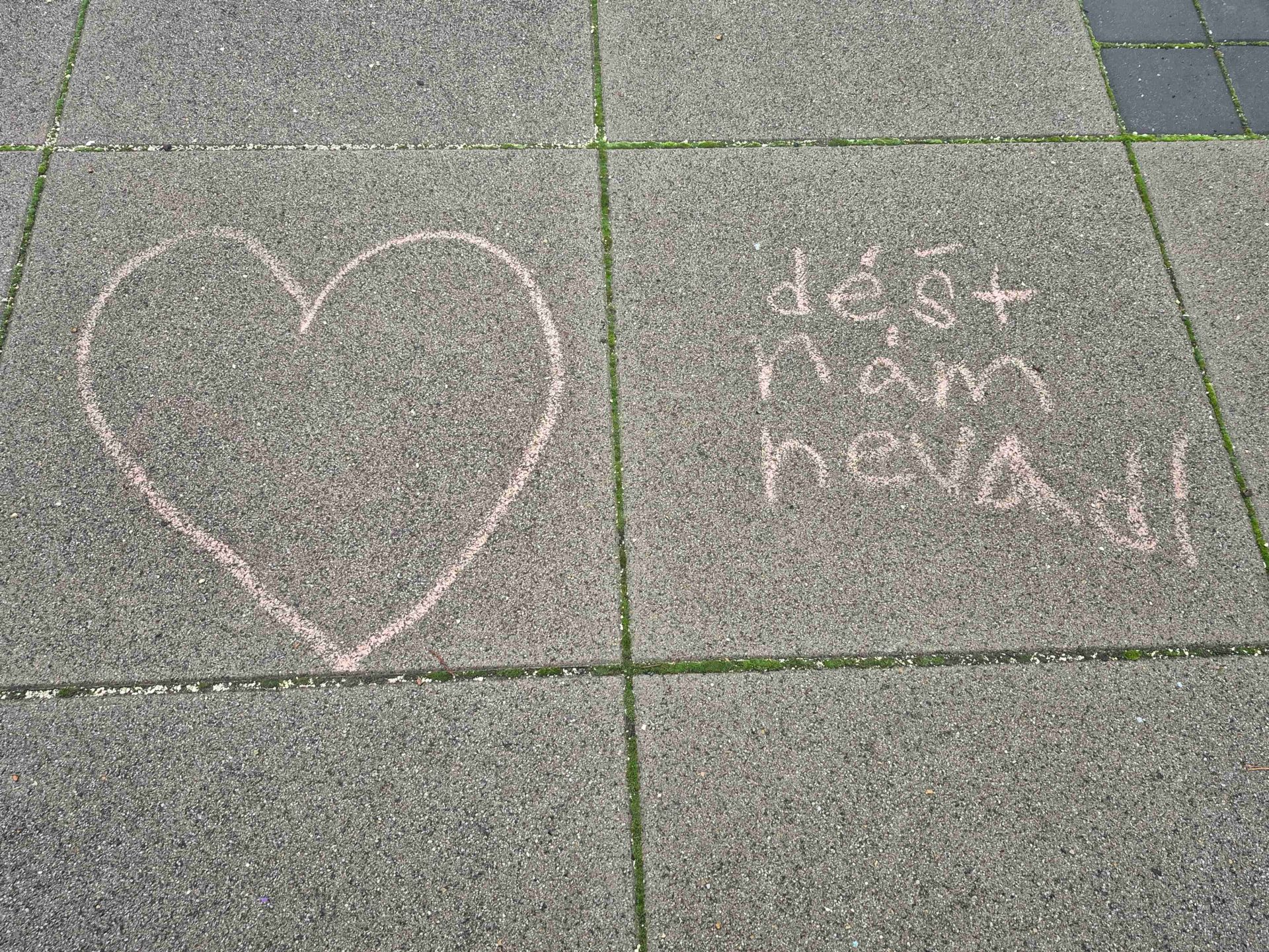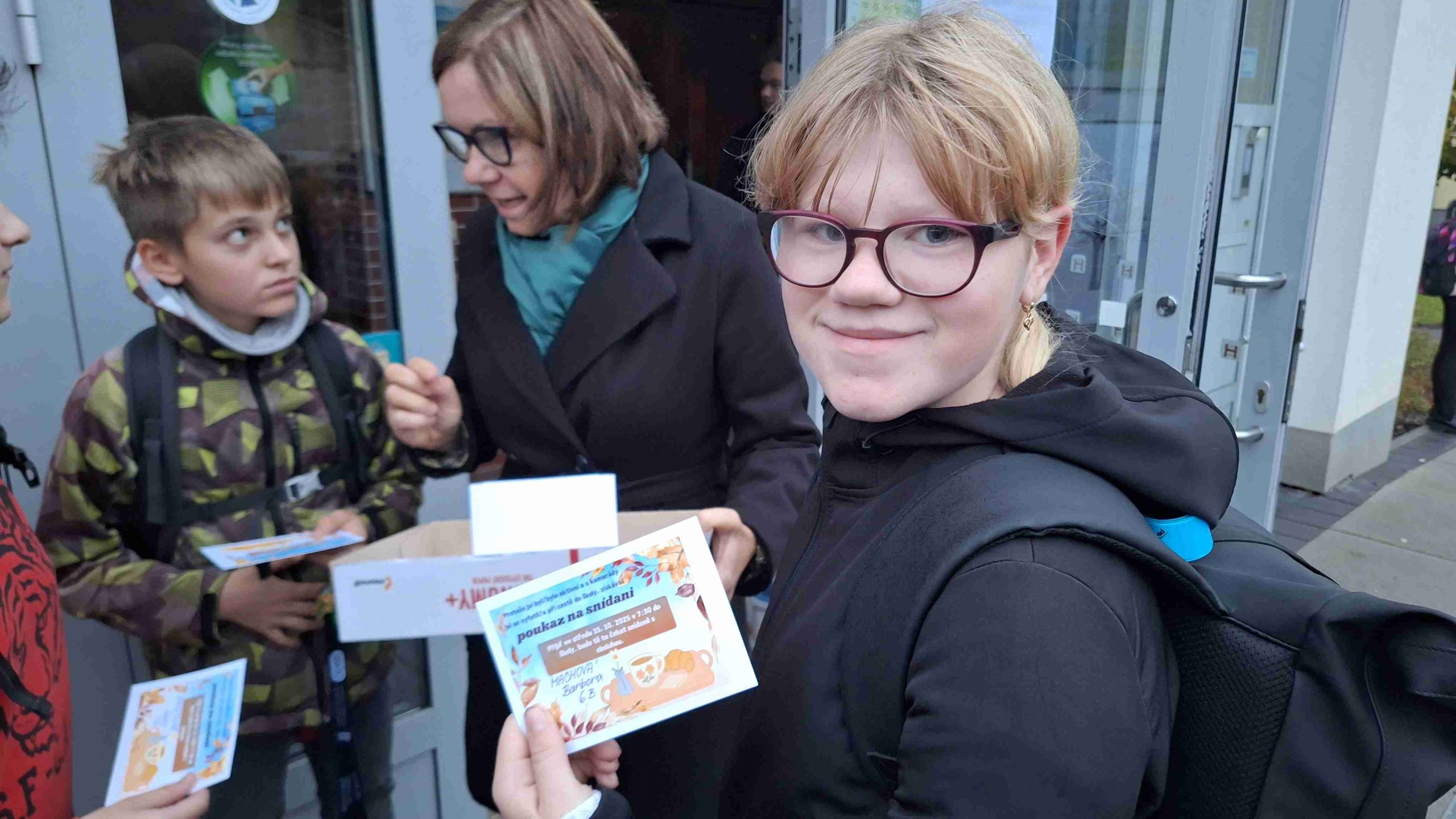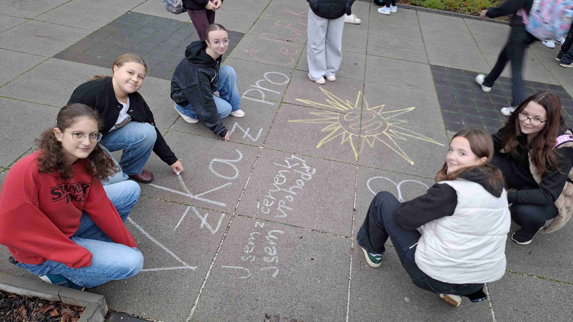 Každý, kdo chtěl, mohl na zem křídou napsat vzkaz pro „Červenku“. Všem oceněným žákům jsme předali poukazy za nejoriginálnější fotografie z instagramové soutěže, která zachycovala jejich cestu do školy.