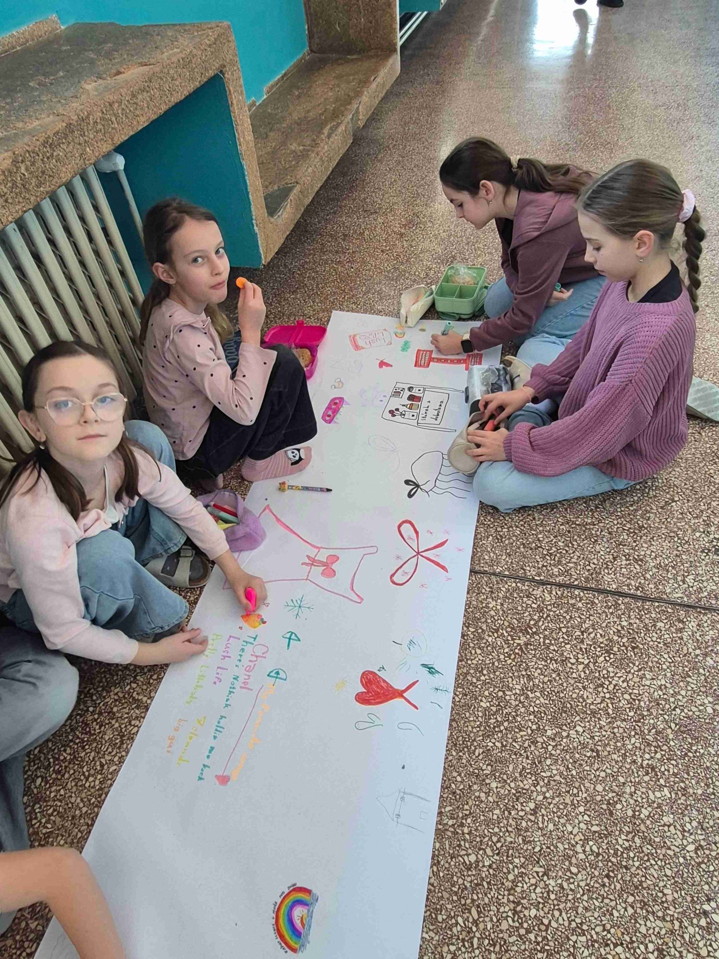 Každý mohl přidat svůj obrázek, vzkaz nebo barevný motiv – stačily pastelky, fixy a chuť zapojit se. Postupně tak vznikalo pestré dílo plné nápadů a fantazie.