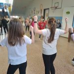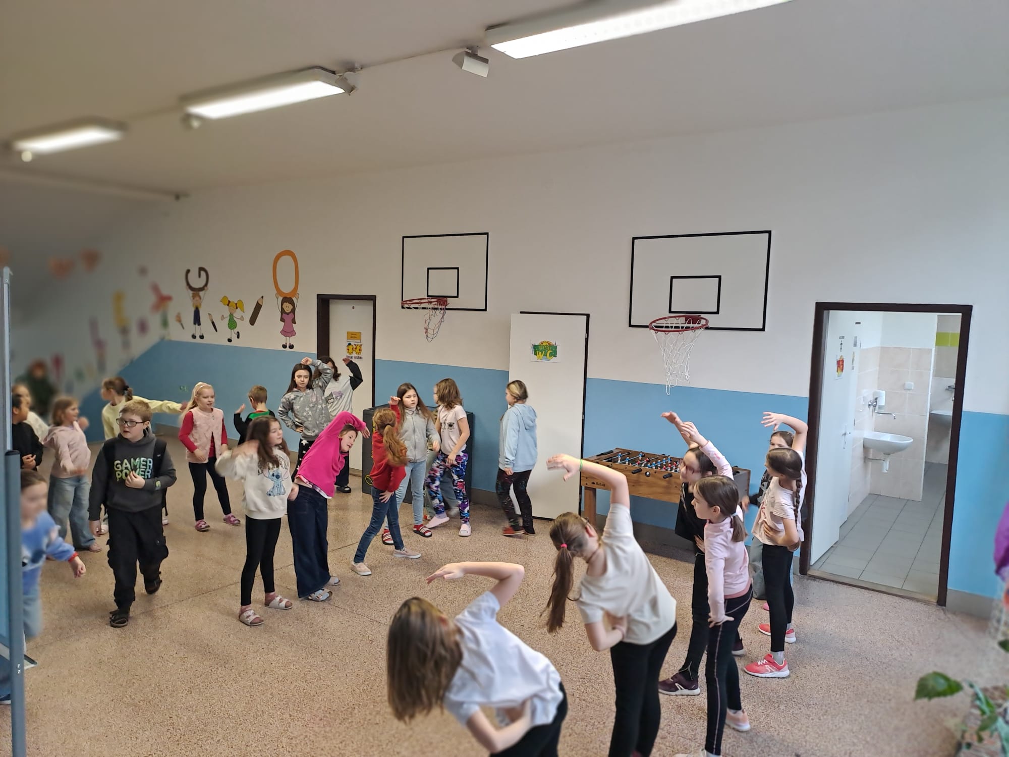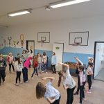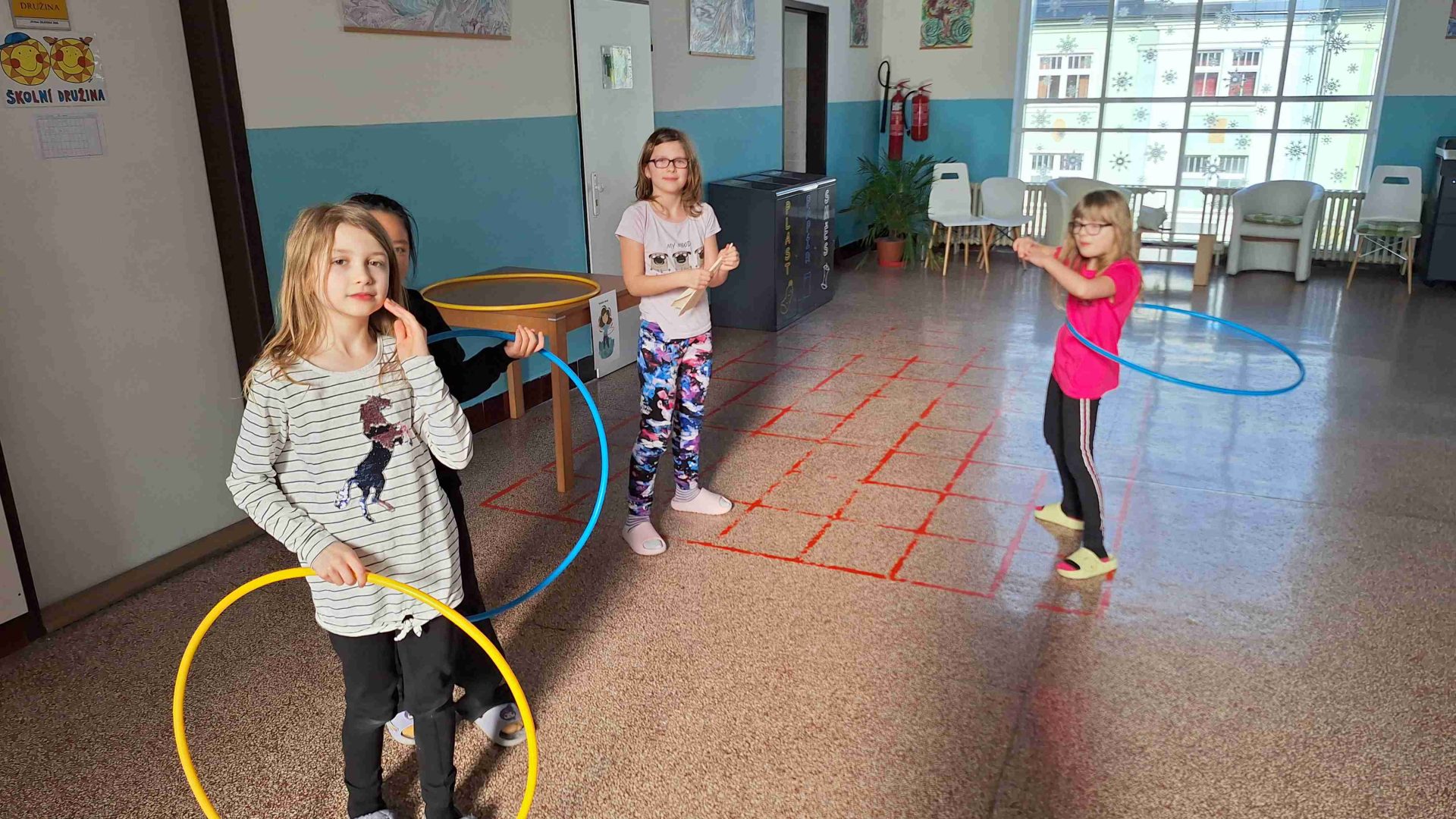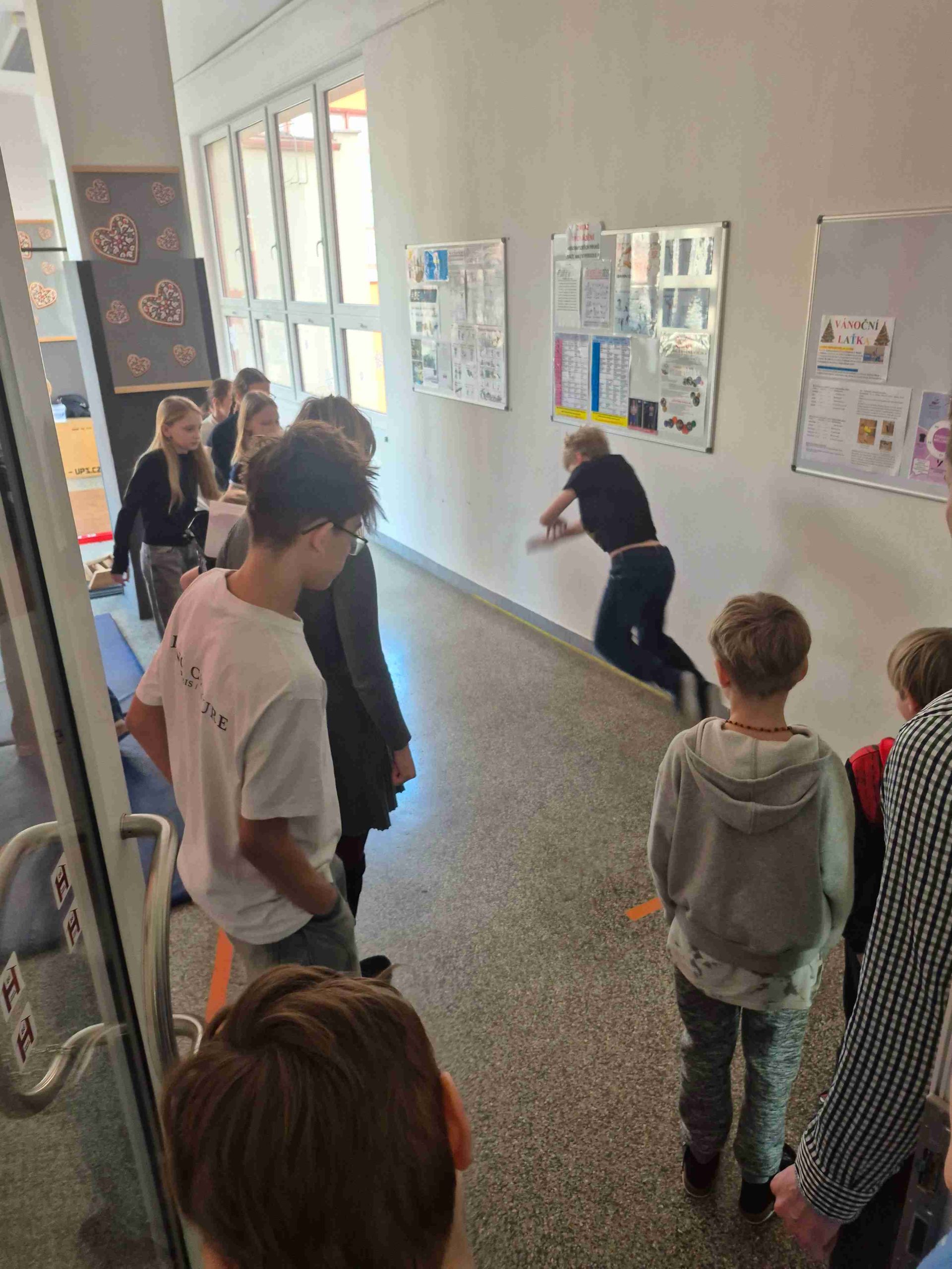 Dnes jsme školu rozhýbali! O přestávkách mohli žáci vyzkoušet několik pohybových aktivit. Na prvním stupni začali rozcvičkou, kterou připravily žákyně 4.B, nechyběl skok do dálky, obruče, házení šipkami a další. Zítra budeme malovat na chodbách – pastelky a fixy s sebou!