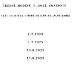 Úřední hodiny přes PRÁZDNINY