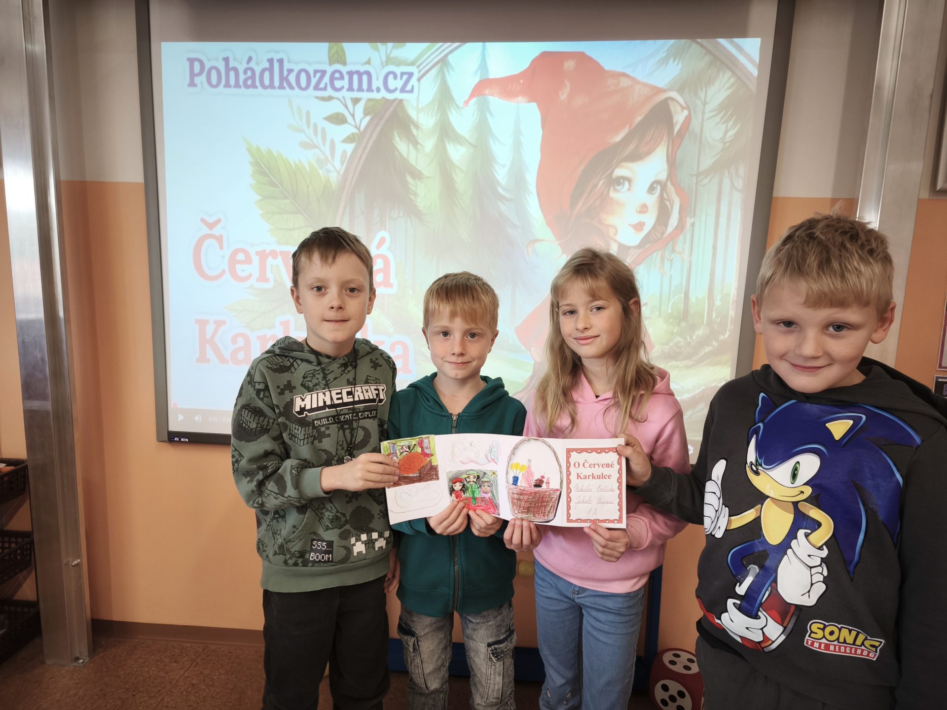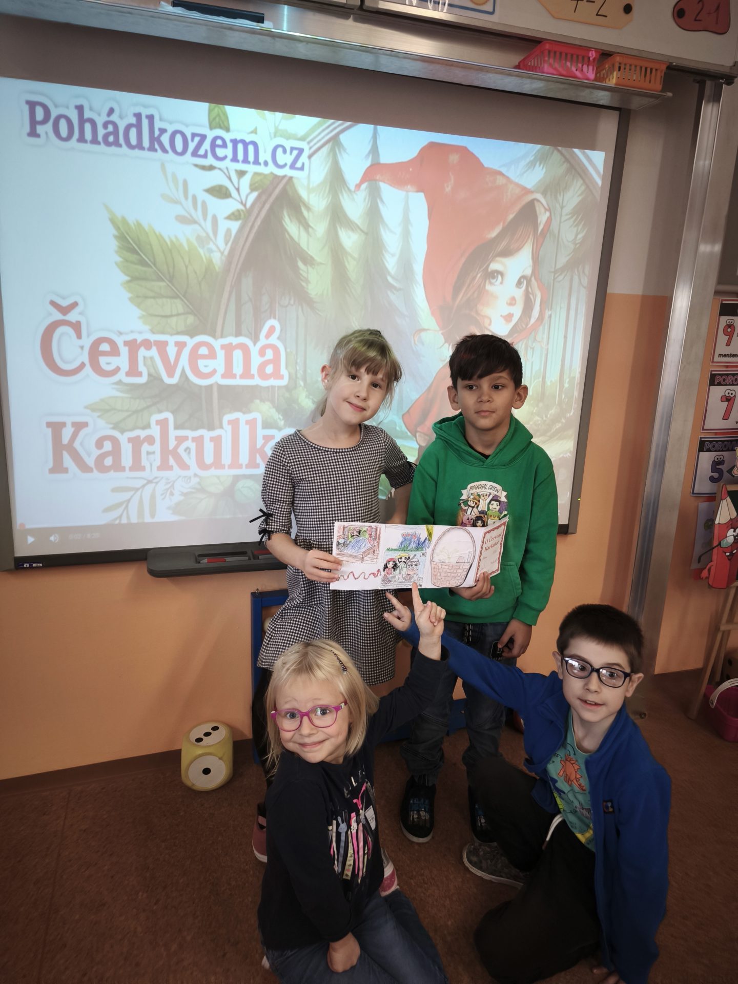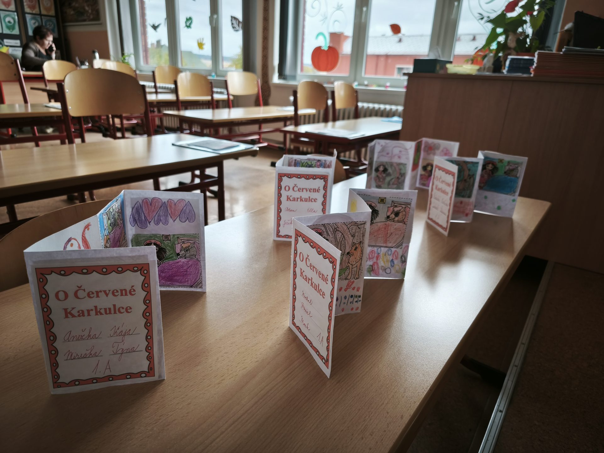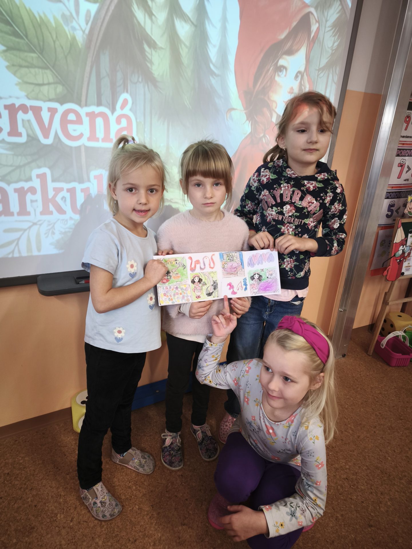 Červená Karkulka – zhlédnutí pohádky, četba pohádky, práce ve skupině, tvorba leporela.