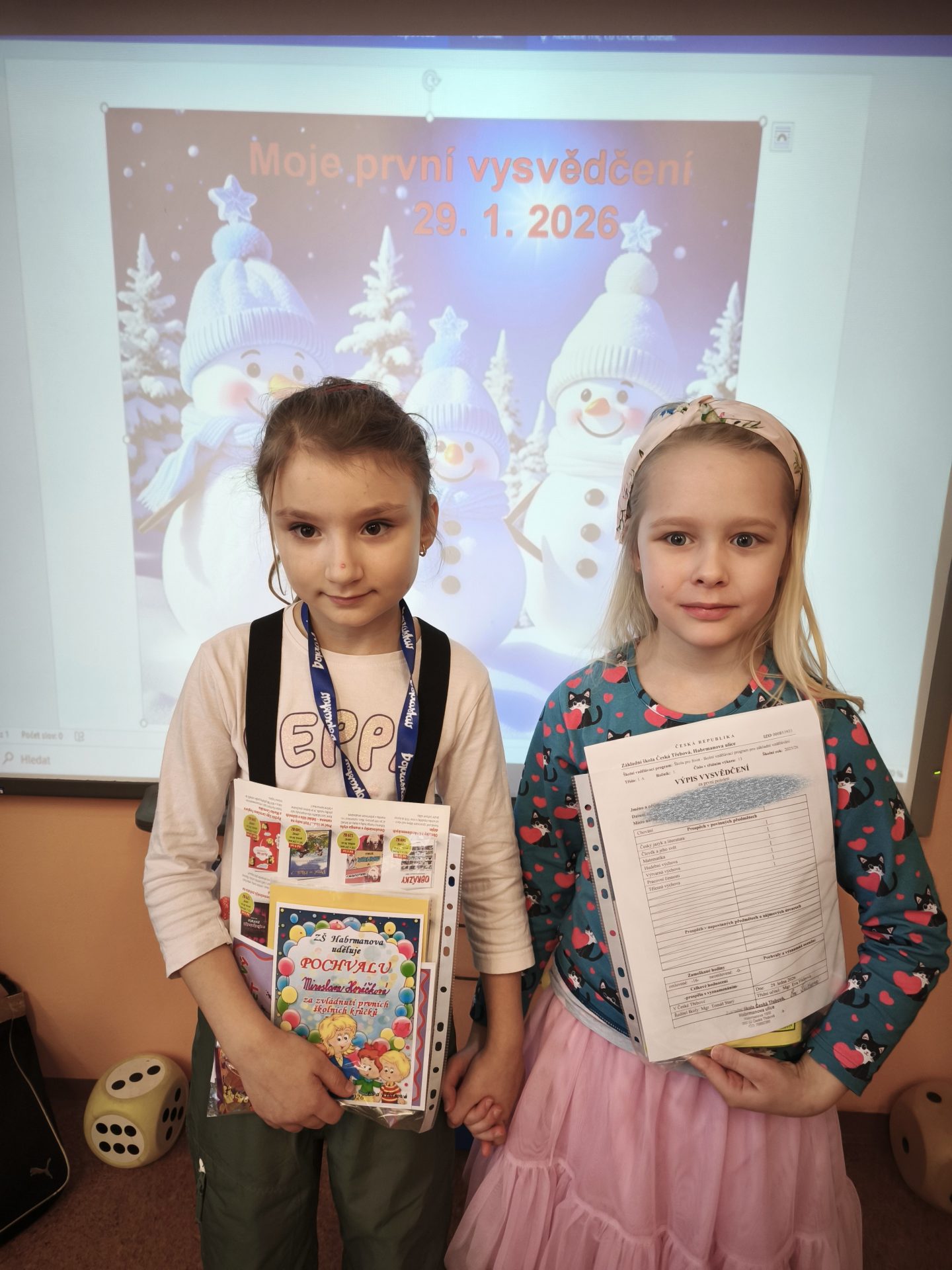 Celá třída 1. A  se moc těšila na čtvrtek 29. 1.  Přišla dlouho očekávaná a nejdůležitější chvíle  – slavnostní předání prvního vysvědčení. Všem prvňáčkům gratulujeme k zvládnutí prvních školních krůčků a do druhého pololetí přejeme mnoho dalších úspěchů! Eva Flídrová a Ivana Ondráčková