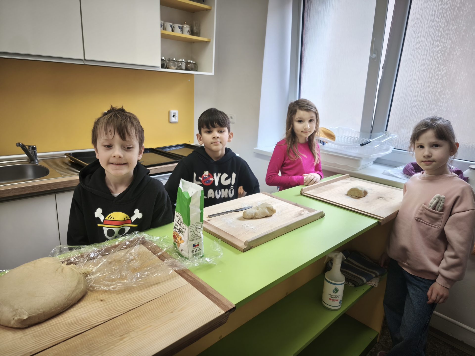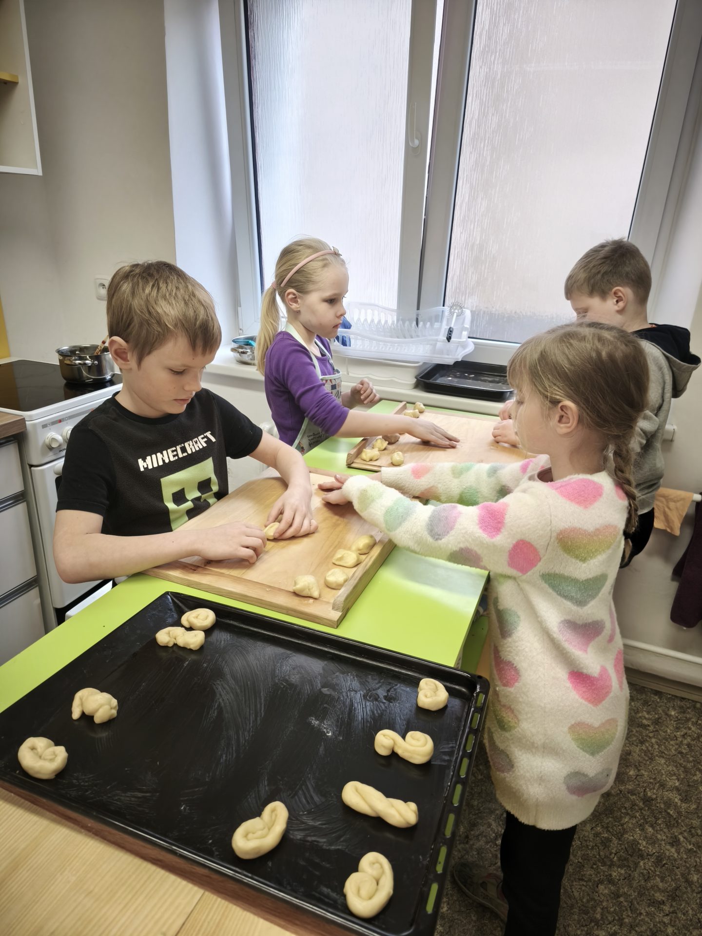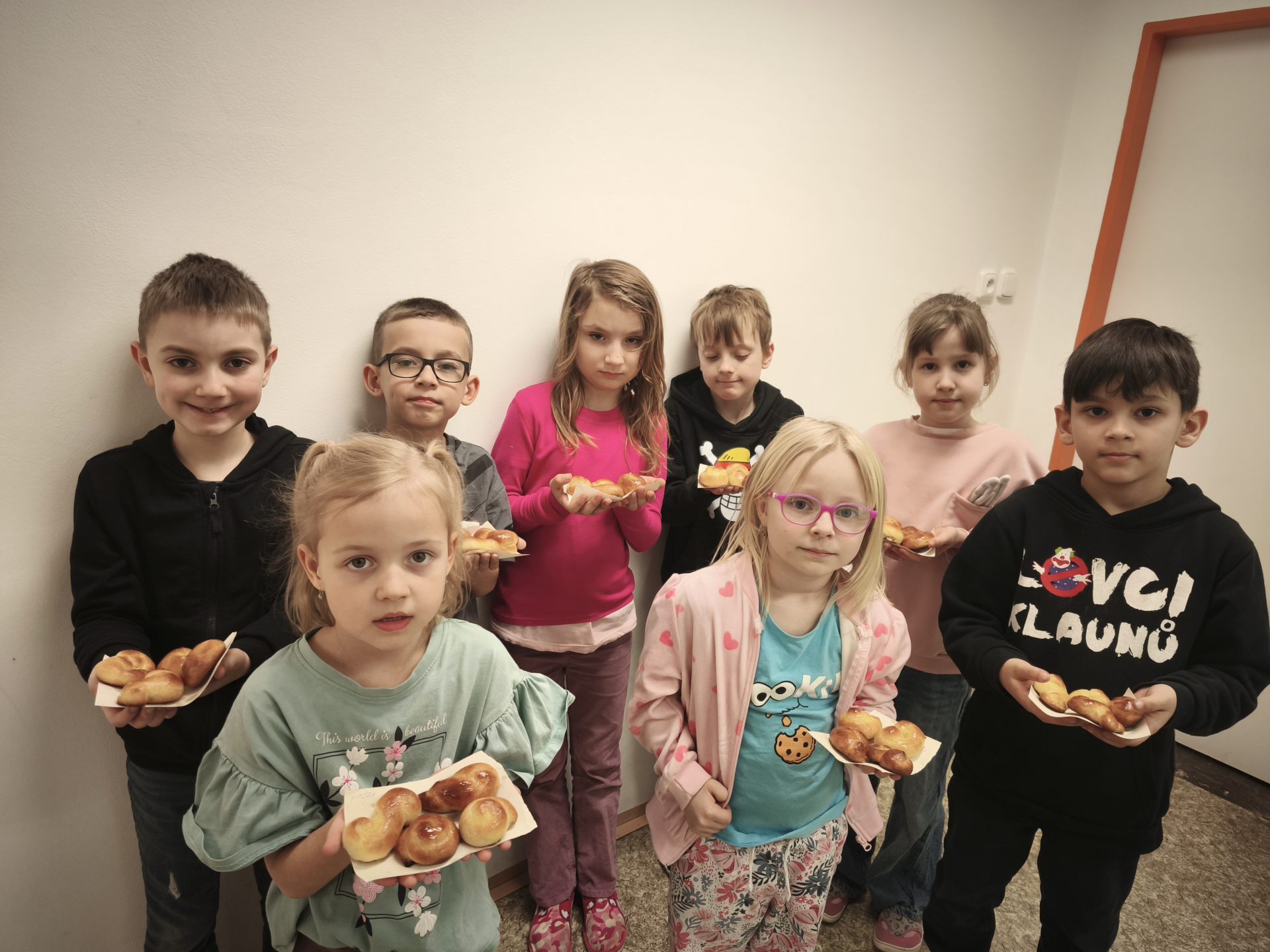 Na Zelený čtvrtek je zvykem podávat takzvané jidáše, což je sladké pečivo symbolizující provaz, na kterém se oběsil zrádce Jidáš. A tak jsme si je ve škole společně upekli. Moc nás to bavilo!!!