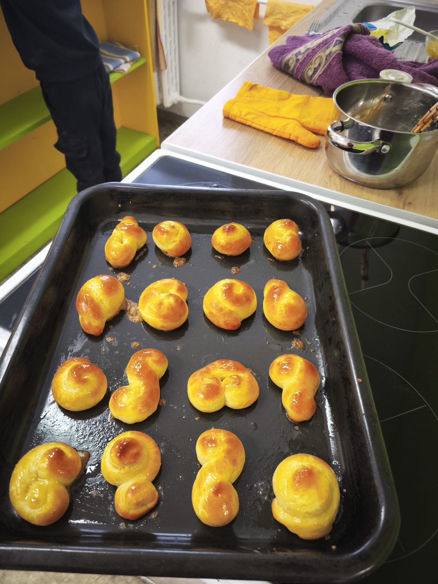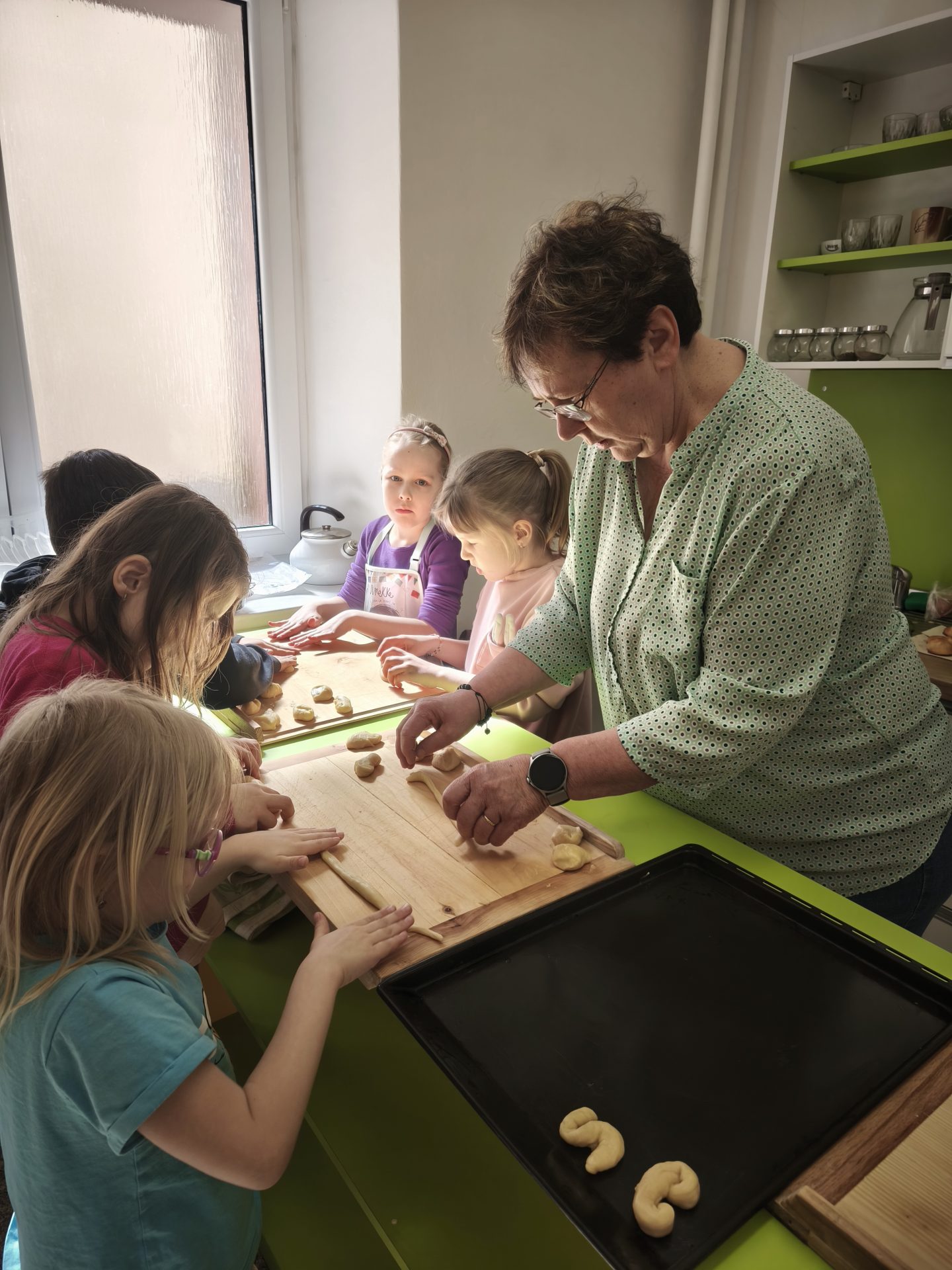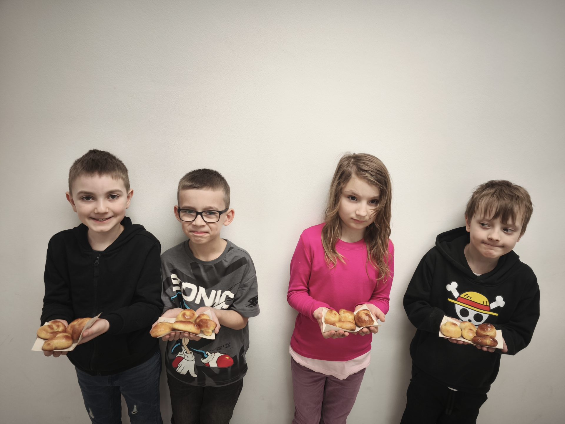 Na Zelený čtvrtek je zvykem podávat takzvané jidáše, což je sladké pečivo symbolizující provaz, na kterém se oběsil zrádce Jidáš. A tak jsme si je ve škole společně upekli. Moc nás to bavilo!!!