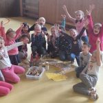 Víla Agáta nám zamkla slabikáře neznámo kam.. Připravila pro nás úkoly, které měly prověřit naše dosavadní čtenářské dovednosti. Když jsme zjistili, kde se slabikář ukrývá, ještě jsme museli překročit duhu mezi Živou abecedou a Slabikářem. Na duhu jsme poskládali věty k obrázkům a pak hurá na půdu ukázat naši statečnost při hledání Agátina rozbitého slabikáře. Z půdy už jsme běželi rovnou do tělocvičny, kde na nás čekala odměna – záložka do slabikáře ve tvaru klíče, perník se střípky Agátina slabikáře a nechybělo ani pořádné pití pro nás čtenáře – dětské „šampáňo“.