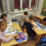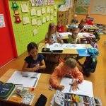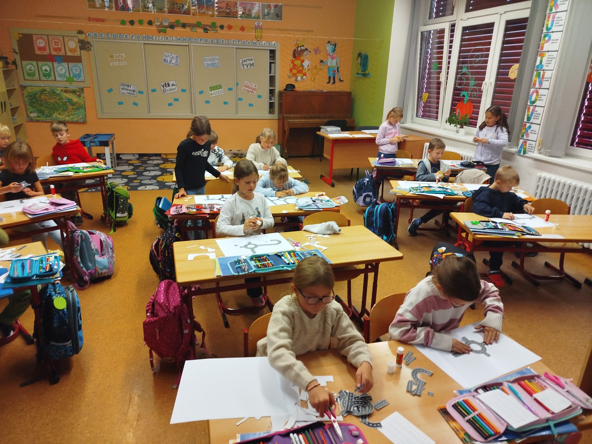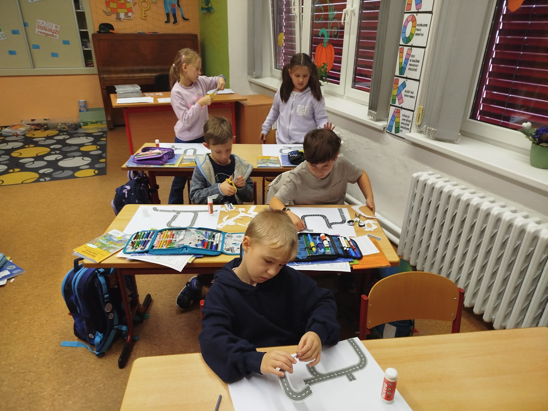 V předmětu Člověk a jeho svět jsme dokončili téma „Cesta do školy“. Děti pracovaly na přibližném plánu cesty z domova k budově školy. S nadšením stříhaly,