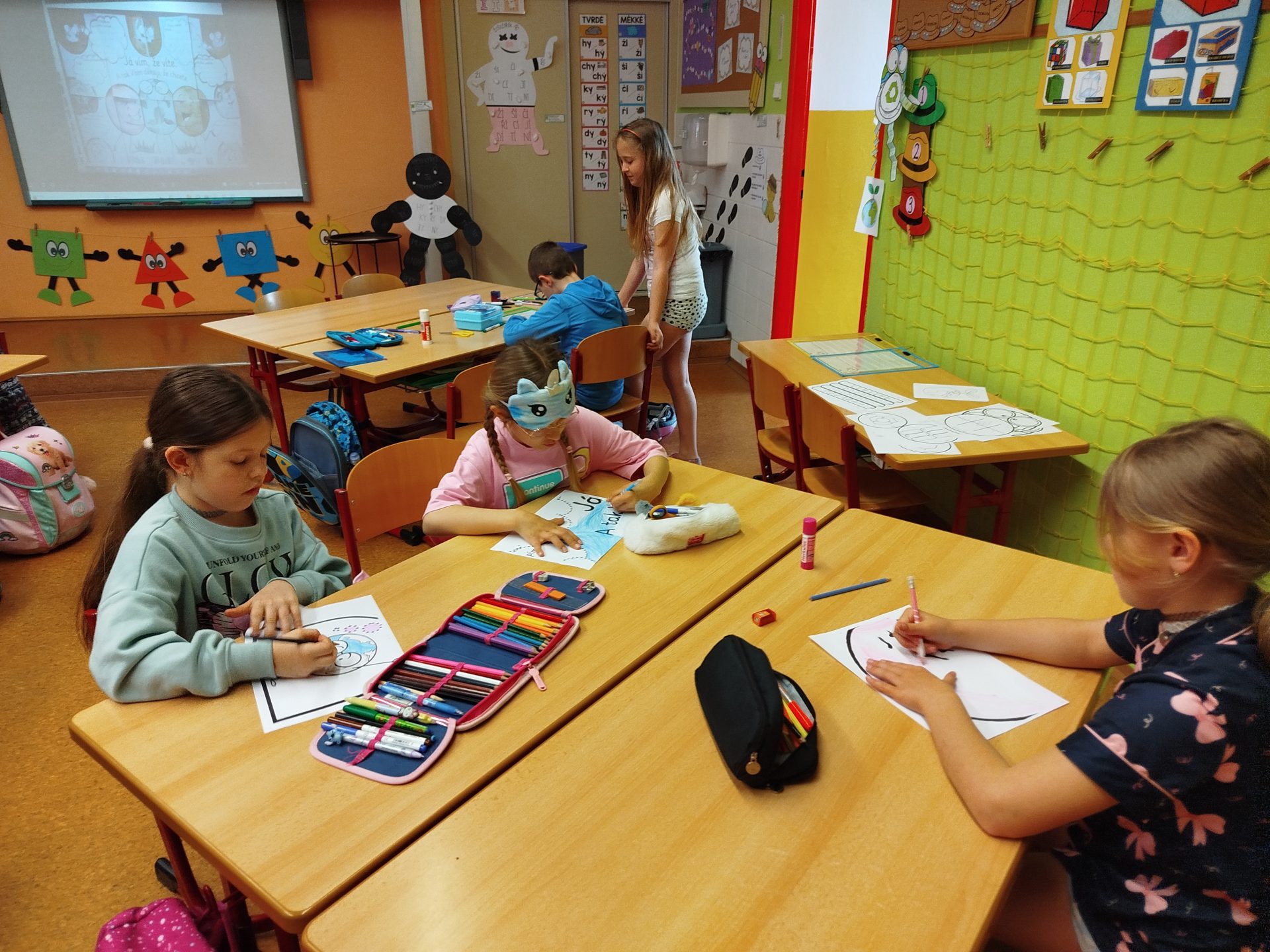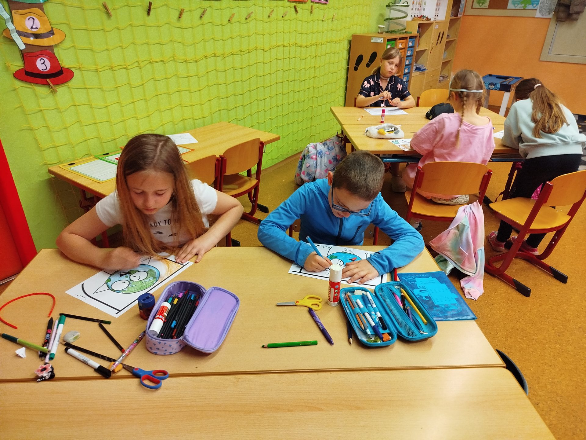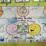 Týden jsme zakončili projektovým dnem – DEN ZEMĚ. Děti si přečetly dopis od planety Země, dozvěděly se nové informace a přemýšlely, co se planetě líbí a co jí ubližuje. Svoje myšlenky napsaly do bublin kooperativního obrazu. Také si vyrobily „Planeťáka“, prošly si stezku a vyluštily křížovku 🙂