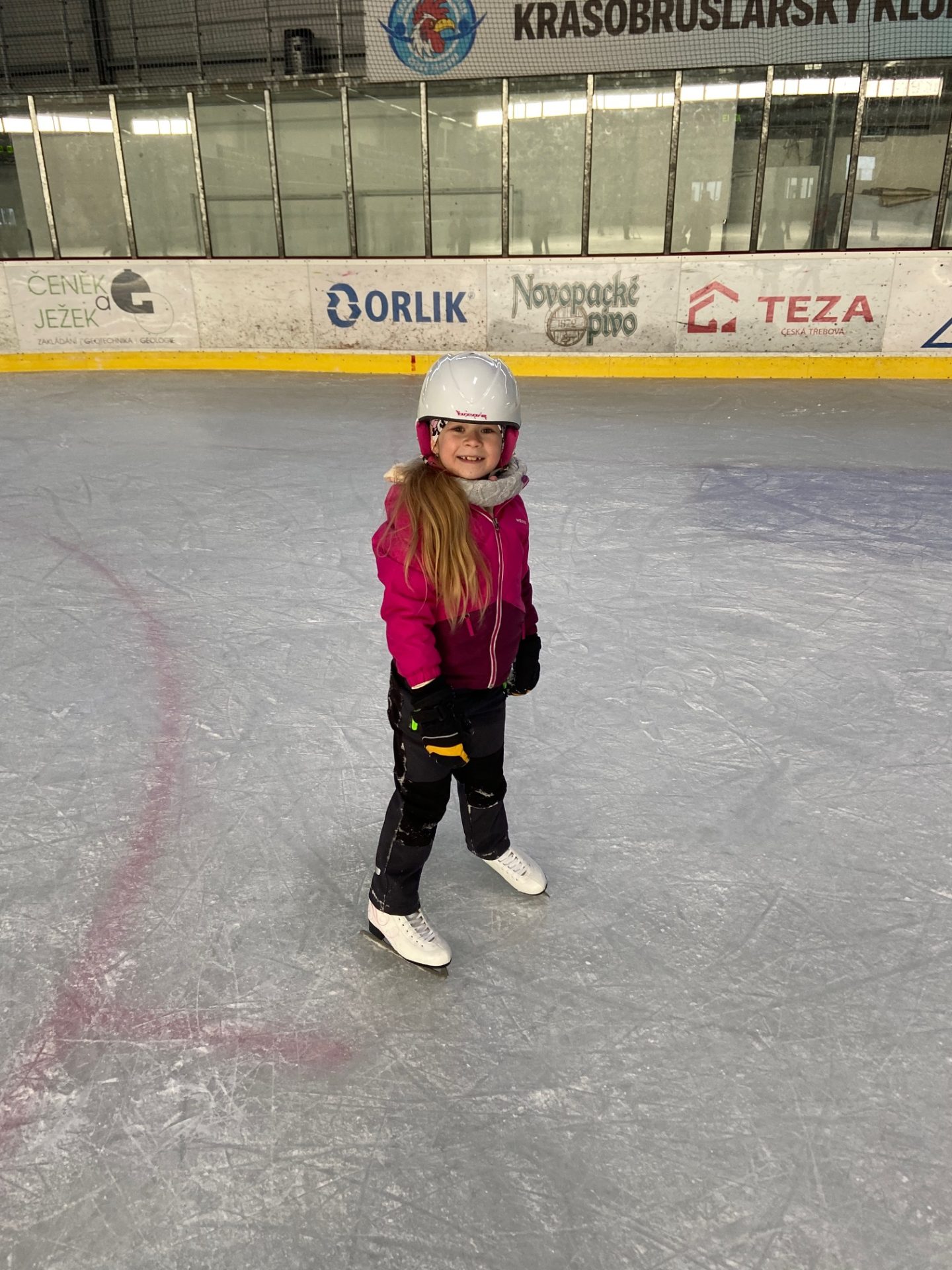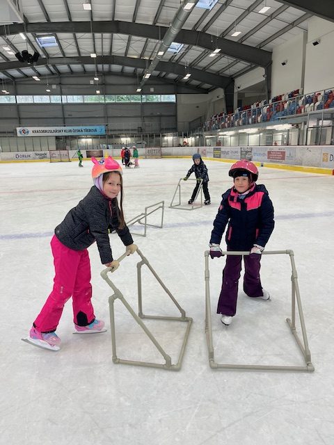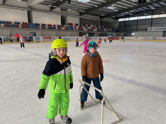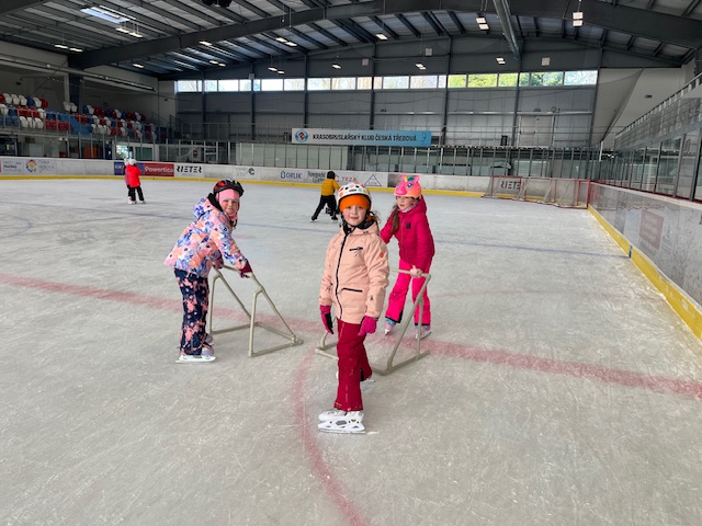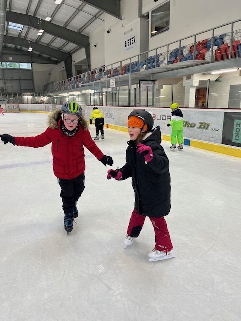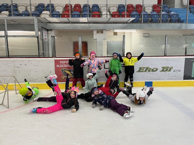 Při tělesné výchově jsme vyrazili na zimní stadion, kde jsme bruslili a moc jsme si to užili.