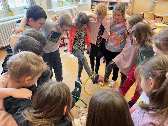 Také jsme se vydali na Cestu za vysvědčením, při které jsme plnili různé úkoly. Nakonec jsme vysvědčení našli a mohli si ho slavnostně předat.