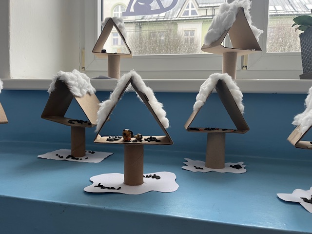 Během měsíce ledna jsme se naučili třídit tvrdé, měkké a obojetné souhlásky a víme, jaké y se píše v tvrdých slabikách. Začali jsme sčítat a odčítat čísla do 100, dokážeme také rozpoznat stopy různých zvířat. Ve výtvarné výchově a pracovních činnostech jsme tvořili zimní výrobky, například krmítka s ptáčky.
