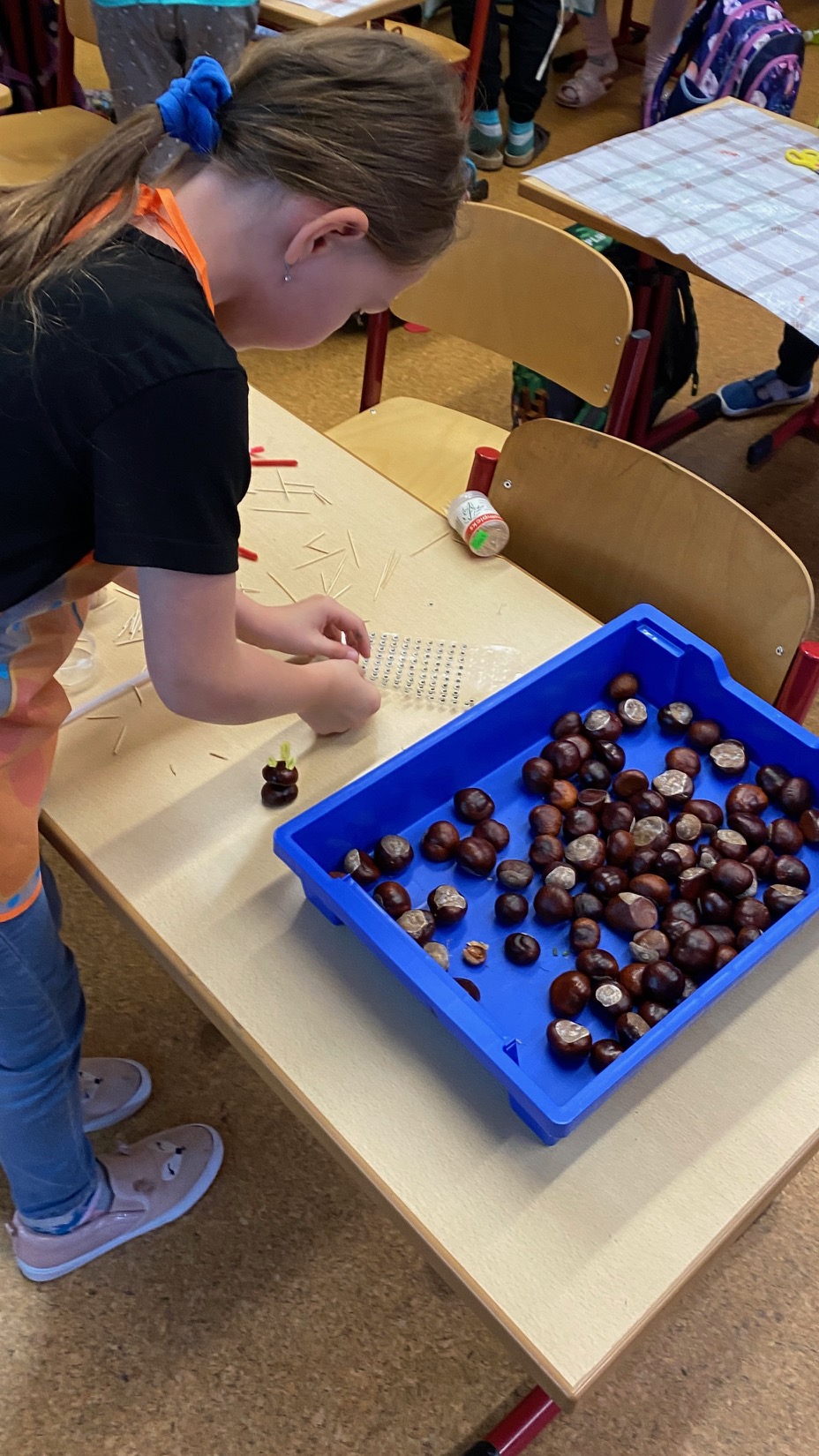 Podzim vystřídal léto a nastal čas podzimních témat. Co vše se vejde do jednoho dopoledne 2.C? V prvouce jsme se naučili o jehličnatých a listnatých stromech, přiřazovali jsme názvy a hádali jejich plody. Plody jírovce jsou kaštany, kterých jsme měli tento den ve škole spoustu. V matematice jsme s nimi počítali, v pracovních činnostech jsme z nich poté tvořili postavičky. Ve skupinkách jsme v rámci českého jazyka sestavili postup výroby draka a téměř podle tohoto návodu jsme si ho ve výtvarné výchově i vyrobili. A jak se nám to vše dařilo můžete vidět na našich fotkách 🙂