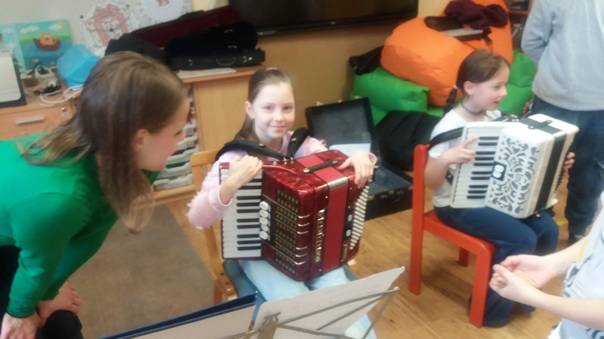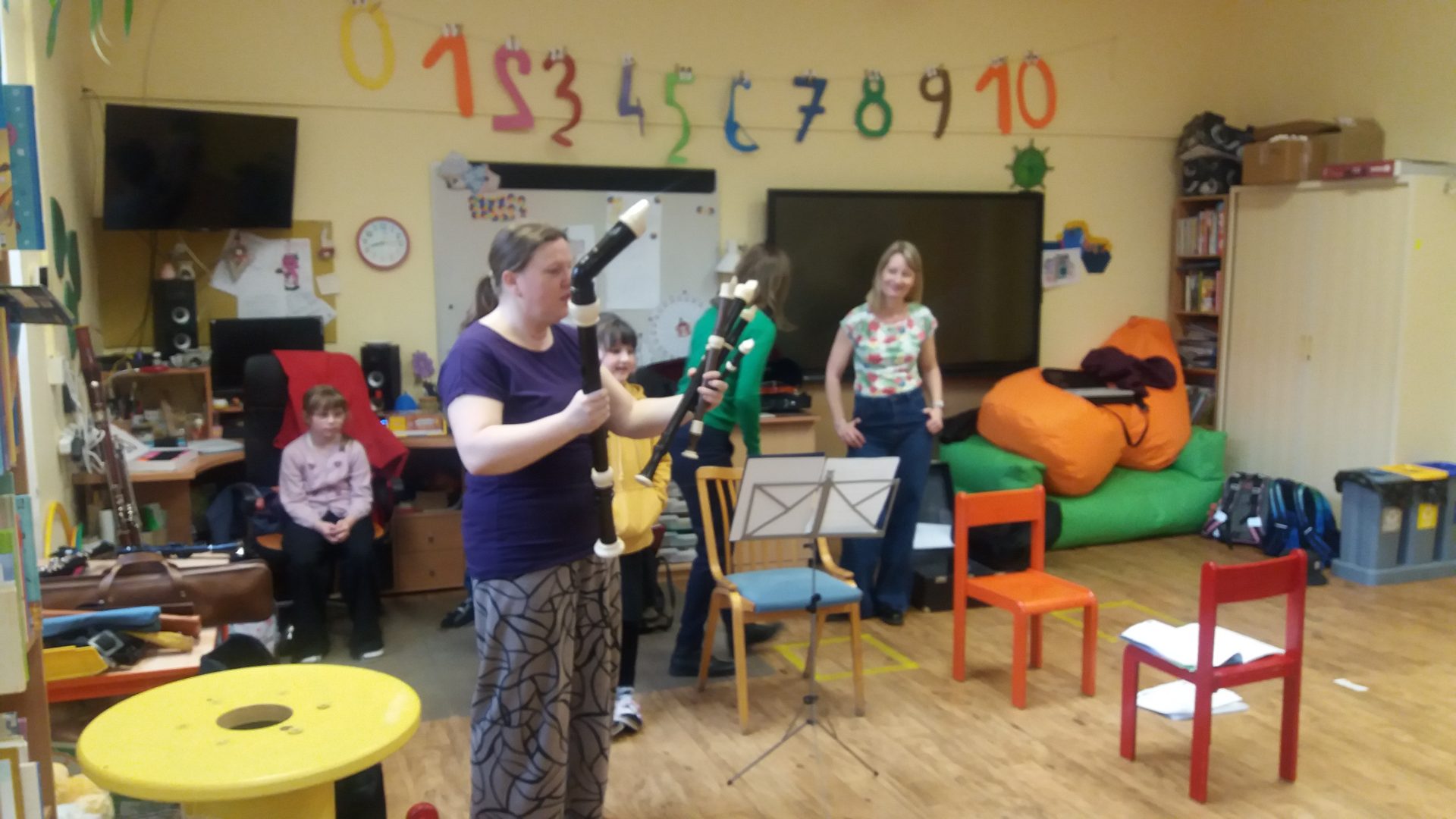 tóny nám zahrál fagot i hoboj. Zajímavé byly různé velikosti fléten. Na závěr jsme si mohli zahrát na akordeon a housle. V galerii se můžete podívat na zajímavé setkání s hudebními nástroji.