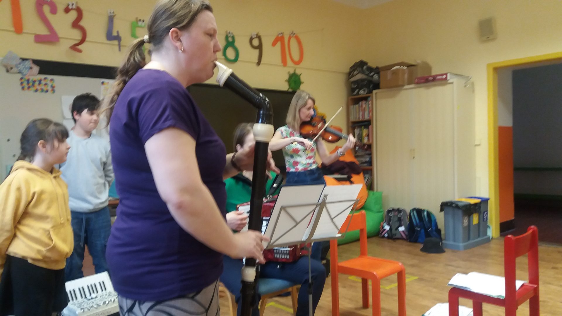 v naší nové hudební třídě jsme měli návštěvu ze ZUŠ. Paní učitelky z umělecké školy přinesly s sebou hudební nástroje, na které nám i zahrály. Krásný zvuk měly housle, hluboké
