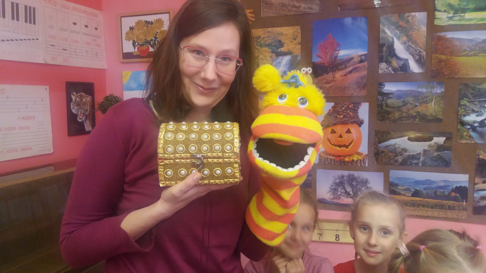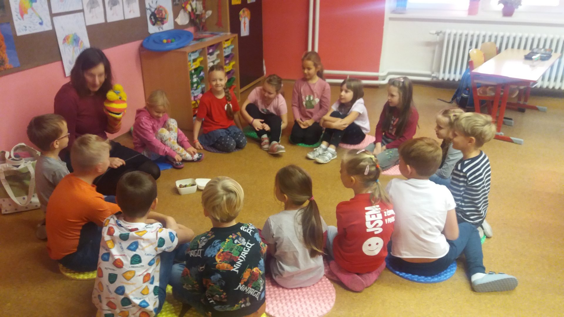 zdravíme  vás v listopadu. V úterý 7.11. k nám přišla do třídy návštěva. Paní učitelka s maňáskem ponožky. Měla ještě další zajímavé věci, jako krásnou truhlu s pokladem. Každý z nás dostal barevný lístek s truhlou a s nápisem – Přátelé má, kdo přátelsky se chová. Hráli jsme všichni hry s kamarády, pomáhali jsme si a byli na sebe hodní. Paní učitelka nás pochválila. V galerii se můžete podívat, jak jsme si dvě hodiny zajímavého povídání a her užili.