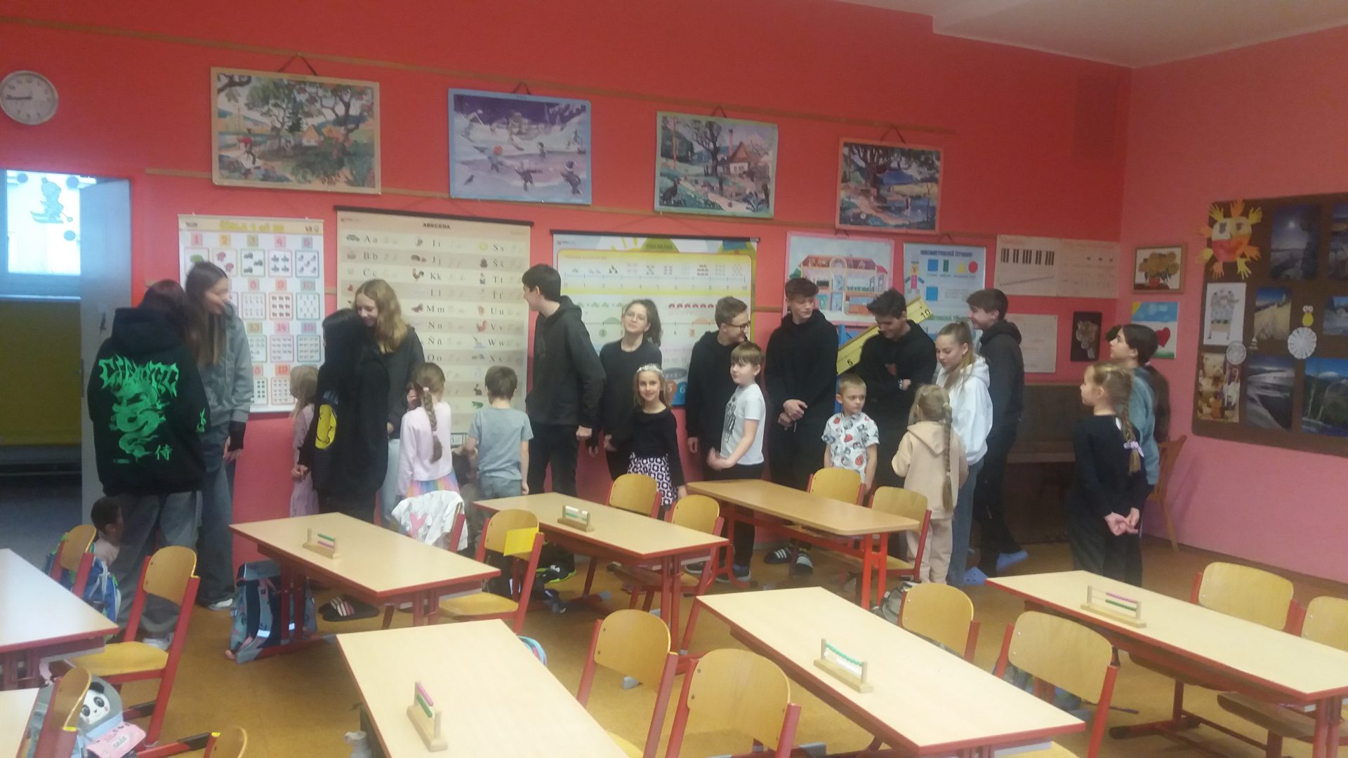 dnešní den byl pro nás velmi slavnostní. Všichni jsme se moc těšili na pololetní vysvědčení. Také jsme se vůbec neučili. Paní učitelka pro nás připravila obtížnou cestu plnou úkolů v hledání tří pokladů. Na cestě  nám pomáhali naši kamarádi z 9.A.  Všechny tři poklady jsme pomocí splněných úkolů našli. Užili jsme si hodně zábavy a těšíme na další společná setkání.