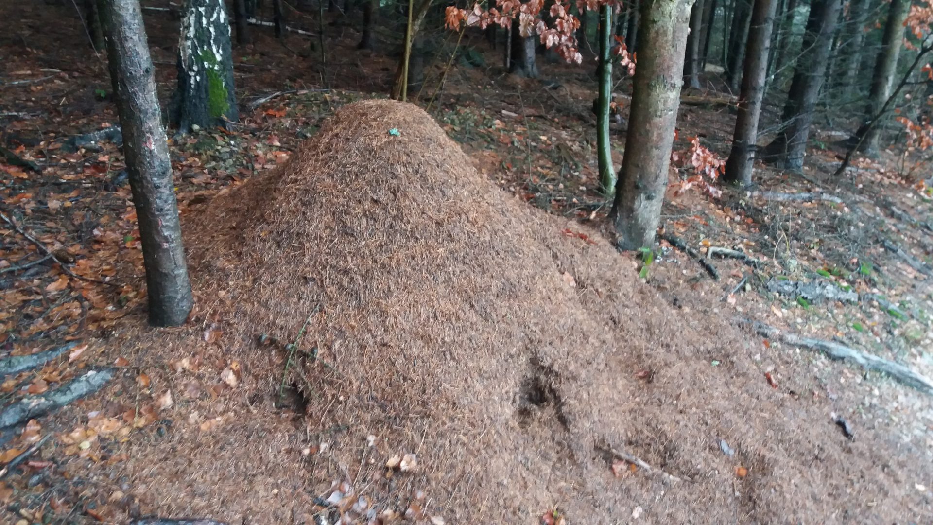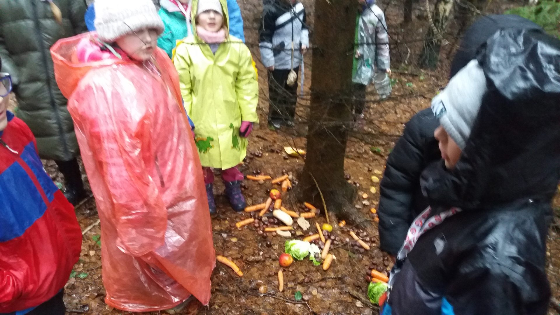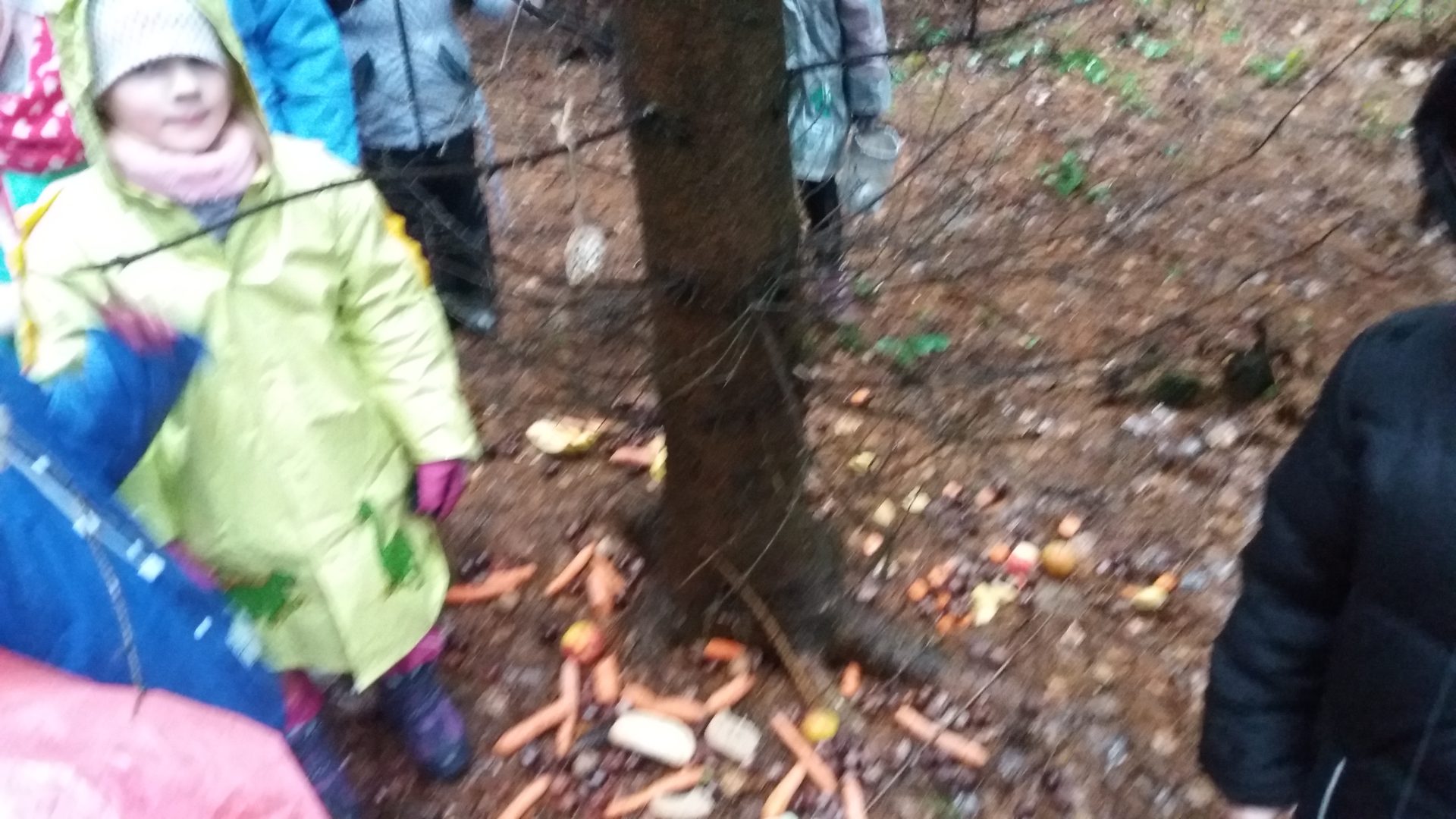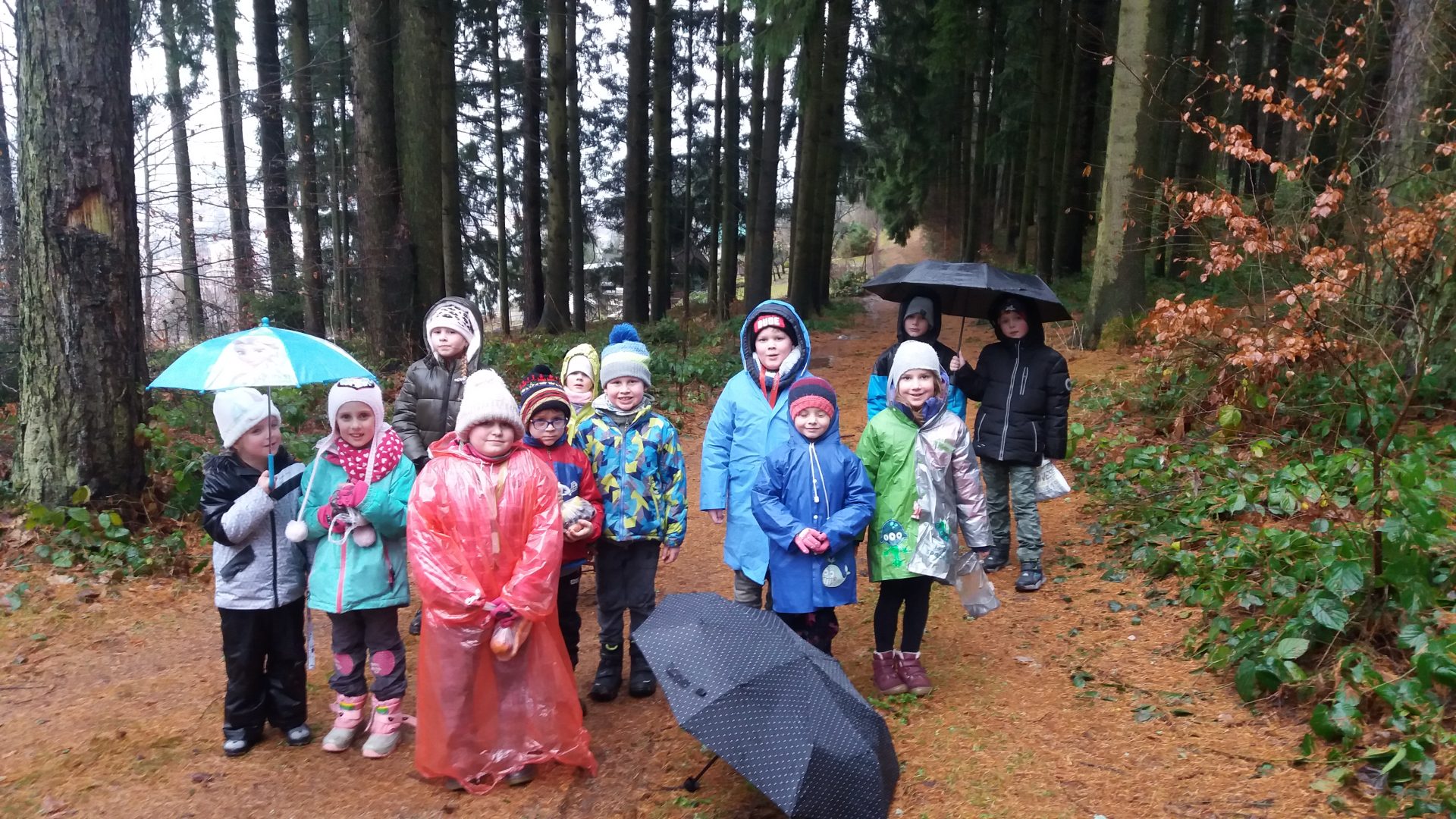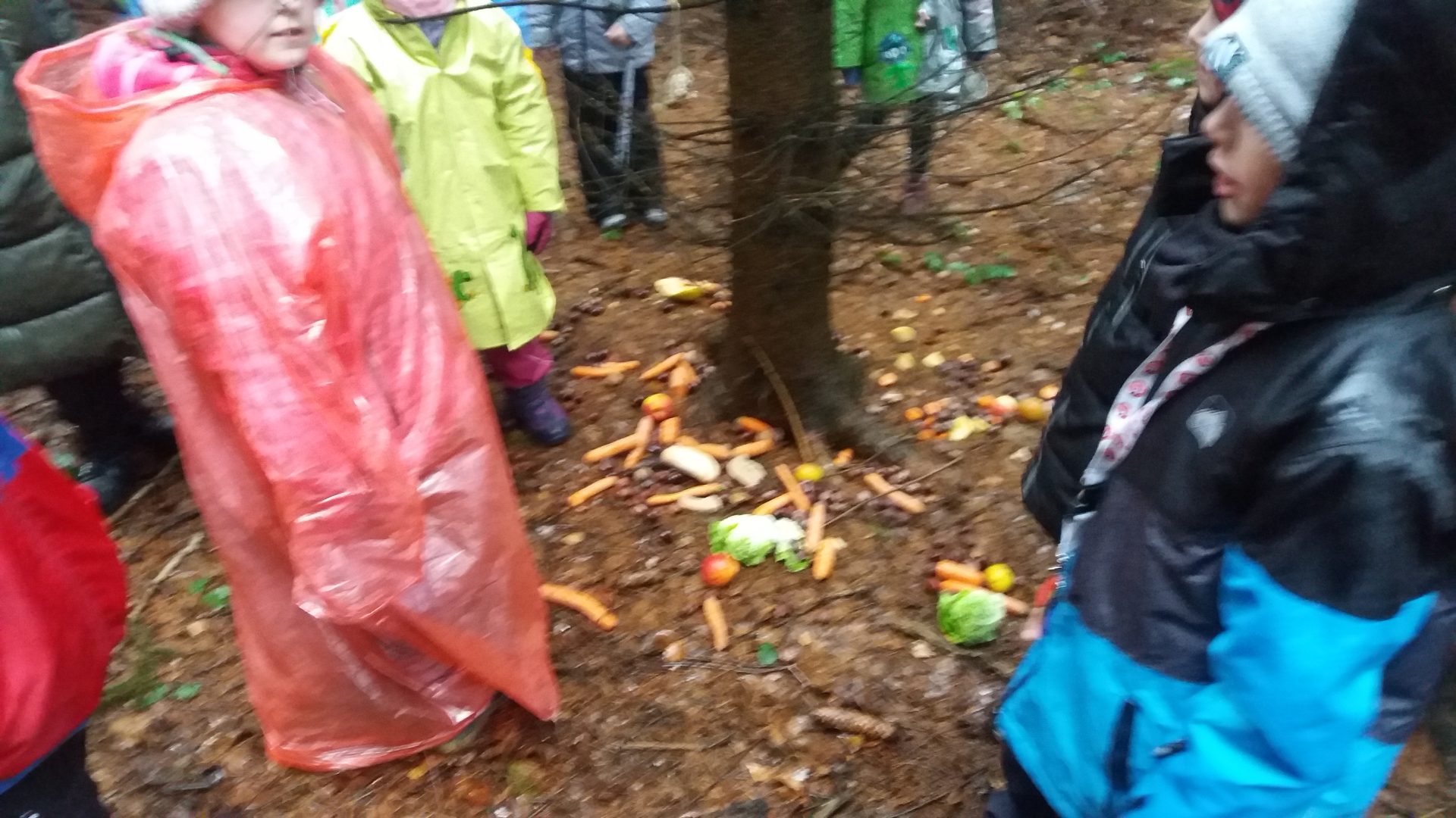 všichni jsme se moc těšili na vycházku do lesa. Počasí nám nepřálo, ale stálo to za to. Škoda, že nemůžeme vidět zvířátka hodovat na naší nadílce. Kolem smrku jsme nasypali kaštany, mrkev, jablíčka a zeleninu. Snad jim bude vše chutnat. O vánočních prázdninách se můžeme s rodinou jít podívat, zda už všechno zvířátka spořádala. Při zpáteční cestě jsme měli krásný výhled na město, škoda že nebylo zasněžené.