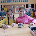 Při pracovních činnostech jsme si vyrobili velikonoční věneček na pověšení.
