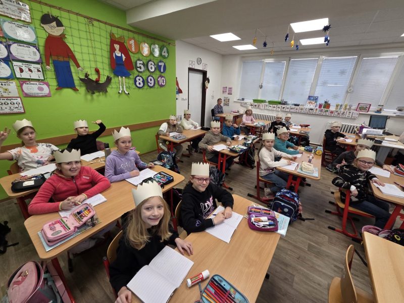 Začátek ledna jsme odstartovali královskou výzvou. Mít na hlavě celý den korunu nebyla žádná legrace, ale hravě jsme to zvládli 🙂 V lednu jsme toho stihli celkem dost – dvě sportovní dopoledne na Pekláku, seznámili jsme se s jednotkami délky a hmotnosti, podívali jsme se na zoubek koloběhu vody, zkusili jsme si ve třídě vyrobit déšť, opakovali jsme vyjmenovaná slova s novou deskovou hrou, připomněli si slovní druhy pomocí hry „Jedním slovem“, hodně toho spočítali a společně přečetli knížku o zloději kolečkových bruslí.