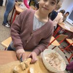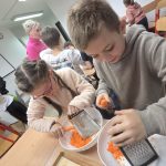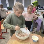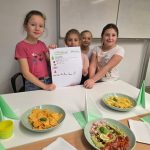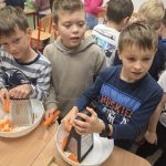 Kouzelné sluchátko vzalo děti ze 3. B do školní kuchyňky, kde díky vzájemné spolupráci vznikaly ty nejlepší „jednohubky“. Děti si organizovaly práci od nákupu surovin, přes postup, průběžný úklid pracoviště až po servírování úplně sami. Dokonce zvládli napsat i pracovní postup. Ochutnat jsme mohli celkem 5 pomazánek – vajíčkovou, avokádovou, sýrovou s česnekem, mrkvovou a tuňákovou.