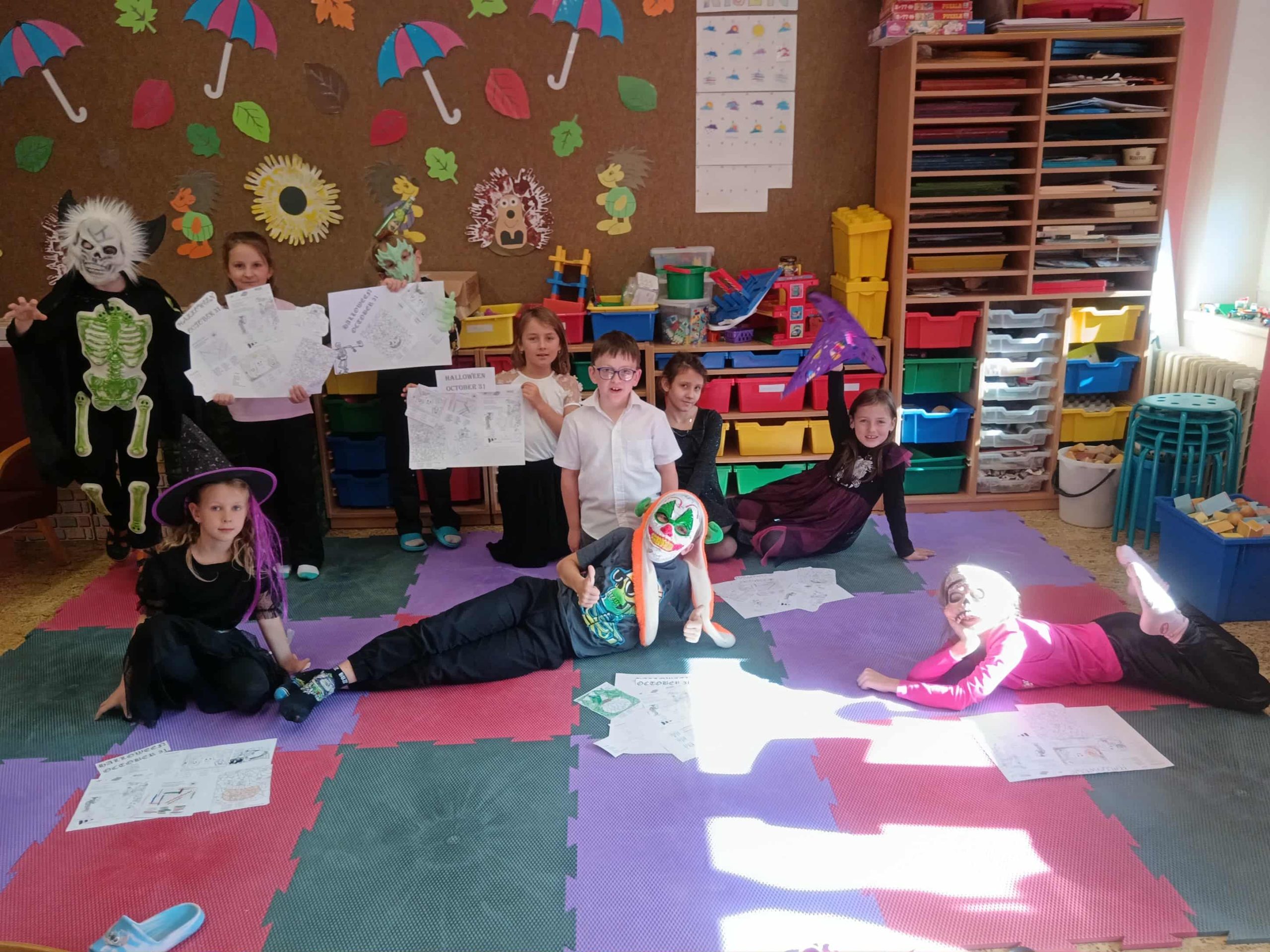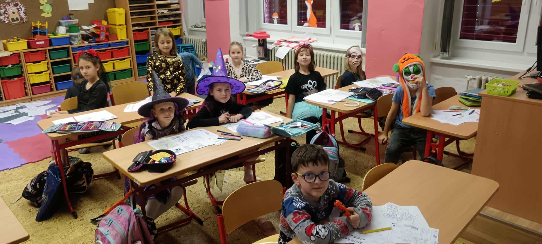 Halloween je keltský svátek s historií sahající až do doby před naším letopočtem. Dávní Keltové si oblékali masky a kostýmy, aby se zamaskovali před zlými duchy, aby je odehnali. Zvyk se do moderní podoby masek a kostýmů přenesl díky přistěhovalcům do USA z Irska. Dnes chodí děti ve strašidelných kostýmech od domu k domu a se slovy „trick or treat“ koledují od sousedů sladkost jako vykoupení. Pokud by nic nedostali, lakomcům by něco provedli. Keltové během noci z 31. října na 1. listopadu slavili příchod nového roku, který se v keltštině nazýval Samhain. Mnohé z původního Halloweenu se dochovalo dodnes. Lidé před svými domy staví malé oltáře, k jejich stavbě jsou používány vyřezávané dýně a místo ohňů se zapalují svíčky. My jsme v hodinách ANGLIČTINY oslavili tento svátek plněním zábavných úkolů na interaktivní tabuli, luštěním křížovek, osmisměrek, rébusů, skládáním puzzle. Zhlédli jsme strašidelný příběh a zatančili si halloweenský taneček.