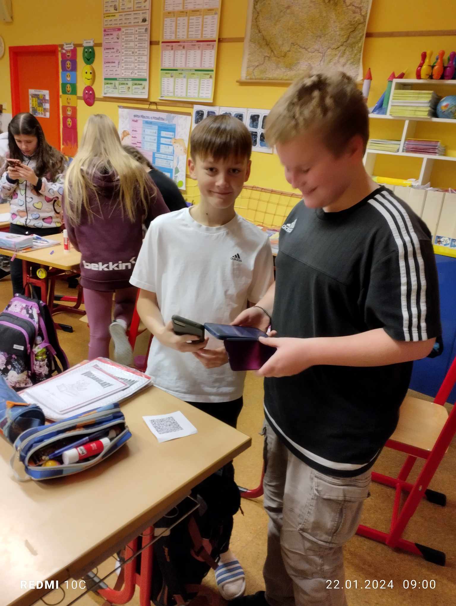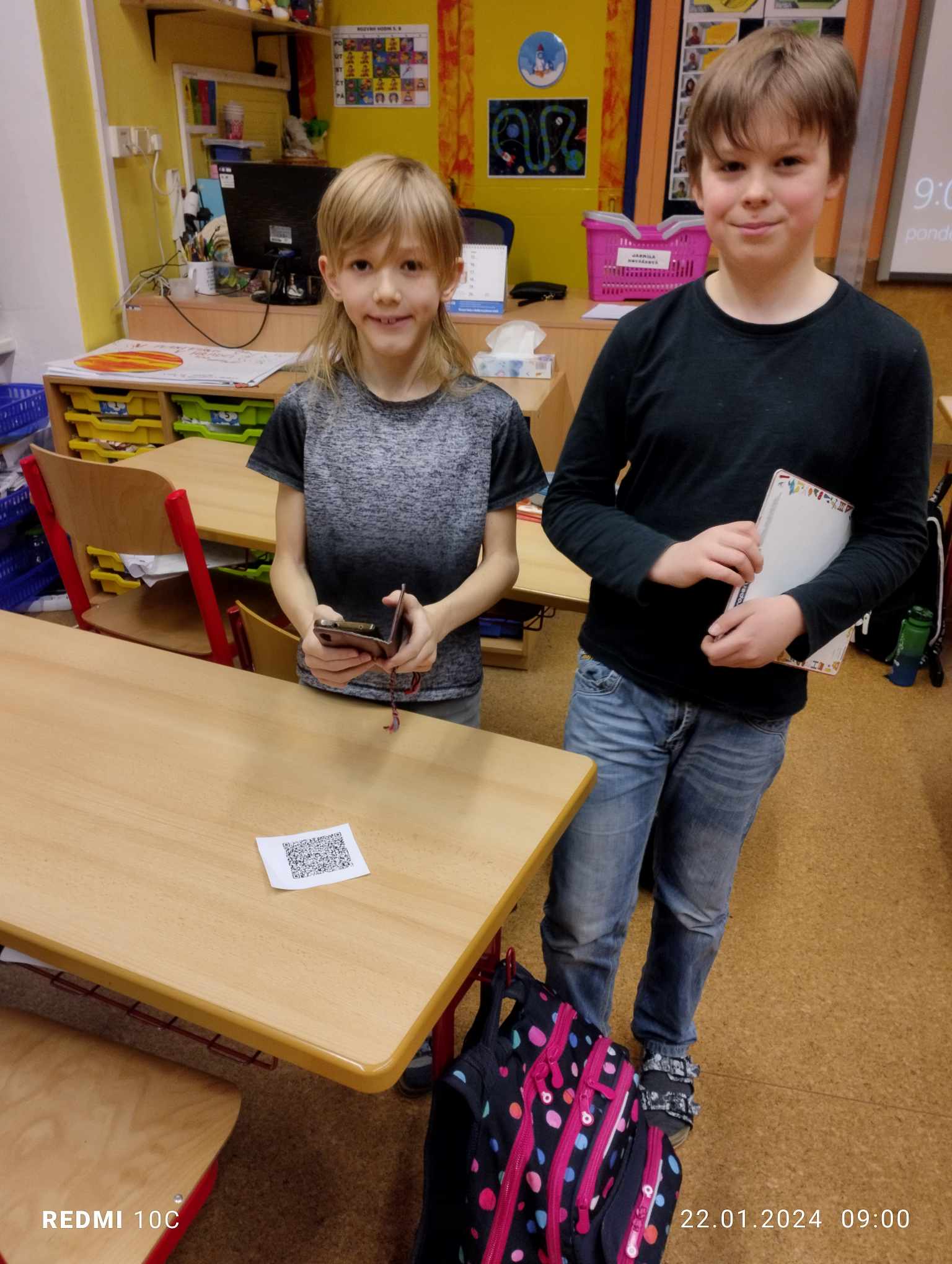 S tím, jak žáci stále více disponují chytrými mobilní telefony se objevuje možnost jejich využití ve výuce. Jednou z nejjednodušších cest je nasazení QR kódů. A jak fungují? Jakým způsobem je možné je použít v běžné výuce? K tomu, aby mohl být kód přečten je potřeba, aby měl uživatel mobilní telefon, který má softwarově ovládanou kameru a nainstalovanou čtečku. Kdo čtečku ve svém mobilu neměl nainstalovanou, připojil se ke školní wifi a čtečku si zdarma stáhl. Hned jsme se mohli pustit do plnění úkolů, který nám QR kód zadal.