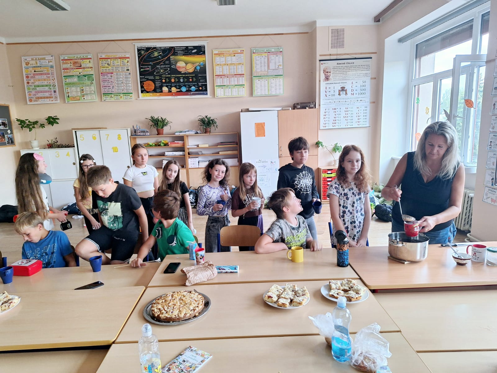 Letošní zahajovací třídní schůzky  pojali v 5.C trochu jinak. Táborák, prezentace informací rodičům spolu s dětmi, zpívání písniček, vyhodnocení soutěže o nejlepší prázdninový deník. Pro děti pak následoval večerní program s přespáváním ve škole. Nakonec snídaně jako sladká tečka 🙂