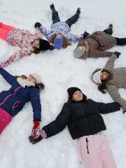 Také jsme postavili stavby nejrůznějšího druhu, dokonce jsme zhotovili i sněžné lože. Nezapomněli jsme se ve sněhu i vyválet a pro objektiv vytvořit i hvězdicovou mandalu. Jen ať nám sníh vydrží co nejdéle !