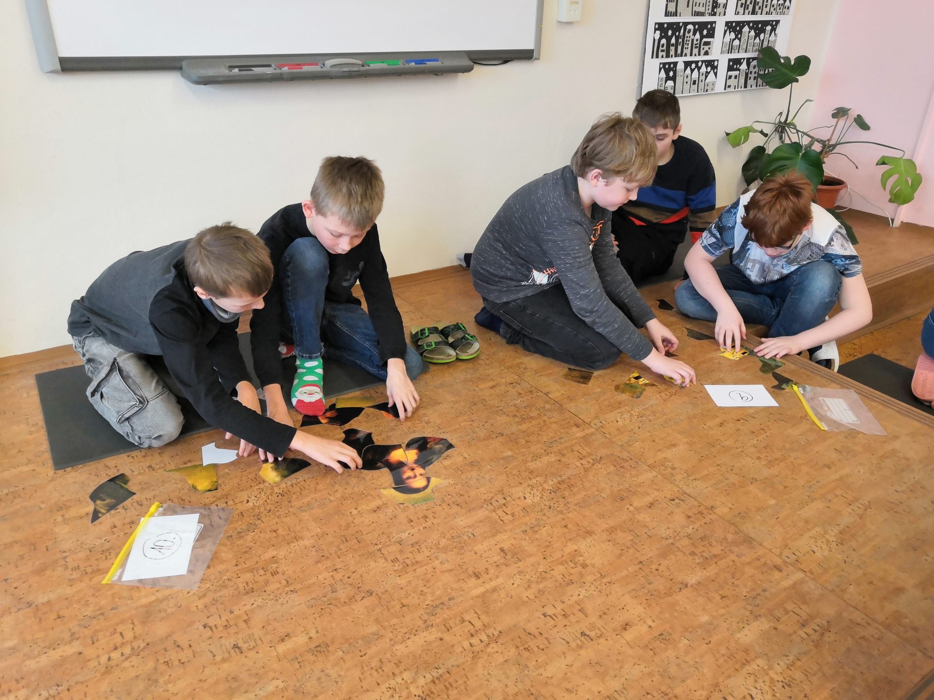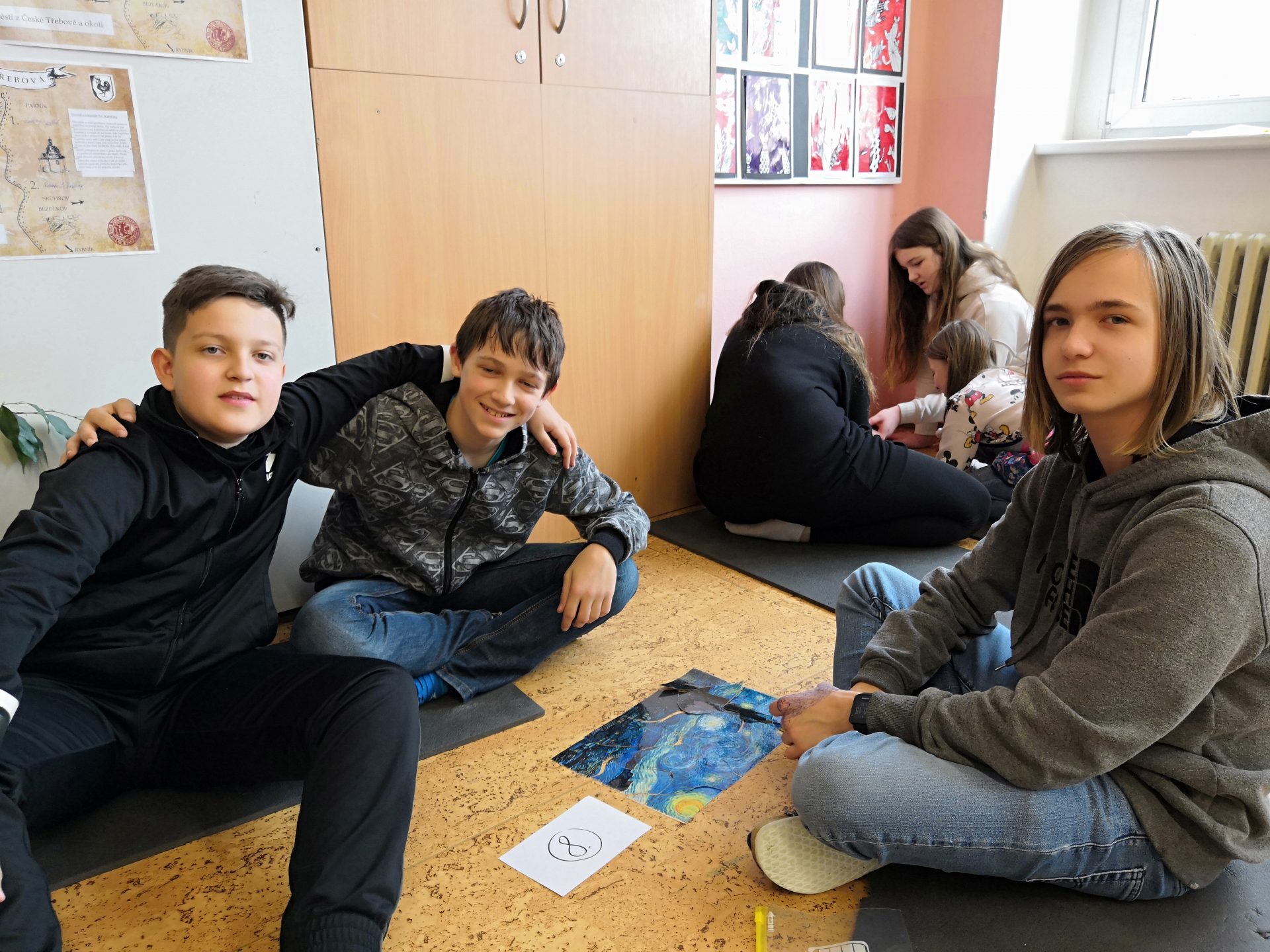 Na jedné z hodin jsme hráli zábavnou hru – dostali jsme puzzle a v týmech jsme měli poskládat umělecká díla.  Za domácí úkol jsme pak měli zjistit jejich názvy a autory.