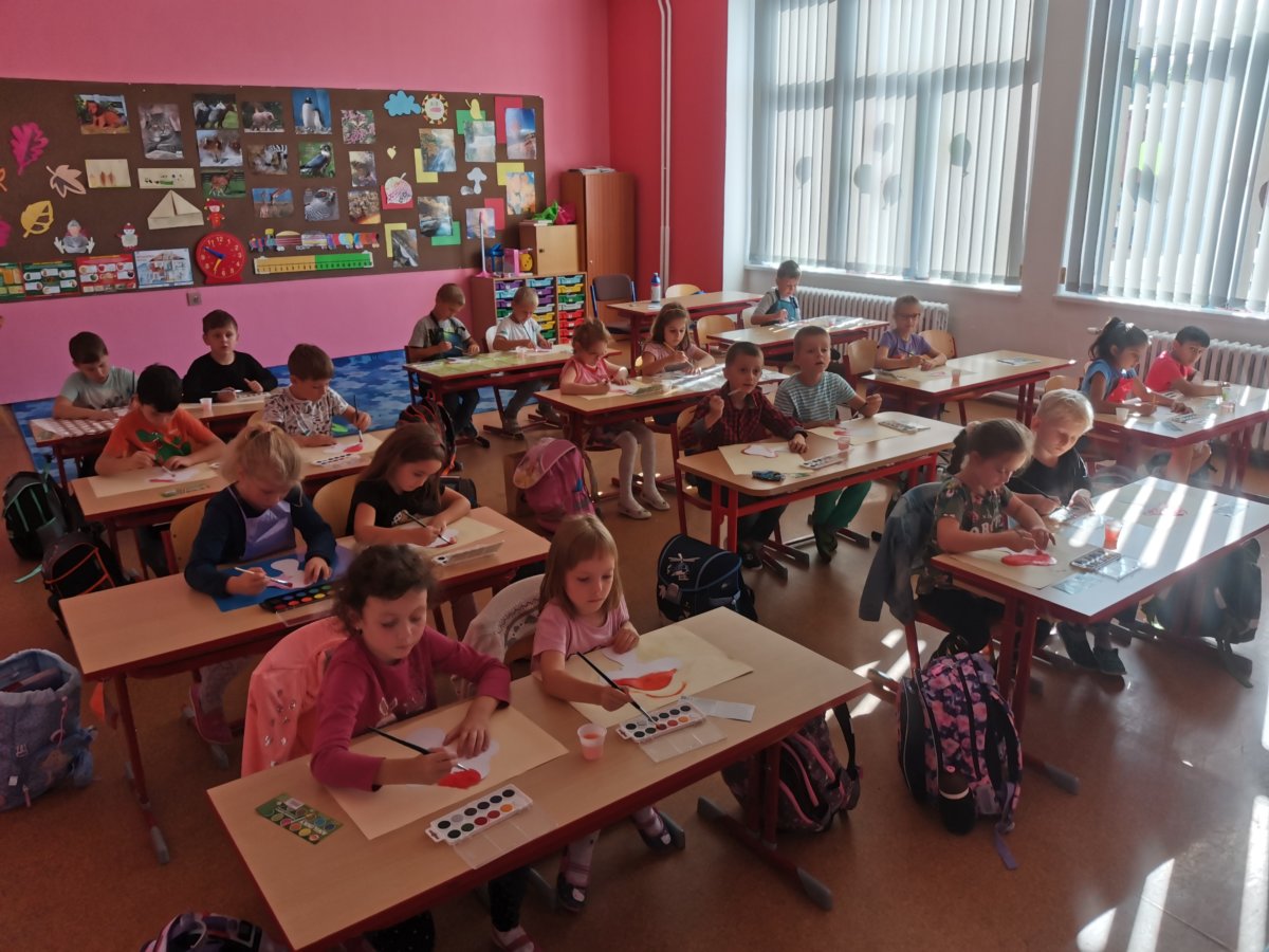 Končí náš první měsíc ve škole a my se už můžeme pochlubit hvězdičkami a jedničkami v Žákovské knížce. Umíme 3 písmena a bezpečně poznáme čísla 1,2,3, které také porovnáváme pomocí obrázků zeleniny nebo ovoce. Škola nás zatím baví. Paní učitelka nás pochválila za slušné chování v divadle, kde se nám moc líbila pohádka Karlík a továrna na čokoládu. Moc si přejeme chodit dál školy, a proto si také stále myjeme poctivě ruce, jíme vitamíny a zdravé jídlo. V galerii se můžete podívat na naše povedené muchomůrky a lodičky. Přejeme všem našim čtenářům