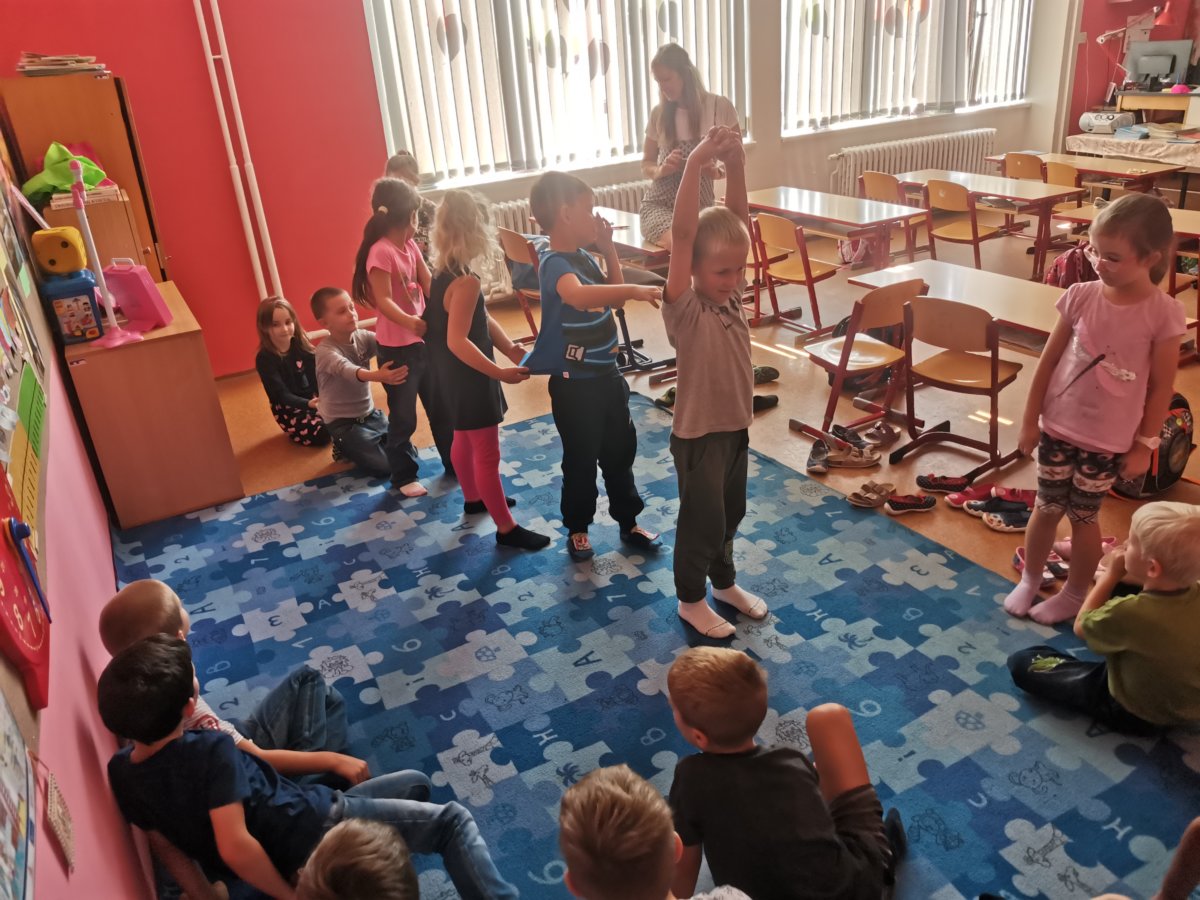 Ve třetím týdnu školy nás čekalo hodně učení, ale také sport a zábava. Naučili jsme se nové písmenko M a básničku. Spojili jsme M s A, Á a dokážeme složit slabiky MÁ+MA a máme tu nejkrásnější slovo máma. V galerii se můžete podívat, jak hrajeme divadlo, pohádku O veliké řepě. Tento týden jsme si také otestovali i naše fyzické zdatnosti. Paní učitelka je na nás pyšná, protože rychle běháme i skáčeme. Nejraději ale tančíme s panem učitelem různé tanečky.