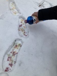 Po krátkém úvodu o land-artu a o tom, jak umění může vznikat i mizet v krajině, si žáci namíchali vlastní barvy. Rozdělili se do týmů a pustili se do tvorby velkoformátového díla na téma „Stopa“. Každá skupina pojala zadání po svém — od stop lidí až po abstraktní obrazce a symbolické otisky emocí.